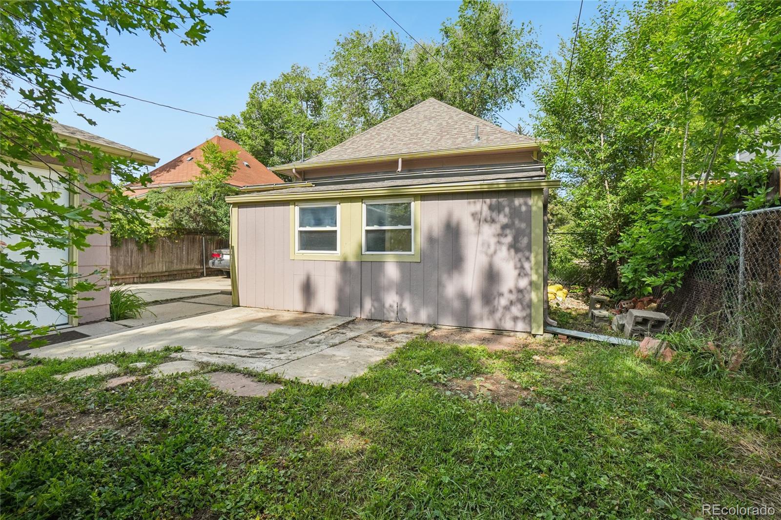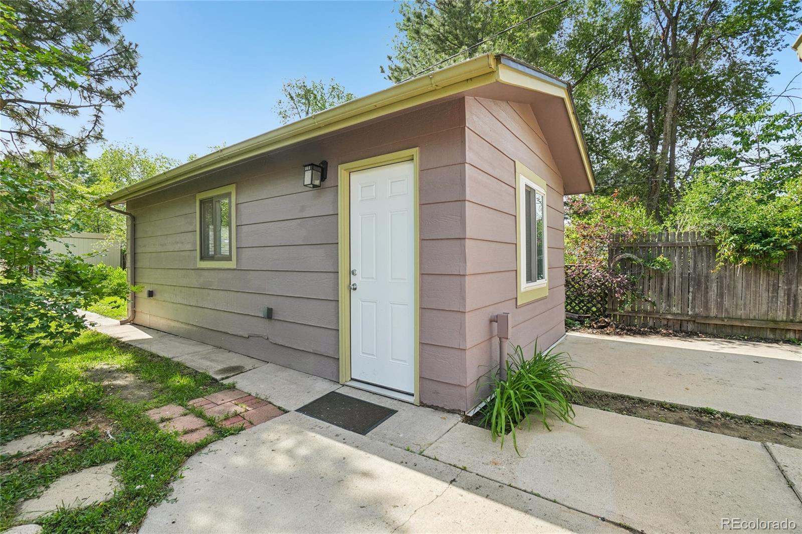 Welcome to this charming two-bedroom, one-bath cottage located in the heart of Longmont’s beloved Historic East Side. Built in 1910, this character-filled home is set on a tree-lined street surrounded by homes rich in personality and charm. An inviting front yard and picturesque neighborhood create the perfect setting for morning walks, all just a short stroll from downtown Longmont’s restaurants, coffee shops, and local favorites. Inside, a sun-drenched living room welcomes you and flows effortlessly into the dining area, making the space ideal for both everyday living and entertaining. The updated bathroom (2024) adds a modern touch, while the laundry room includes convenient storage shelving added in 2023. A dedicated office at the back of the home offers a comfortable work-from-home space, creative studio, or flex room. Step outside to enjoy the expansive yard, featuring mature trees including a maple tree in the backyard and a peach tree in the front—ready to bloom with seasonal charm. Two sheds provide excellent storage, and the detached garage was thoughtfully converted in 2021 into a versatile living space complete with a kitchenette and an additional room, perfect for guests, a home office, or hobby space. Zoned for an ADU and already featuring the converted garage, this oversized lot with alley access offers outstanding potential for future expansion or investment. This is a rare opportunity to own a piece of Longmont history with modern updates, generous outdoor space, and an unbeatable location near downtown, the library, Collyer Park, and more. Come experience the warmth, walkability, and timeless appeal of the Historic East Side.
