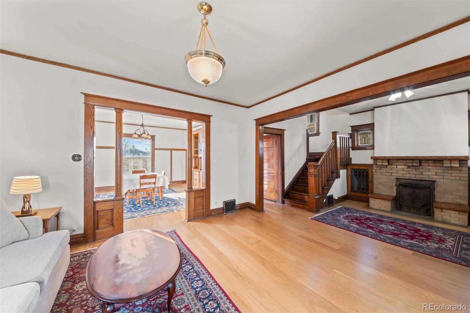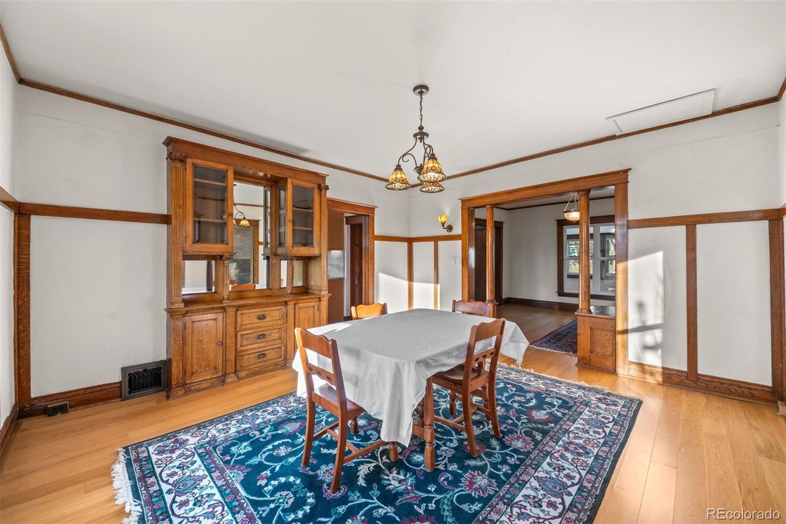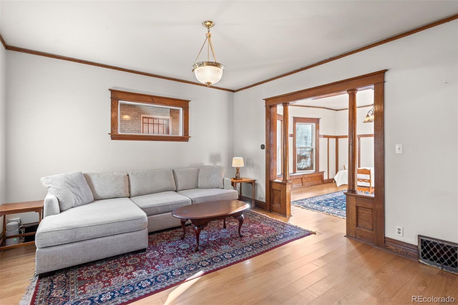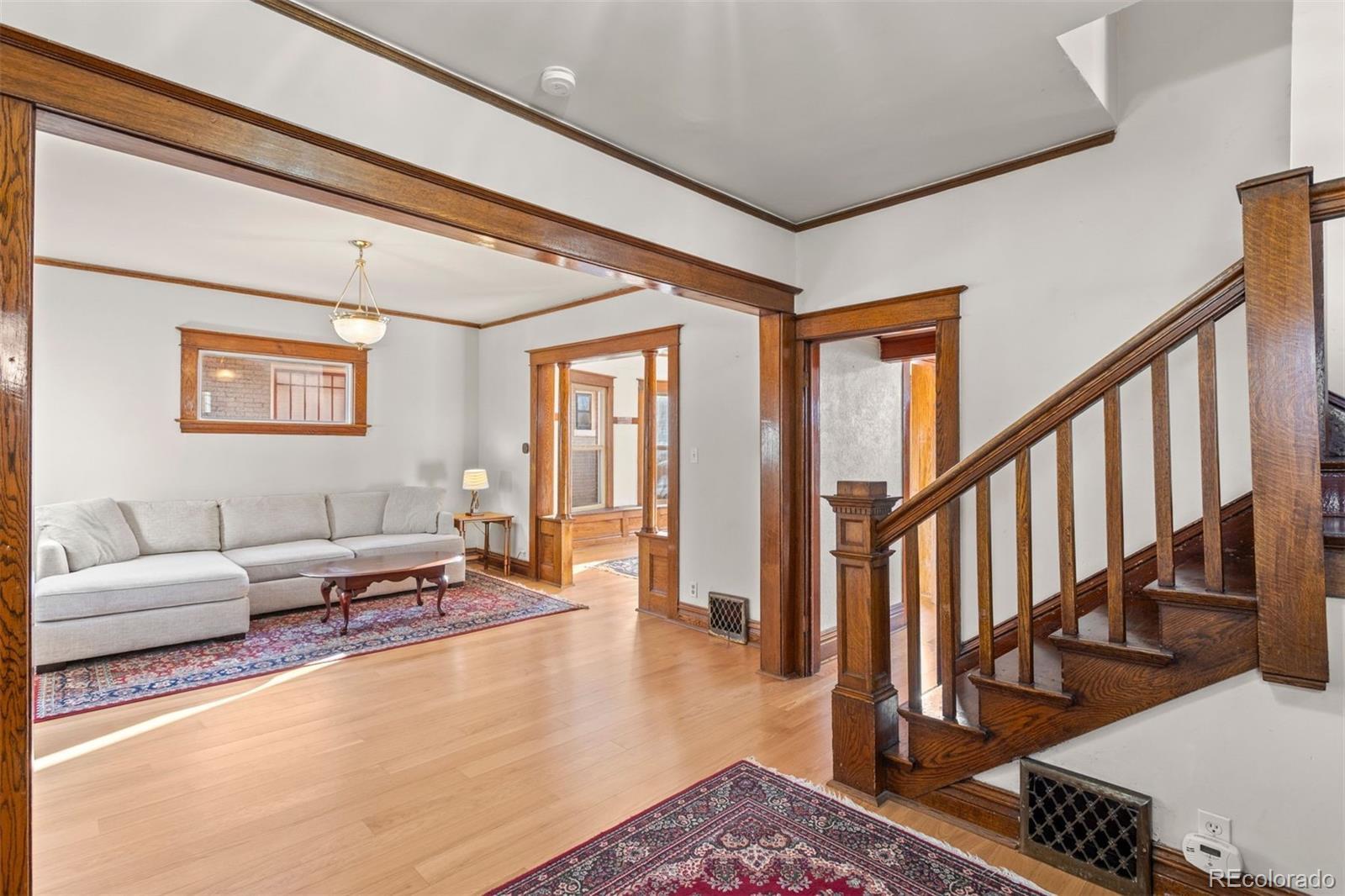 Welcome to 3421 N Gaylord Street - where timeless 1910 Victorian charm meets thoughtful modern updates in one of Denver’s most character-rich neighborhoods. With 3 bedrooms, 2.5 bathrooms, and 2,141 finished square feet, this beautifully remodeled home blends historic detail with contemporary comfort. The main level showcases rich woodwork, elegant tapered columns, and a truly one-of-a-kind fireplace with ornate brick surround and built-in cabinetry, anchoring the foyer. New engineered hardwood floors and marble tile run throughout. The fully remodeled kitchen features custom cabinetry, leathered marble countertops and backsplash, and all-new appliances. A newly added half bath with marble floors, custom vanity, and new windows completes the main level. The dining room shines with a distinctive built-in china cabinet and a charming bay window with bench seating and hidden storage. The enclosed front porch has been fully finished with new windows, LVP flooring, HVAC, lighting, and a ceiling fan - perfect for a home office or sunny sitting room. Upstairs, the remodeled full bath includes a custom vanity and stacked washer and dryer serving the two bedrooms. Enjoy the serene upper-level deck with expansive western views. The lock-off basement unit offers exceptional flexibility and income potential, complete with bedroom (conforming egress), bathroom, family room (or 4th non-conforming bedroom), dining area, kitchenette, and separate laundry. Approved by the City of Denver for short-term rentals. Additional upgrades include central A/C, new gutters, new fence, new garage door, Trex deck, xeriscape landscaping, irrigation system, and new concrete patios and walkways. Detached one-car garage with generous storage completes this rare offering.