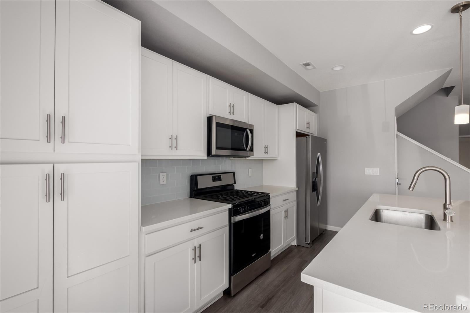 Better than new, this beautiful home is just 15 minutes to Downtown Denver! This home features beautiful modern finishes and upgraded lighting throughout with a private yard! Enjoy living in Mile High Greyhound Park, where you can walk to shops, restaurants, coffee spots, grocery stores, even a quick walk to the RTD light rail station. This home has 3 spacious bedrooms upstairs and a 4th on the main level that could be an additional bedroom or office, 2.5 baths, and upgraded finishes throughout. The kitchen has stainless appliances, gorgeous white cabinets and a huge island, perfect for entertaining. The oversized primary suite offers a peaceful retreat with a walk-in closet and spa-style bath featuring two vanities! Additionally, enjoy having a real laundry room with additional storage upstairs near the bedrooms. This home also features an oversized 2-car garage with an access door and low HOA fee. South facing front porch for snow melt and tremendous amounts of light is an additional bonus. This home also qualifies for the CRA (Community Reinvestment Act) with a buyer credit of 1.75% up to $7,000 towards closing at no cost! Contact Taylor for details!