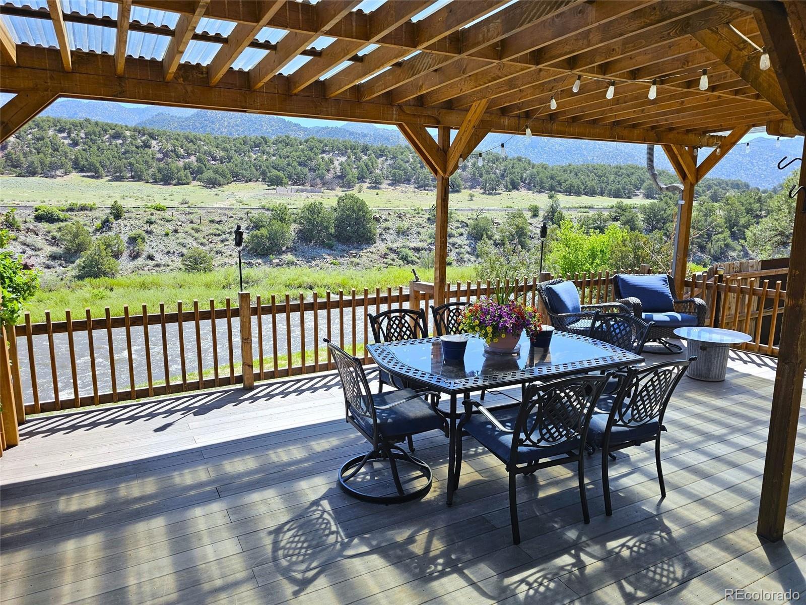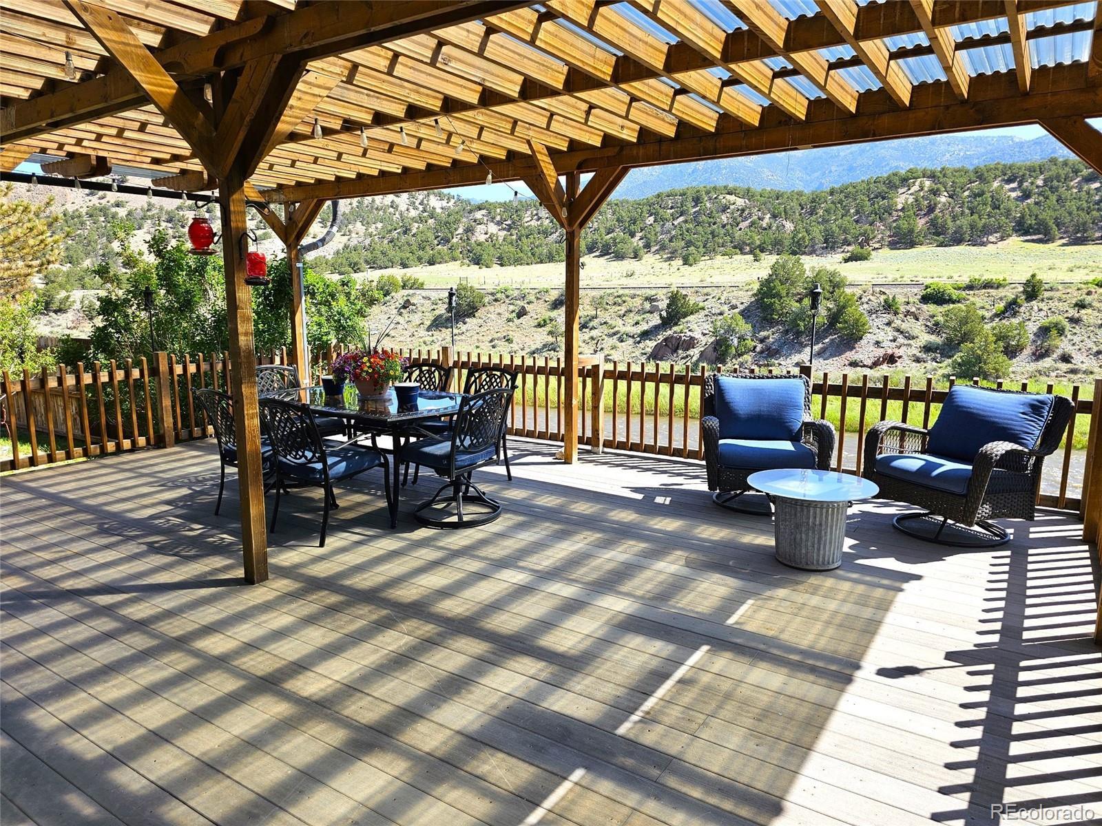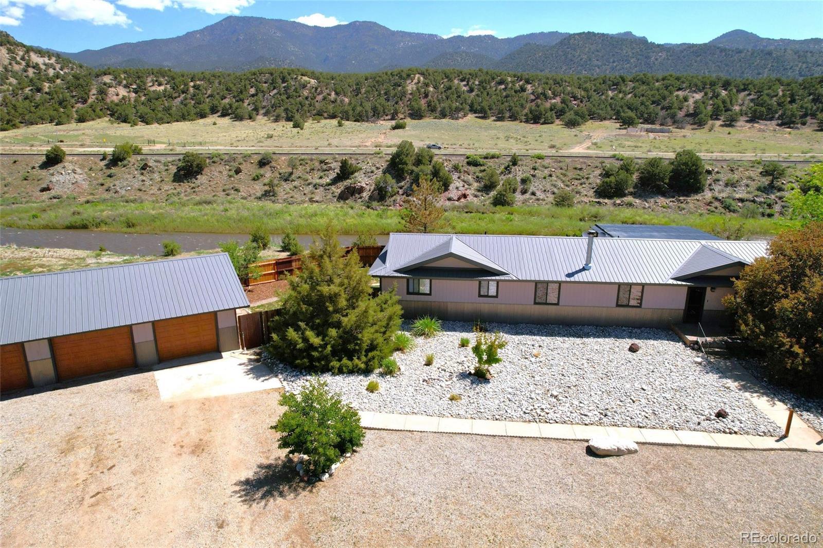 A relaxing live water retreat just 15 miles from Salida, Colorado featuring 400 feet of private Arkansas River frontage. Immaculately maintained home on 9 acres featuring 1924 square feet of living space on one level including 3 bedrooms, 2 bathrooms, and an office. Spacious north facing deck with a pergola overlooks the river and provides summer shade. Large back yard with lush vegetation, a small coy pond, and privacy fencing. An oversized three car garage is steps away from the house. Easy river-level access for fishing, boat put in/take out, or lounging by the firepit and enjoying the privacy or your private river retreat. The level terrain affords plenty of room for horses, an arena, or additional outbuildings. Access to public BLM and National Forest land is less than a mile away and provides additional river access, hundreds of miles of trails and jeep roads, and thousands of acres of public land to hike, hunt, and explore. Wide open views in all directions including the Sangre de Cristo Mountains and more public land across the river. There is no home owner's association, covenants, or conservation easements on the property.