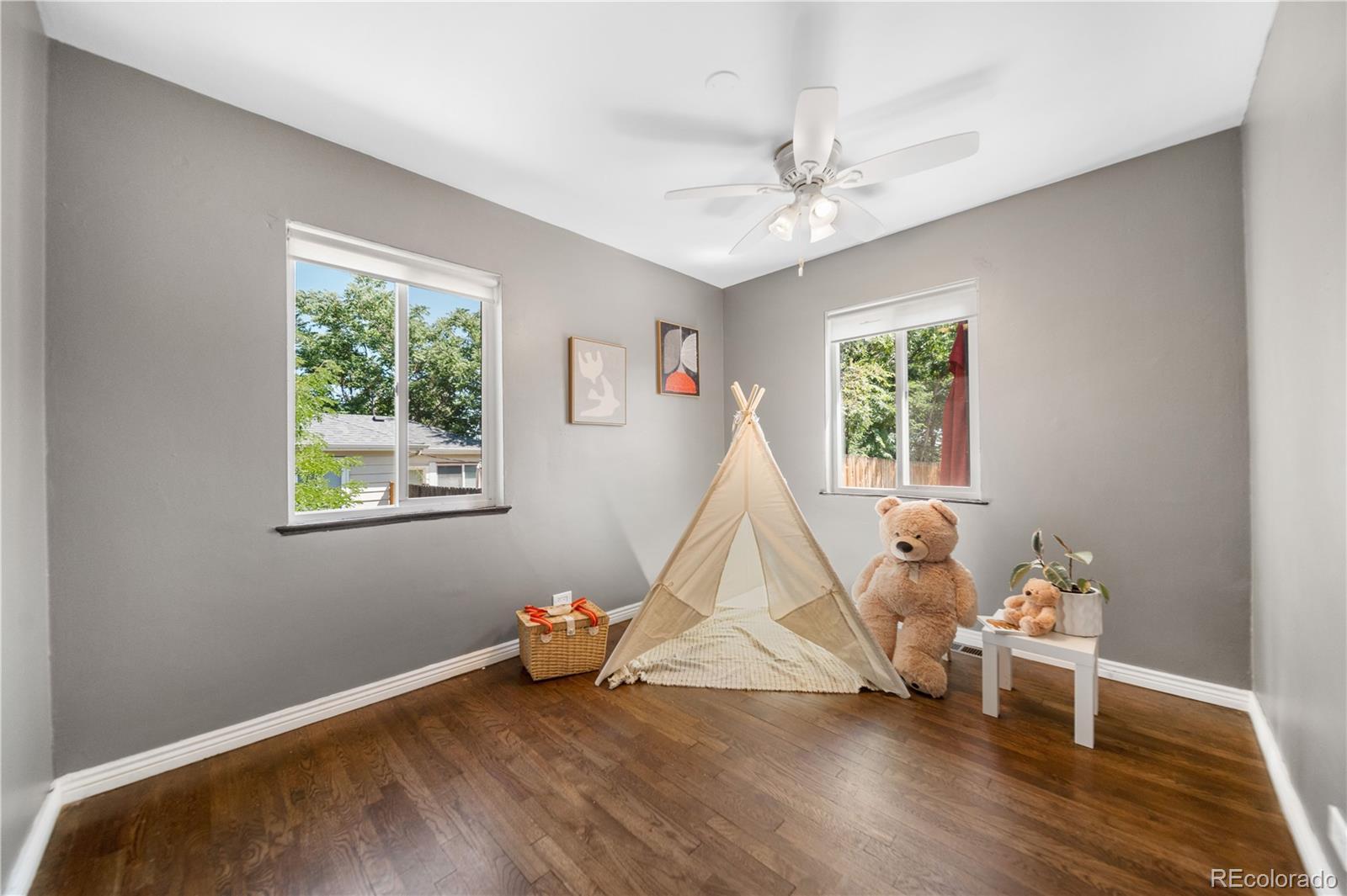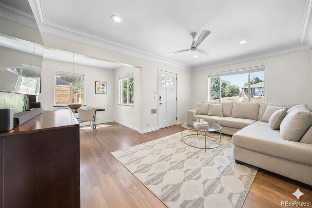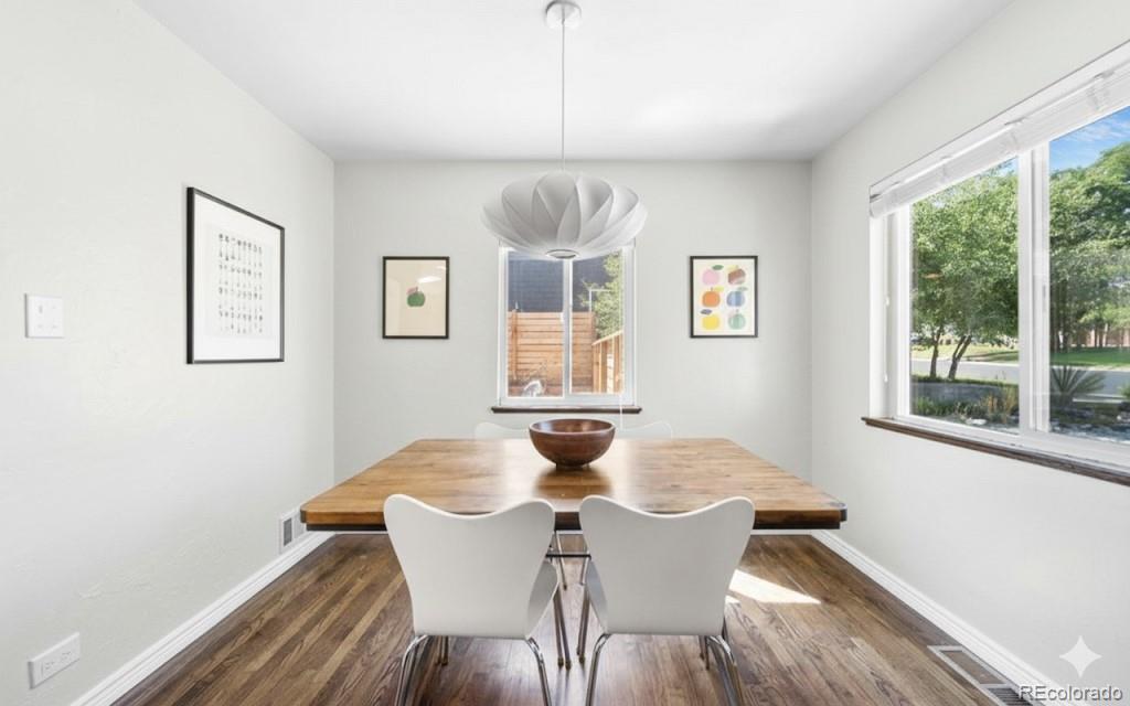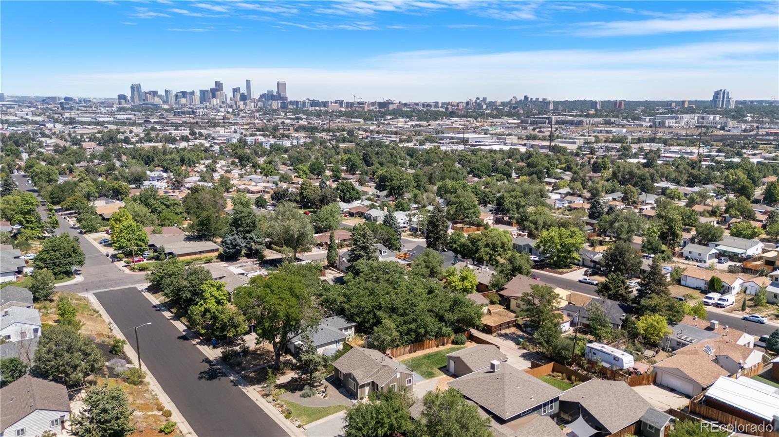 This updated Athmar Park Denver home sits on an oversized lot with striking skyline views and a brand-new Owens-Corning Duration roof (2025). Additional upgrades this year include new fencing, a modern security system, fresh paint and landscaping. Inside, you’ll find hardwood floors, an updated kitchen, with a Bosch dishwasher, plus a GE washer/dryer, newer furnace, AC, and tankless water heater. James Hardie cement board siding and a detached two-car garage add lasting value. Also has a radon mitigation system installed in 2024. The backyard features fresh sod for a lush retreat, while the professionally xeriscaped front yard offers low-maintenance curb appeal. Located near Huston Lake Park, this home offers quick access to walking trails, tennis courts, open green space, and shaded picnic areas. Outdoor enthusiasts will also enjoy nearby Barnum Park, Valverde Park, and the South Platte River Trail for walking, running, or biking. Goldrick Elementary School is about a 10-minute walk, while Grant Middle and Abraham Lincoln High are within easy biking or driving distance. Within a short bike ride or drive, explore Platt Park, South Broadway, and the Santa Fe Arts District, where you’ll find indie coffee shops, food trucks, boutiques, and weekend farmers markets. Head north to LoHi and RiNo for breweries, dining, and Denver nightlife. Commuters will love the easy access to I-25, light rail, and downtown Denver. This is more than just a house — it’s an updated Athmar Park home offering a lifestyle that blends city convenience with outdoor recreation. **This home has two amazing Loan Offerings: 1. An Assumable VA Loan if you are a qualified Buyer & 2. This property qualifies for a $5,000 Closing Cost Incentive offered by preferred lender as well as 100% financing with NO Mortgage Insurance - contact the listing agent for more information** (Note: Kitchen, dining, and living room photos are digitally altered to show fresh paint color, removal of wooden beam and staging.)