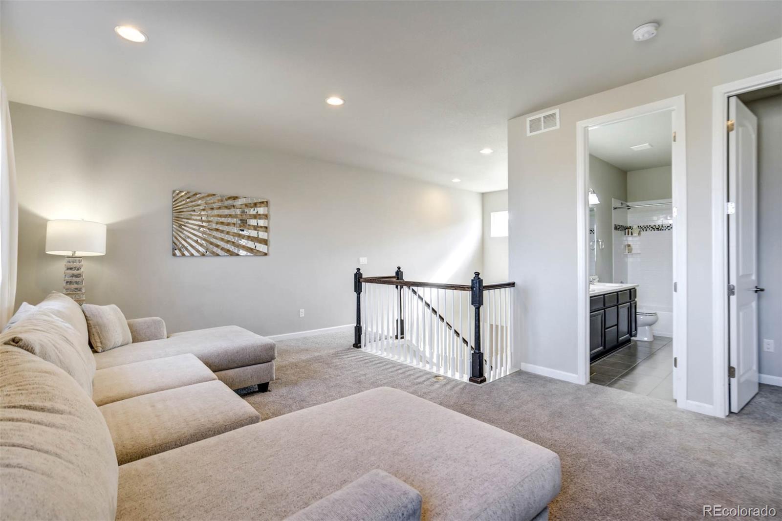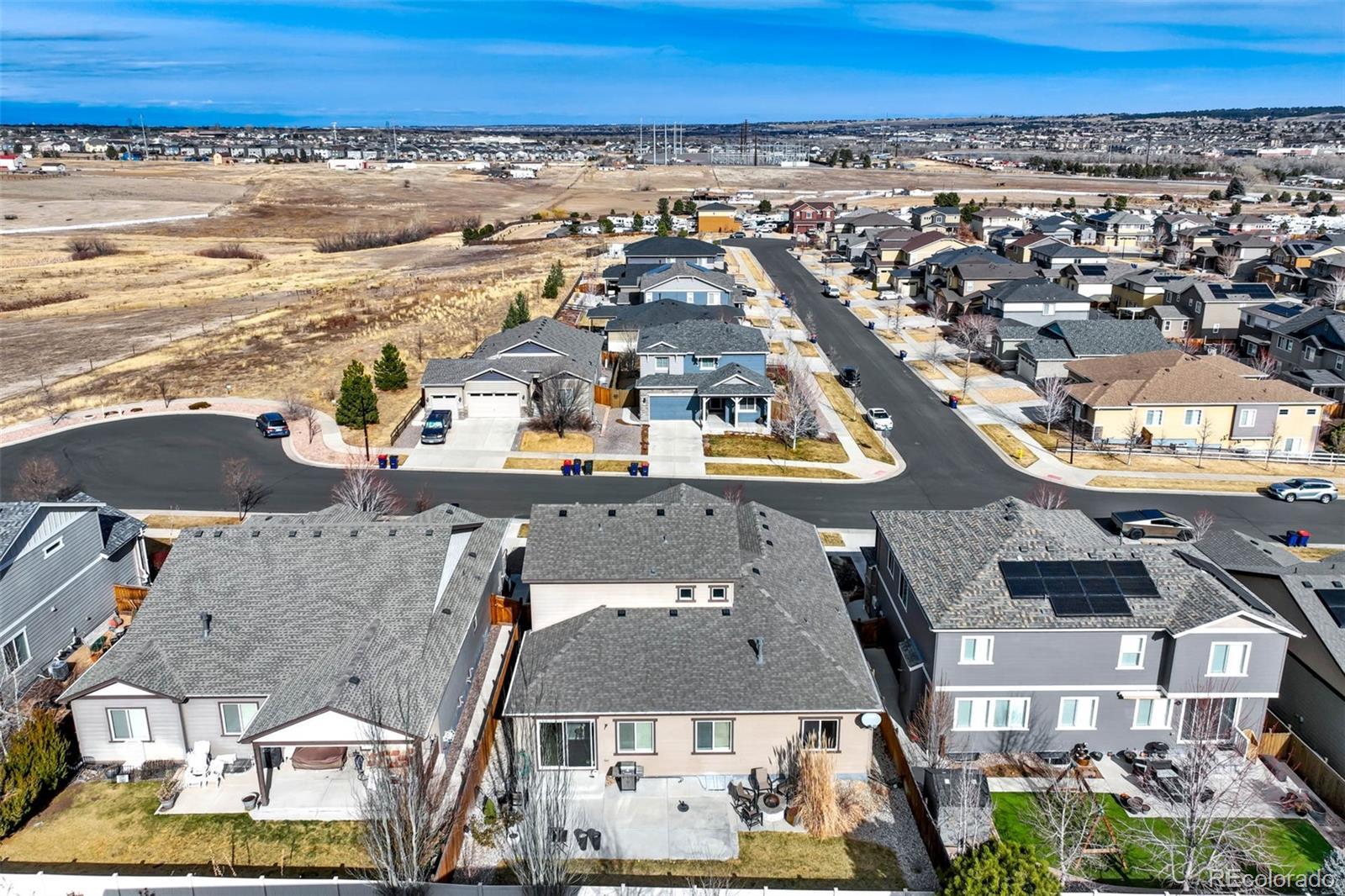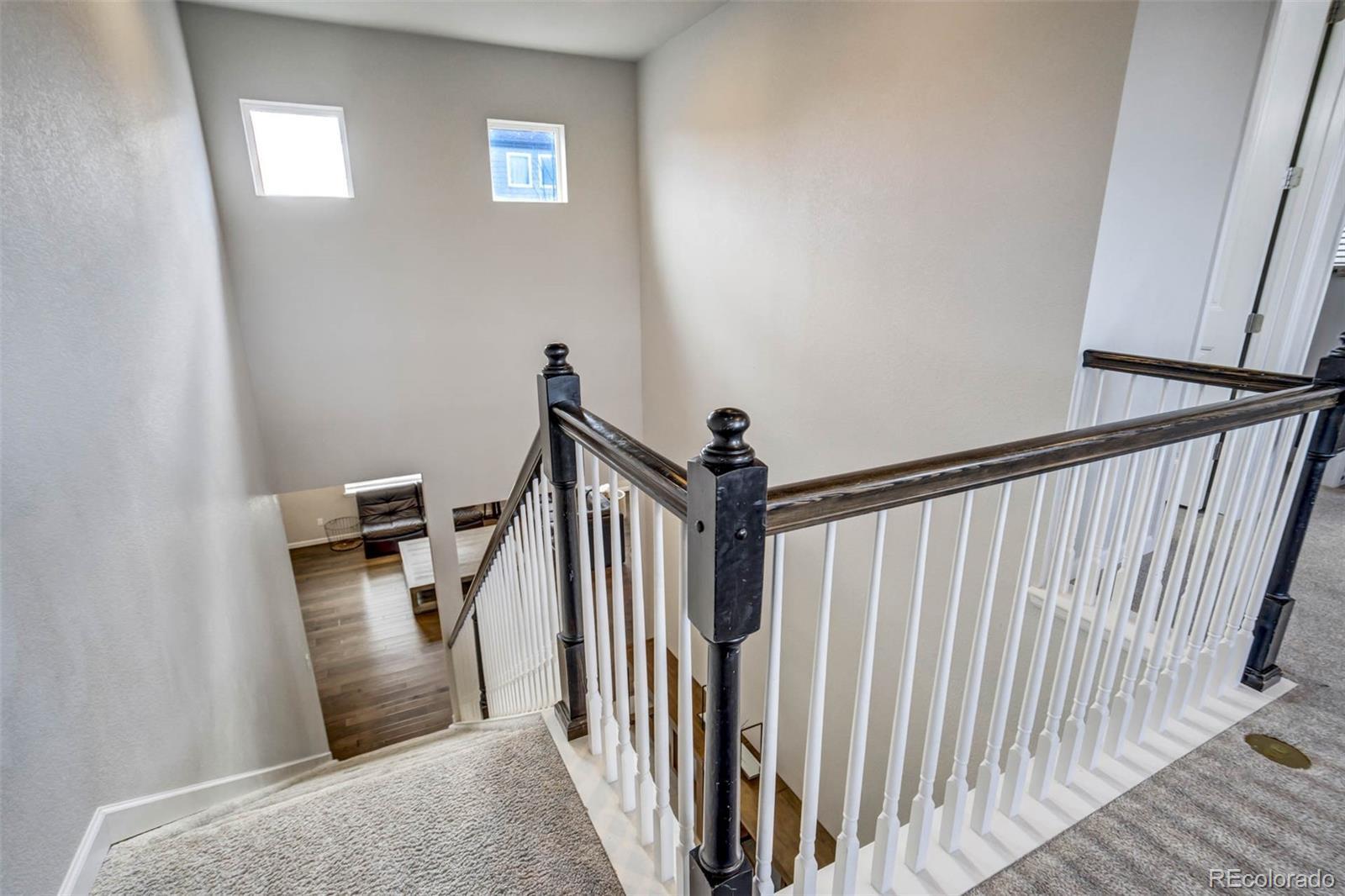 This stunning ranch-style home with a bonus upstairs level — featuring a loft, two additional bedrooms, and a full bathroom — in desirable Salisbury Heights is completely turn-key and a true must-see. Enjoy professionally landscaped front and back yards, highlighted by a large concrete patio with a built-in fire pit, perfect for year-round entertaining. Tucked away on a quiet street near the end of a cul-de-sac, this home offers both privacy and convenience. The main floor features a spacious primary suite with a luxurious 5-piece bath and large walk-in closet, plus two additional bedrooms and a generous office. Upstairs provides flexible living space with two more bedrooms and a versatile loft ideal for a media room, playroom, or workspace. At the heart of the home is a beautifully upgraded kitchen showcasing granite countertops, 42" dark cabinetry, a massive center island, gas cooktop, and all stainless-steel appliances included. Additional highlights include an oversized 3-car tandem garage (EV Charger included) and an expansive 2,025 sq. ft. unfinished basement with 9-ft ceilings ready for customization. Enjoy abundant neighborhood trails, walking distance to Salisbury Park, and quick access to I-25, E-470, and charming downtown Parker. This home truly checks all the boxes — location, layout, upgrades, and outdoor living.