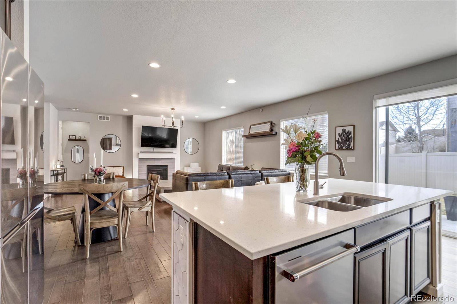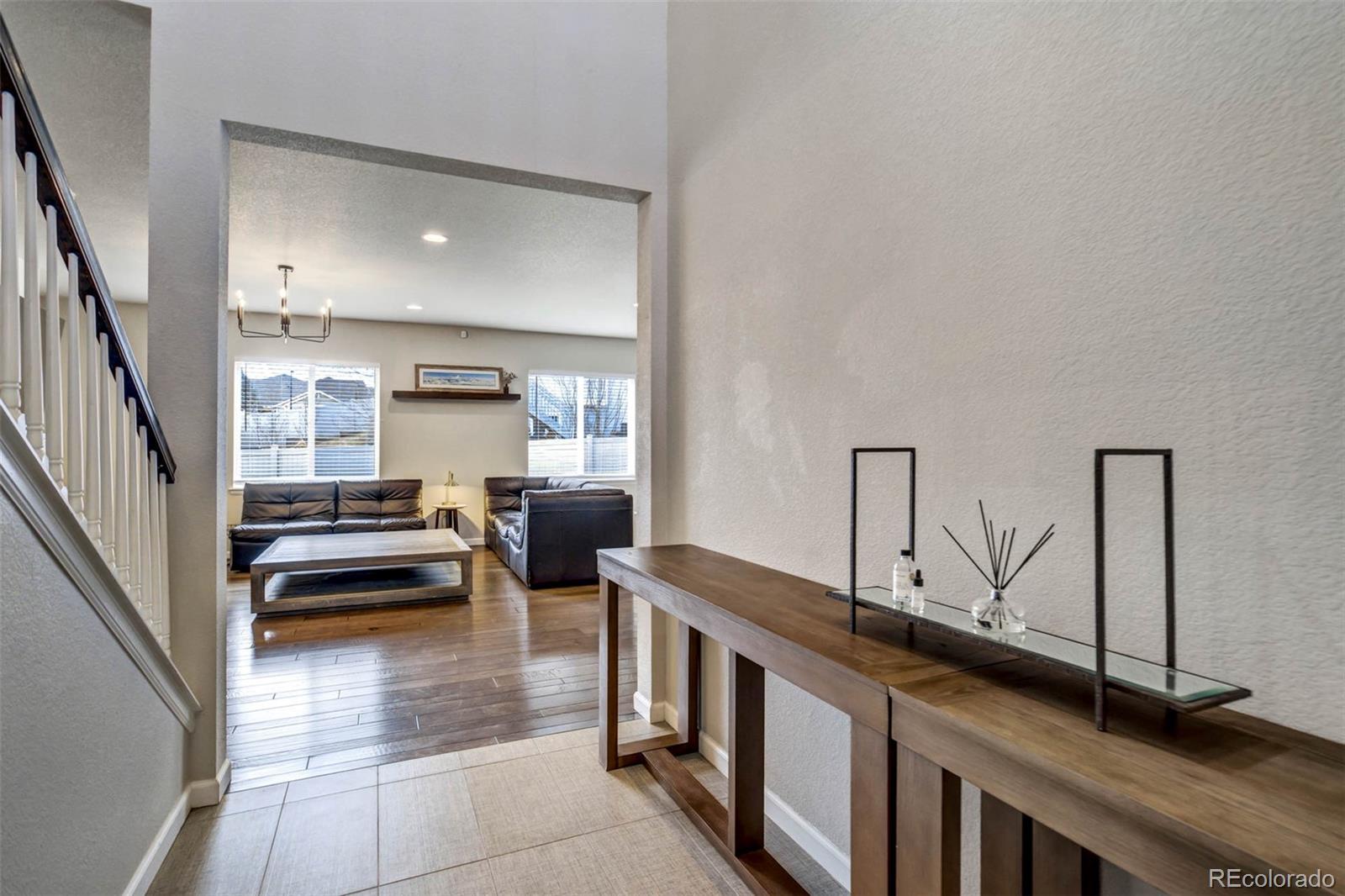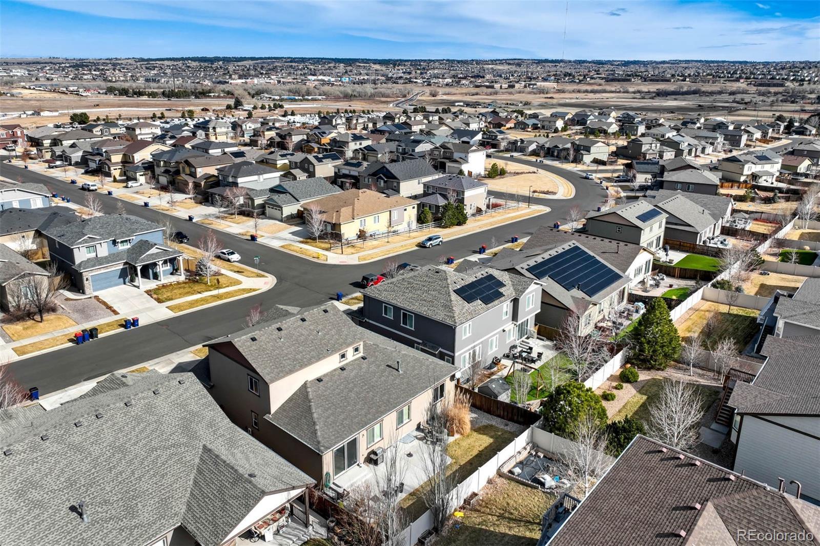 This stunning ranch-style home with a bonus upstairs level — featuring a loft, two additional bedrooms, and a full bathroom — in desirable Salisbury Heights is completely turn-key and a true must-see. Enjoy professionally landscaped front and back yards, highlighted by a large concrete patio with a built-in fire pit, perfect for year-round entertaining. Tucked away on a quiet street near the end of a cul-de-sac, this home offers both privacy and convenience. The main floor features a spacious primary suite with a luxurious 5-piece bath and large walk-in closet, plus two additional bedrooms and a generous office. Upstairs provides flexible living space with two more bedrooms and a versatile loft ideal for a media room, playroom, or workspace. At the heart of the home is a beautifully upgraded kitchen showcasing granite countertops, 42" dark cabinetry, a massive center island, gas cooktop, and all stainless-steel appliances included. Additional highlights include an oversized 3-car tandem garage (EV Charger included) and an expansive 2,025 sq. ft. unfinished basement with 9-ft ceilings ready for customization. Enjoy abundant neighborhood trails, walking distance to Salisbury Park, and quick access to I-25, E-470, and charming downtown Parker. This home truly checks all the boxes — location, layout, upgrades, and outdoor living.