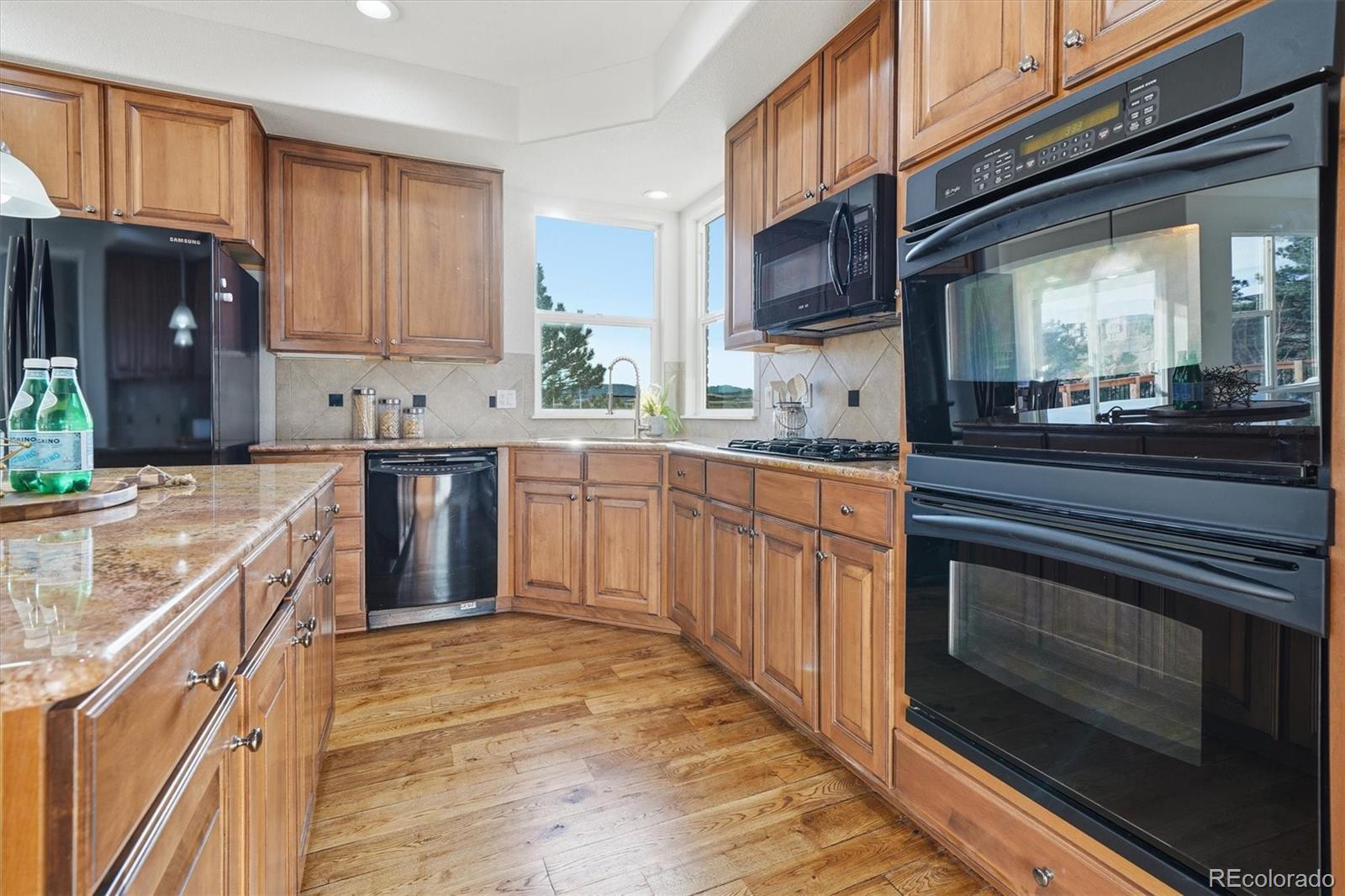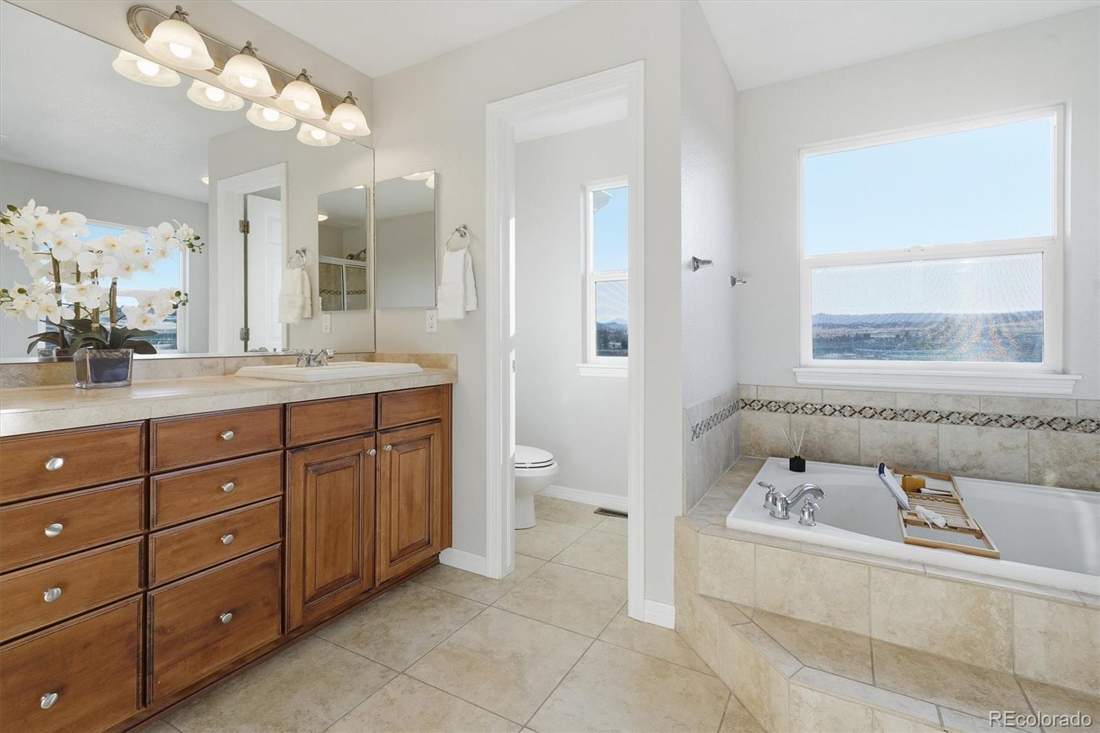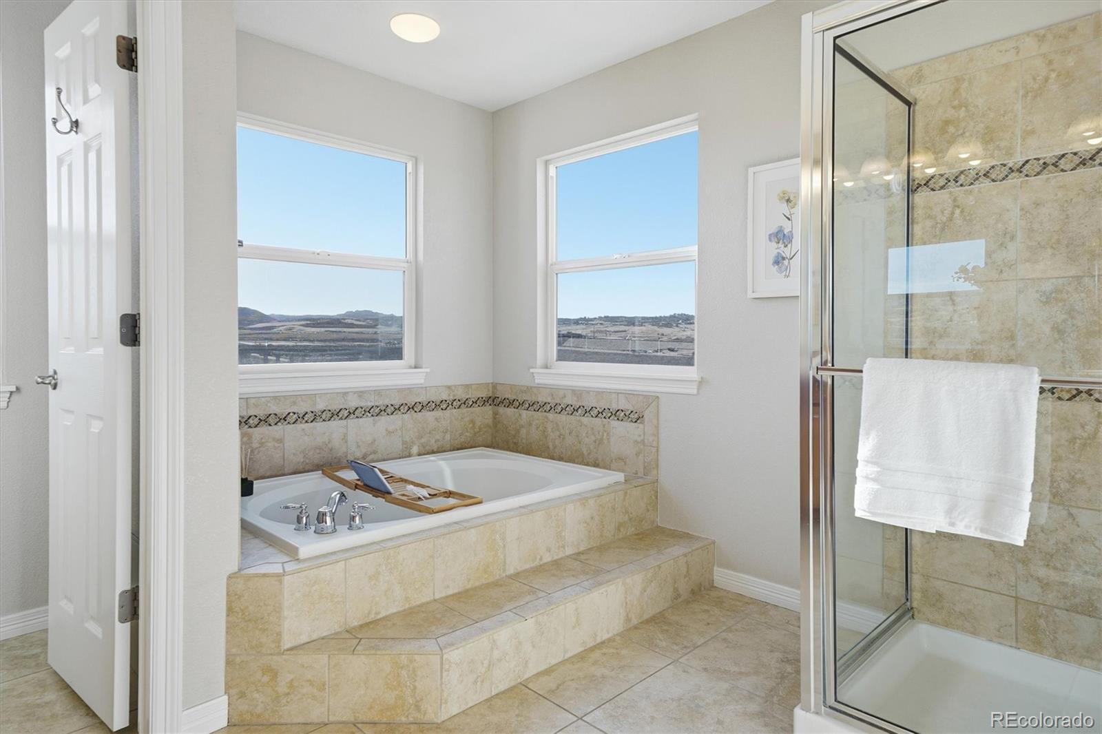 Stunning mountain and golf course views from almost every room! Pikes Peak, Rampart Range, The Castle Rock, Plum Creek Golf Course, and expansive open space. Welcome to 458 Crosshaven Place, a semi-custom 4 bedroom, 4 bathroom, 3 car garage home on 1/4 acre at the end of a cul-de-sac! New carpet, new paint, refinished hardwood floors welcome you inside this home. Formal living room and dining room, family room with gas fireplace and built-in bookcases, gourmet kitchen, bay window with eating area, step out to enjoy the views on the new 2-tiered trex deck. The main floor also features a private office with French doors and built-in bookcases, powder bathroom, and laundry room with rough-in for a laundry sink. The kitchen has slab granite counter, an island with pendant lighting, 42” maple cabinetry, a gas cooktop, double ovens, and a desk. This home is designed for everyday living and entertaining. The main level is complete with a formal living room, elegant dining room, a private study with custom built-ins, and a convenient powder bath. Upstairs, you’ll find 4 spacious bedrooms, including an spacious primary suite with a sitting area framed by windows that capture all the views, a luxurious 5-piece bath with a jetted soaking tub. Secondary bedrooms are thoughtfully designed with a large Jack-and-Jill bath, plus a private en-suite bath in the guest bedroom. The walk-out basement offers endless possibilities and is ready for your custom finish. This is Colorado living at its finest: views, privacy, unforgettable sunrises and sunsets, and space to truly make it your own.