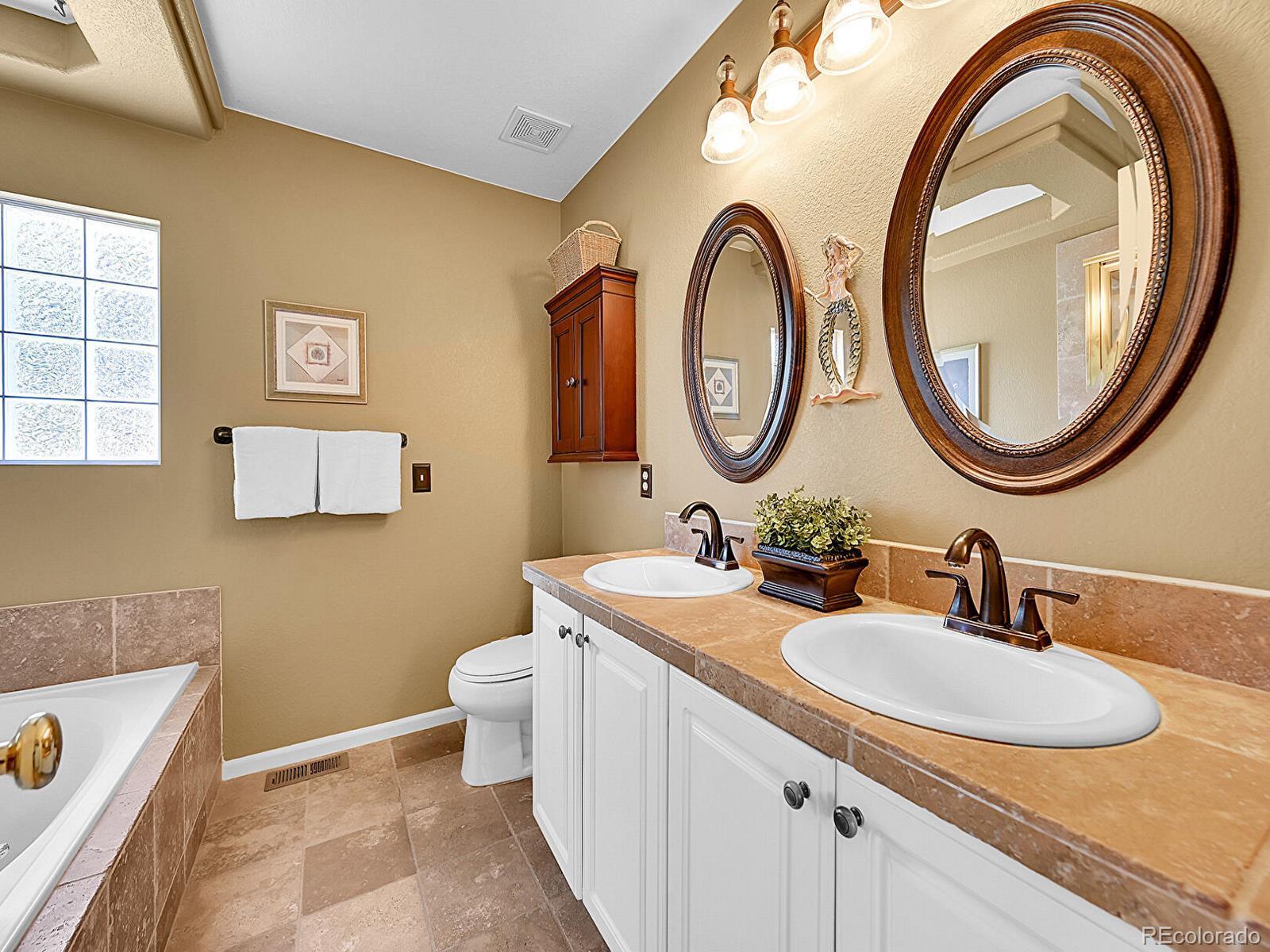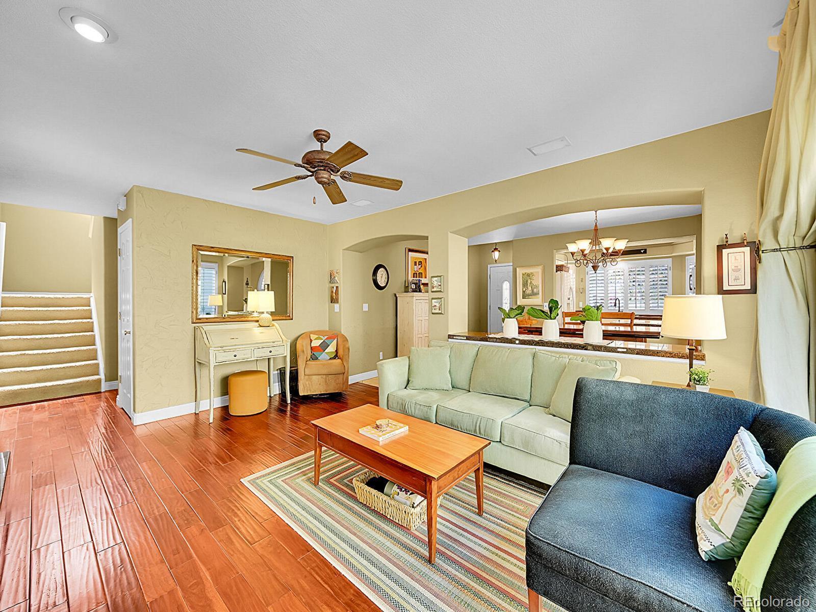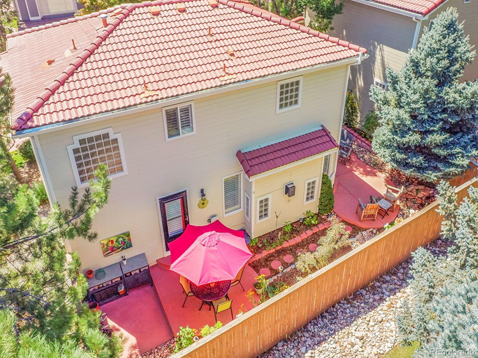 Welcome to 1221 Braewood Avenue, a sun-soaked gem on a corner lot in the heart of Highlands Ranch! With two back patios, a finished basement, and an open layout, this 3-bedroom, 4-bathroom home is one of few in the neighborhood backing open space and offers an inviting space primed for comfort and connection. The dining room stands out with built-ins, marble tile floors, and a dramatic arched window framed by plantation shutters. The adjacent kitchen features wraparound windows, granite tile counters, white cabinetry, and a peninsula for casual seating or extra prep space. In the living room, hand-scraped acacia wood floors, oversized patio doors, and a striking stone-tile fireplace create a warm gathering spot that connects to the courtyard for effortless indoor-outdoor living. A convenient half bath and laundry room with built-ins complete the main level. Upstairs, the primary suite is a sunny retreat with abundant windows, a generous walk-in closet, and a 5-piece en suite bath with a glass shower and soaking tub. Two additional bedrooms and a nearby full bath provide flexibility for family, guests, or a home office. The finished basement adds additional living space with a large rec room and a half bath—perfect for a guest suite or multigenerational living! Additional basement storage and a two-car garage ensure a place for hobby gear or seasonal décor. A fully fenced courtyard invites you to unwind with a stacked-stone water feature, lush greenery, garden beds, and oversized patios made for drinking morning coffee, dining al-fresco, or hosting under the stars. Enjoy access to nearby Westridge Rec Center, Marcy Park, and neighborhood trails. With Highlands Ranch Town Center, University of Denver Golf Club at Highlands Ranch, Chatfield Reservoir, and access to C-470 just minutes away, recreation, dining, and adventure are right outside your door.