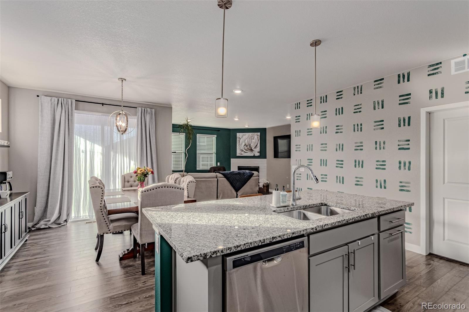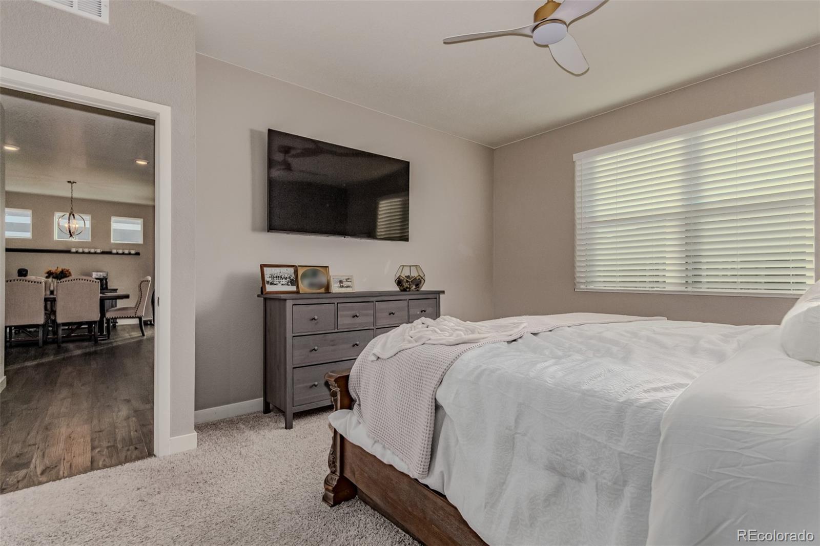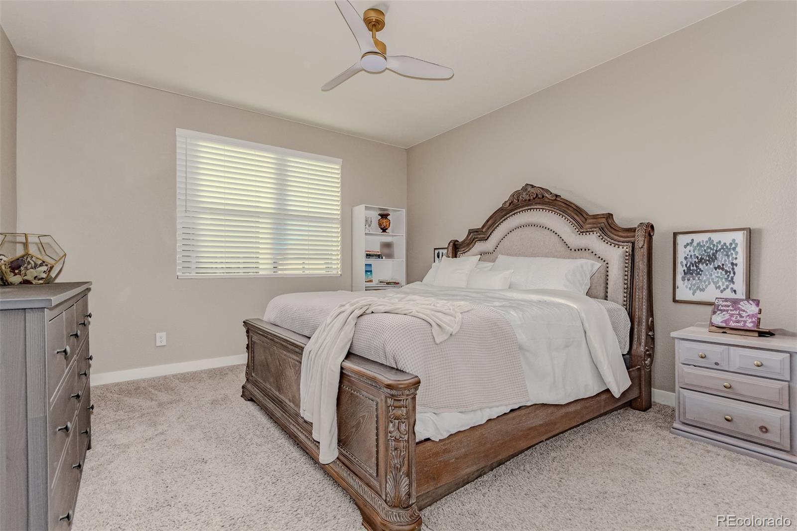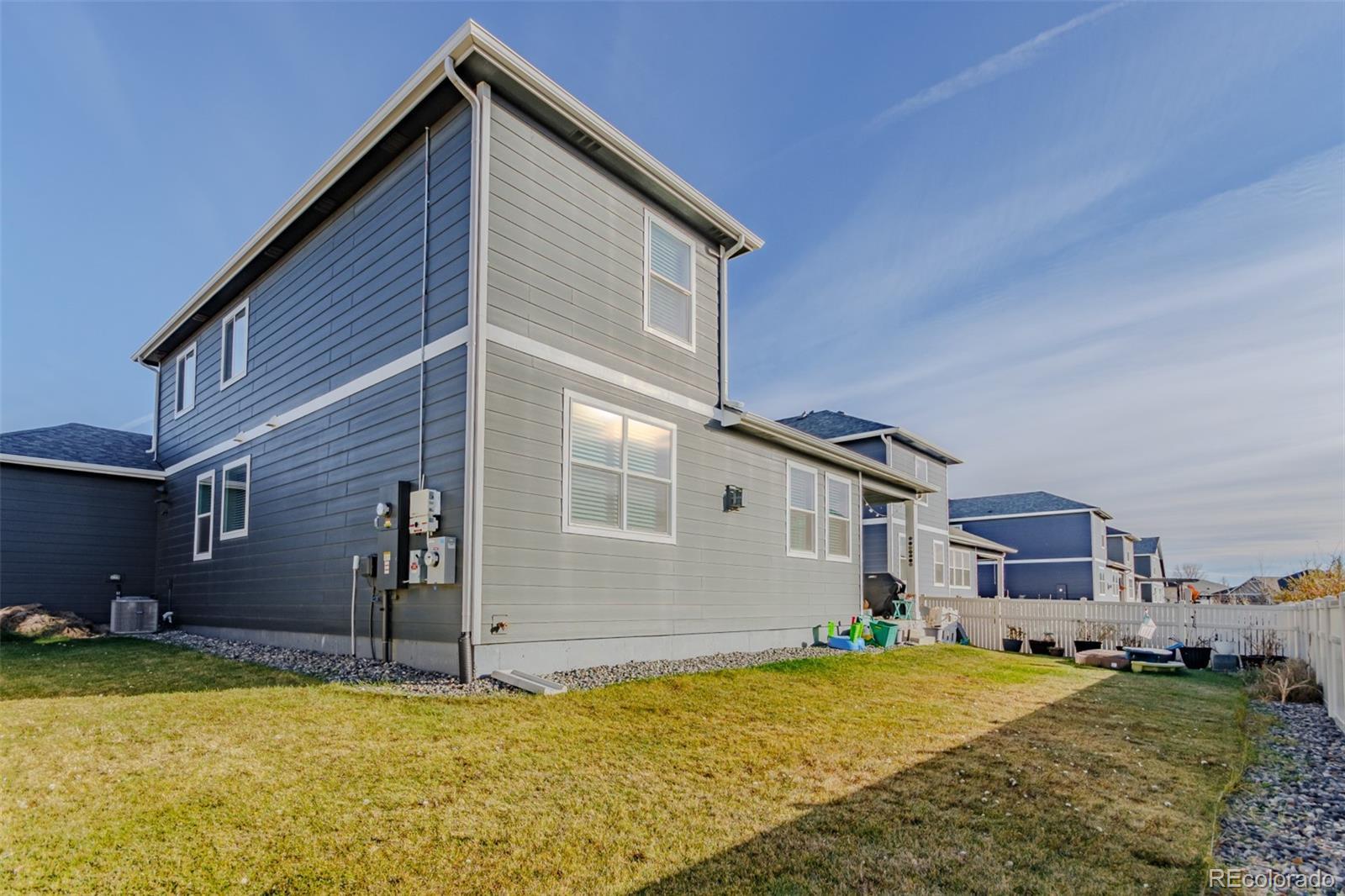 Just Reduced. Saddleback community offers homeowners a quiet peaceful neighborhood with mountain views. Amazing floorplan! Solar energy home! Reduced utility costs. 4-bedrooms, 3-bath with an office and a loft that could be a 5th bedroom. New fiber optic internet by Ripple Fiber ISP provider was just brought in to the development. A spacious 3-car garage and fully landscaped with low water use drought tolerant plants in the front yard provides great curb appeal. You'll be delighted by the layout that flows from the entry foyer into the heart of the home with an open concept great room with high ceilings, a contemporary palette, recessed lighting, warm laminate flooring, and an inviting fireplace for intimate evenings with loved ones. Culinary adventures await in the gourmet kitchen, equipped with granite counters, white shaker cabinets with crown moulding, chic pendant lighting, a tile backsplash, stainless steel appliances, a pantry, and a huge solid surface island with a breakfast bar seating. The layout is perfect for entertaining in the formal dining area with access to the covered patio. This layout has 4 bedroom and a cozy office with double French doors. The primary bedroom suite has a spacious bedroom, an ensuite with double sinks, soaking tub, dual sink vanity and a walk-in closet. The upper level could be a full guest suite with a spacious loft area that includes a closet, a bedroom and a full bath. The loft itself could be a 5th bedroom as it does have a closet. Imagine peaceful afternoons in the lovely backyard, which includes a covered patio and lush natural turf for outdoor activities with a view to the west to catch those mountain sunsets. Easy commute via I-25.