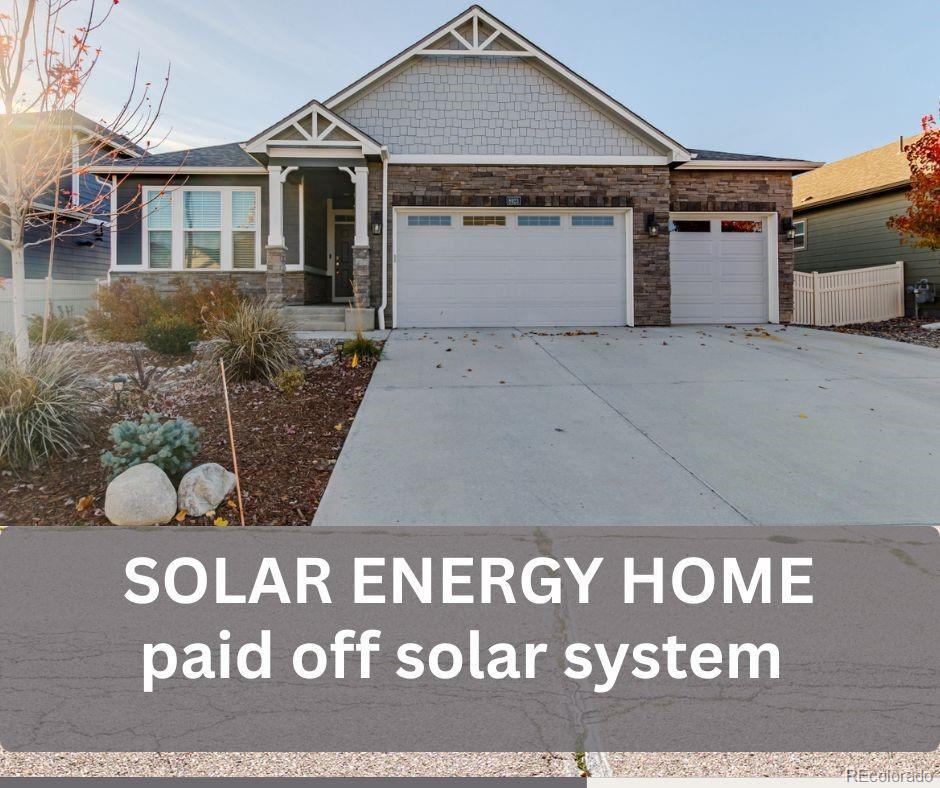 Just Reduced. Saddleback community offers homeowners a quiet peaceful neighborhood with mountain views. Amazing floorplan! Solar energy home! Solar system paid off at closing so buyer gets all the benefits of the reduced future utility costs. Factor that value into the listing price of the home. 4-bedrooms, 3-bath with an office and a loft that could be a 5th bedroom. New fiber optic internet by Ripple Fiber ISP provider was just brought in to the development. A spacious 3-car garage and fully landscaped with low water use drought tolerant plants in the front yard provides great curb appeal. You'll be delighted by the layout that flows from the entry foyer into the heart of the home with an open concept great room with high ceilings, a contemporary palette, recessed lighting, warm laminate flooring, and an inviting fireplace for intimate evenings with loved ones. Culinary adventures await in the gourmet kitchen, equipped with granite counters, white shaker cabinets with crown moulding, chic pendant lighting, a tile backsplash, stainless steel appliances, a pantry, and a huge solid surface island with a breakfast bar seating. The layout is perfect for entertaining in the formal dining area with access to the covered patio. This layout has 4 bedroom and a cozy office with double French doors. The primary bedroom suite has a spacious bedroom, an ensuite with double sinks, soaking tub, dual sink vanity and a walk-in closet. The upper level could be a full guest suite with a spacious loft area that includes a closet, a bedroom and a full bath. The loft itself could be a 5th bedroom as it does have a closet. Imagine peaceful afternoons in the lovely backyard, which includes a covered patio and lush natural turf for outdoor activities with a view to the west to catch those mountain sunsets. Easy commute via I-25.