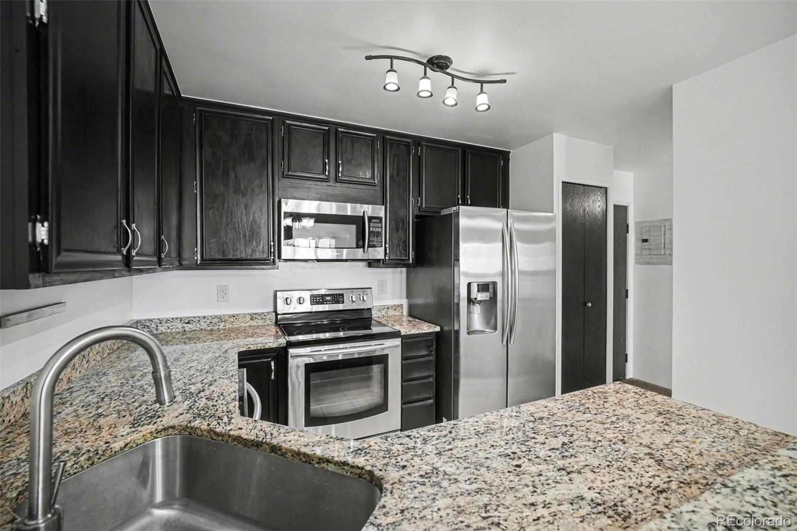 Rare and beautifully refreshed 1-bedroom condo in Denver’s sought after Morningside community. The kitchen shows off sleek granite countertops, flowing effortlessly into the spacious living and dining area. The open layout keeps everything connected. Fresh paint throughout and contemporary updated bathroom. Sliding glass doors lead to your private screened-in lanai; Pella windows improve efficiency and comfort. Morningside residents enjoy indoor and outdoor pools, a fitness center, sauna, clubhouse, BBQ areas, and beautifully maintained grounds. Covered parking, shared laundry, and private storage keep daily life simple. The HOA is professionally managed so you can focus on living. Walkable shopping at Whole Foods & King Sooper; for recreation, Kennedy Golf Course & Bible Park. You are conveniently close to the DTC, but the Southmoor Light Rail Station is nearby if you are going Downtown; I-25 and I-225 are close by (but not too close) in case you need to go anywhere else! Groceries, greens, and getting around are all within easy reach. Smart & stylish, this condo delivers comfort and value in a community that has already figured out how to do both well.