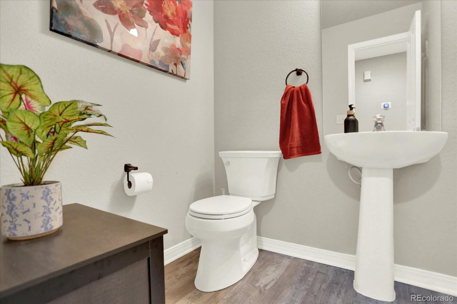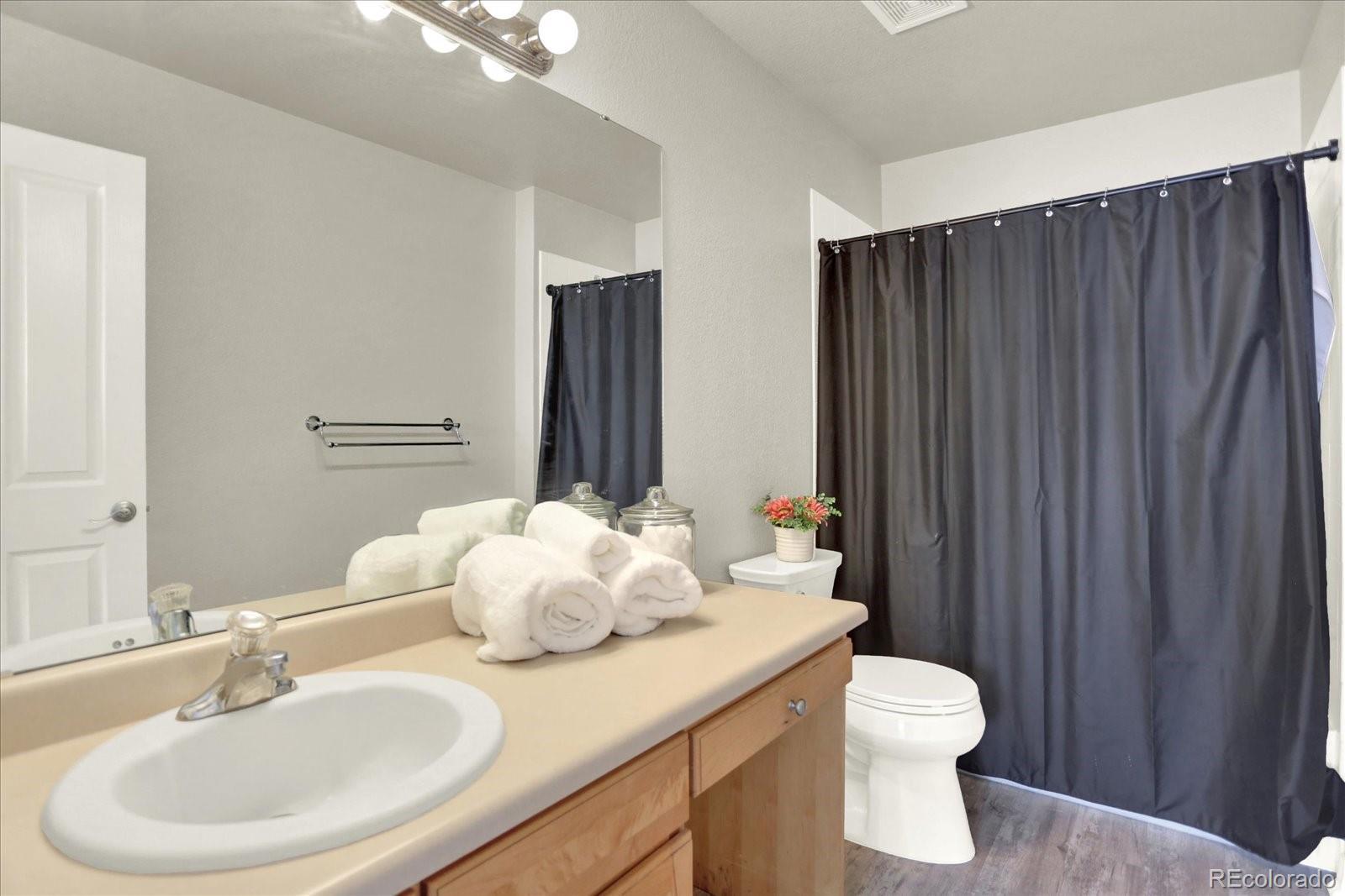 Welcome home to the beautiful tranquility of Old Farm Townhomes. You're going to love this quiet community that is nestled in the heart of Thornton--conveniently located adjacent to Trail Winds Park and Open Space, Trail Winds Recreation Center, Trail Winds Dog Park and Veterans Memorial Aquatic Center! Additionally, a beautiful park and playground area are located within the subdivision. A private entrance from the private patio opens into the main level living area, dining room and kitchen. A half bath finishes the main floor. Four baths total in this property--every level has a bath! Two upstairs bedrooms both enjoy private bathrooms. The master bedroom boasts a generous walk-in closet. Cellulose blinds in the living areas and bedrooms can slide open from top or bottom, allowing the perfect amount of sunlight to illuminate the area based on the position of the sun. The fully finished basement is flexible, based on your living style. Currently used as a bedroom, this area could easily be converted to an additional living area as needed. Bathroom (complete with shower) is attached. Home includes a HALO-LED whole home in duct air purifier. The garage is located directly across from the unit--offering private parking and additional storage. Laundry facilities are located in the basement. Come take a look and fall in love with this fantastic property!