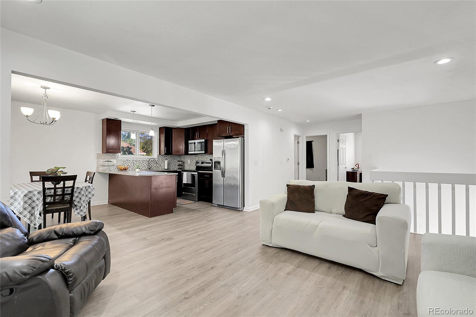 Charming Bilevel Home in Seven Lakes! This versatile home features a spacious 2-car garage and an oversized concrete driveway that can easily accommodate 2 full size vehicles and an RV, 3 bedrooms and 2 baths, previously a 4-bedroom layout. The main level offers a family room, a bright kitchen with an island, and a dining area with access to the backyard deck and yard. Perfect for grilling, relaxing, and entertaining. Enjoy brand new vinyl plank flooring throughout the dining area, kitchen, and living room. The stairs, lower level bedroom, and walk-in closet feature brand new carpet and pad for added comfort. The lower level’s former 4th bedroom has been transformed into a large walk-in closet. The closet can easily be converted back to a bedroom to fit your needs. The property is located in the desirable Seven Lakes community within the Cherry Creek School District, this home is close to DIA, Buckley Air Force Base, shopping, restaurants, schools, E-470, I-225, and more. A perfect blend of comfort, convenience, and versatility! Priced to sell, Don’t miss the opportunity to call this home your own!