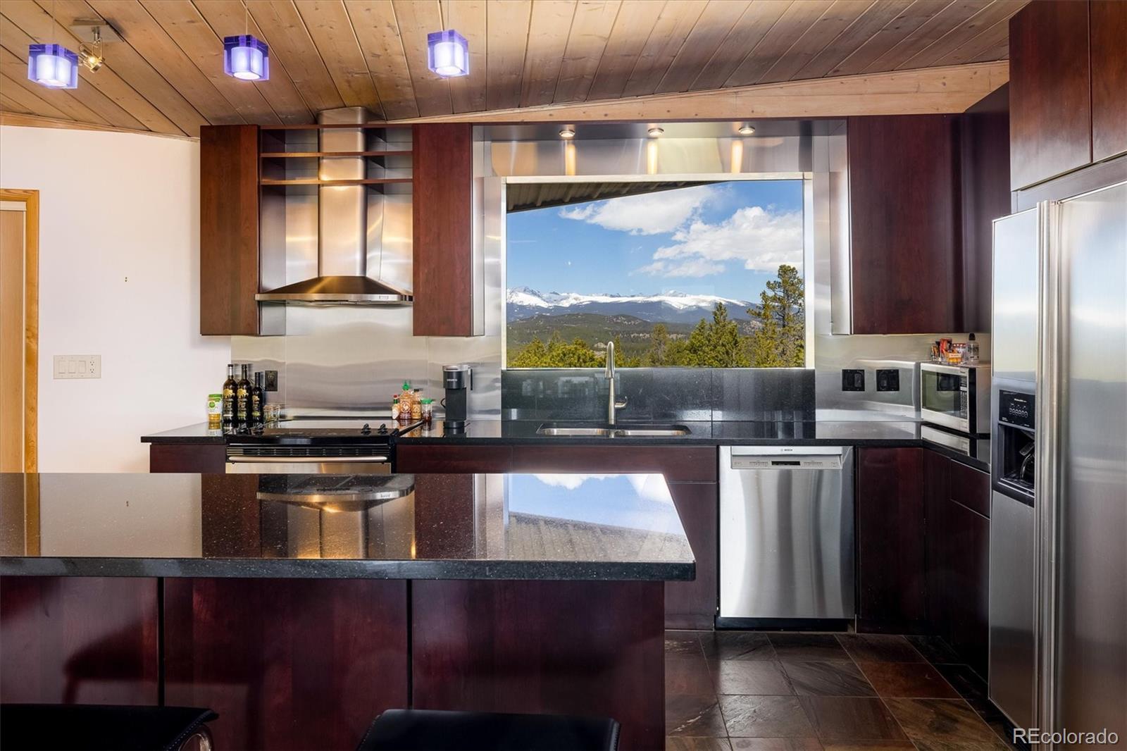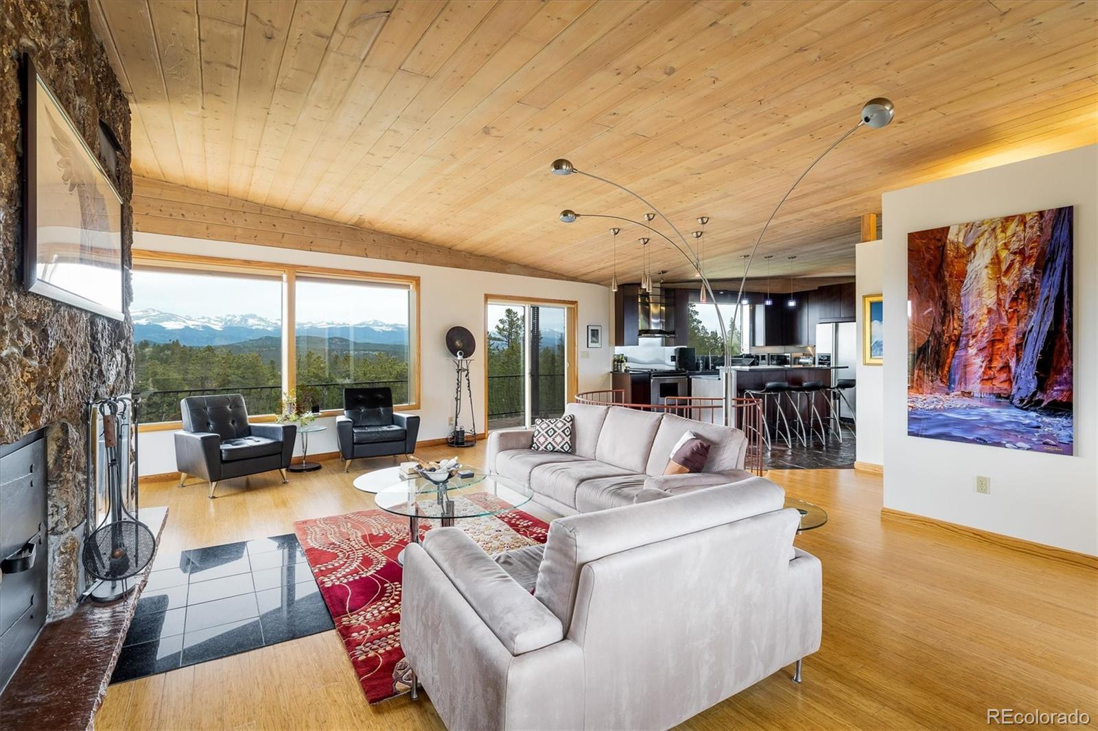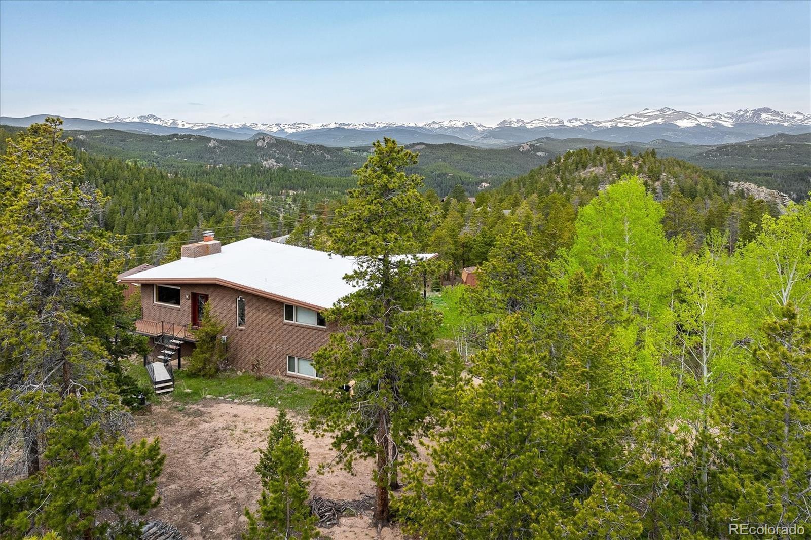 Colorado Mountain Home | Perched on Top of the World. From this fabuously remodeled mid century brick home there are breathtaking views of the Continental Divide and sweeping vistas in every direction—only 20 minutes from Boulder and Golden. Step through a custom stained glass entry into a light-filled haven featuring an open-concept floor plan with vaulted ceilings, bamboo flooring, and a handsome floor-to-ceiling stone fireplace anchoring the space. The updated kitchen is a chef’s delight, with granite, island with counter seating, plenty of cabinetry and pantry storage—perfect for entertaining or everyday convienience. Dine alfresco on the covered balcony while watching Colorado’s legendary sunsets, then relax beneath a canopy of stars that seem close enough for you to touch. The serene primary bedroom with an en-suite bath offers a peaceful retreat. Downstairs, a spacious family room opens to another covered patio with a hot tub—ideal for unwinding after a day of mountain adventure. Whether you're working remotely with high-speed fiber optic internet or soaking in the natural beauty, this home offers the perfect balance of comfort and exploration. Wildlife sightings are a frequent delight and hiking into the National Forest begins just steps from your door. Gross Reserviour is a 15 minute drive for paddling or fishing, while South Boulder Creek—framed by towering rock walls offers exceptional fly fishing. And come winter, Eldora Ski Resort is only 30 minutes from home. With low Gilpin County taxes and a lifestyle that feels like a year-round retreat, this is more than a home—it’s a mountain dream come true in the Rocky Mountains of Colorado. Come on up and live where you play.