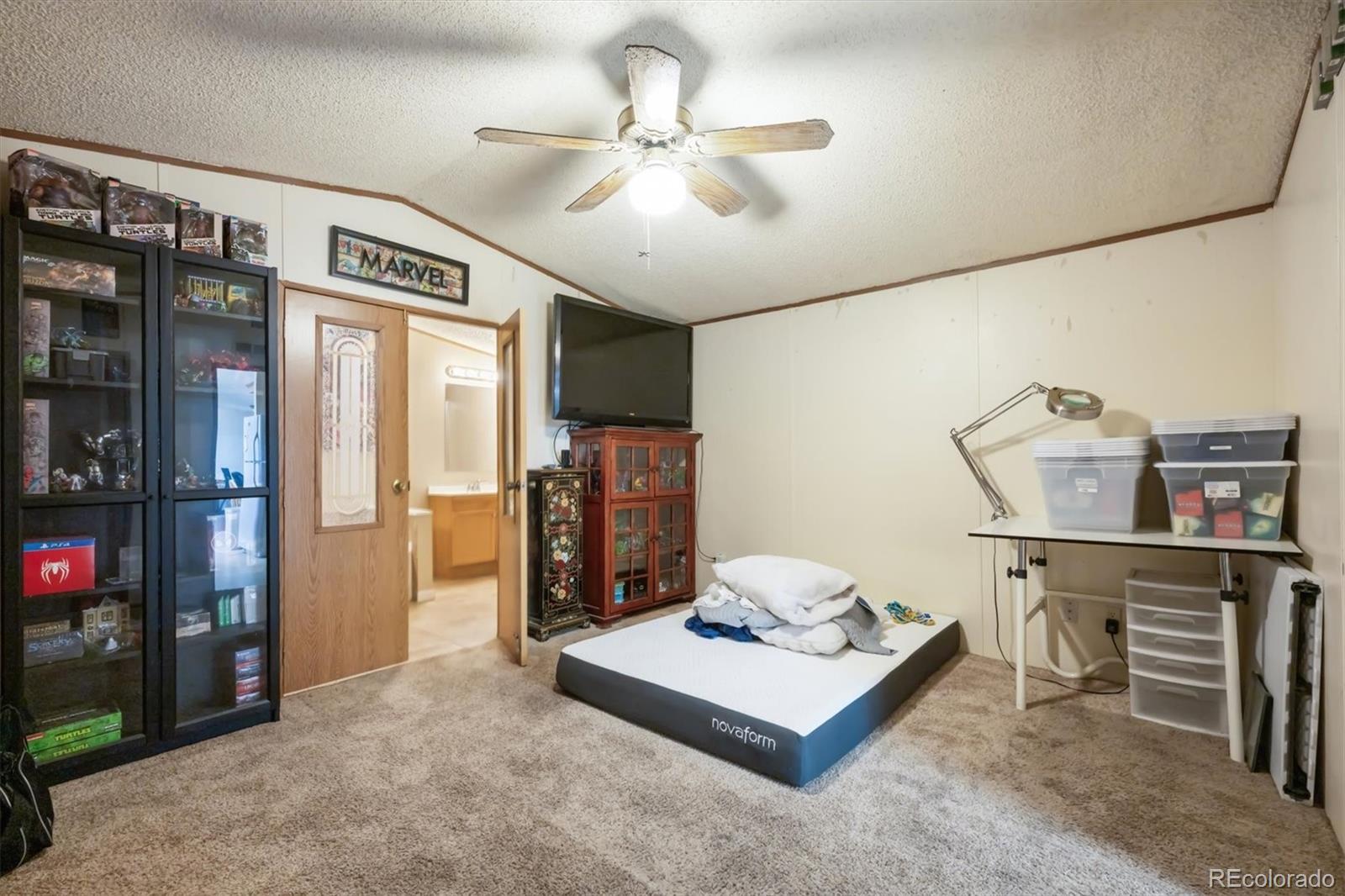 Welcome to River Valley MHC! This spacious 3-bedroom, 2-bath home offers 1,216 sq. ft. of open, light-filled living with soaring vaulted ceilings that create an airy, inviting feel throughout. Step into the family room where new luxury vinyl plank flooring pairs beautifully with abundant natural light, making the space perfect for relaxing or entertaining. The kitchen features a generous amount of cabinetry, a functional eat-in layout, skylights that flood the space with sunshine, and included appliances—making this an easy, stress-free move. The primary suite is a true retreat, offering plenty of room to unwind along with a ceiling fan and a stunning en-suite bath complete with double sinks, a soaking tub, and a walk-in shower. Two secondary bedrooms feature plush carpet and built-in light fixtures, while the shared bathroom includes a single-sink vanity and a convenient tub/shower combo. Washer and dryer are included for added convenience. Outside, enjoy a spacious 10x12 storage shed with electrical hookup, ideal for a workshop, hobby room, or extra storage. River Valley offers fantastic community amenities including a clubhouse, pool, and playground, all located within the St. Vrain Valley School District. This home is a wonderful opportunity—schedule your private showing today!