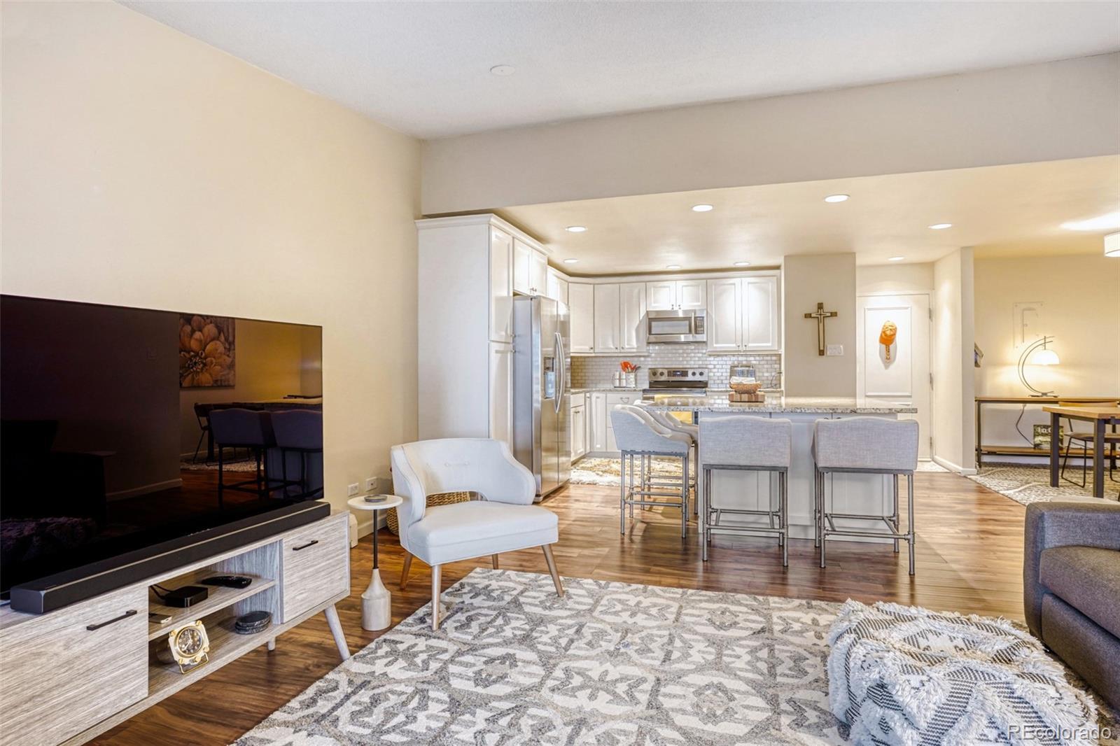 Beautifully updated top floor unit in Windsor Gardens. Fantastic open layout with incredible kitchen for those who enjoy cooking. White cabinets and granite countertops. Large balcony that is western facing to take in the mountain views and perfect Colorado sunsets. Top floor unit so you have no noise from above. 2 bedrooms and 2 bathrooms layout make it easy for guests or home office. Move in ready with high end living room and dining room furniture available to remain. Take full advantage of all of the amenities that Windsor Gardens has to offer including the Par 3 executive golf course, indoor and outdoor pools, workout facilities, bocce court, garden areas, and trails.