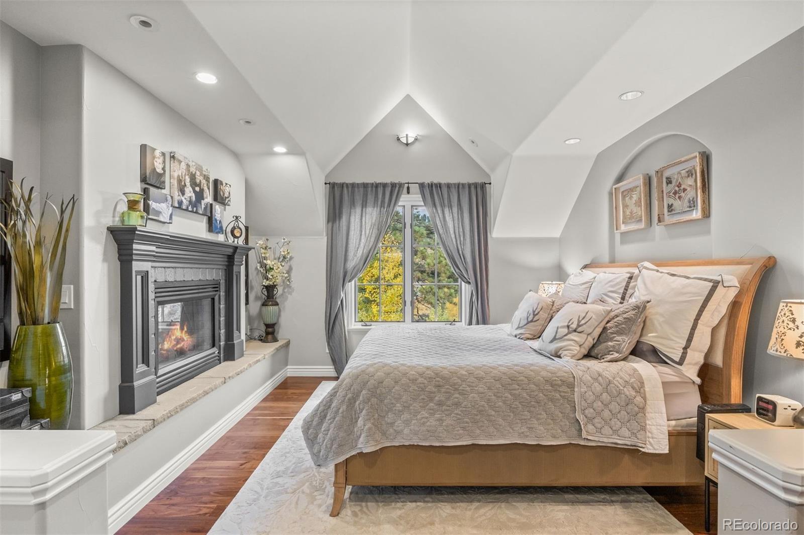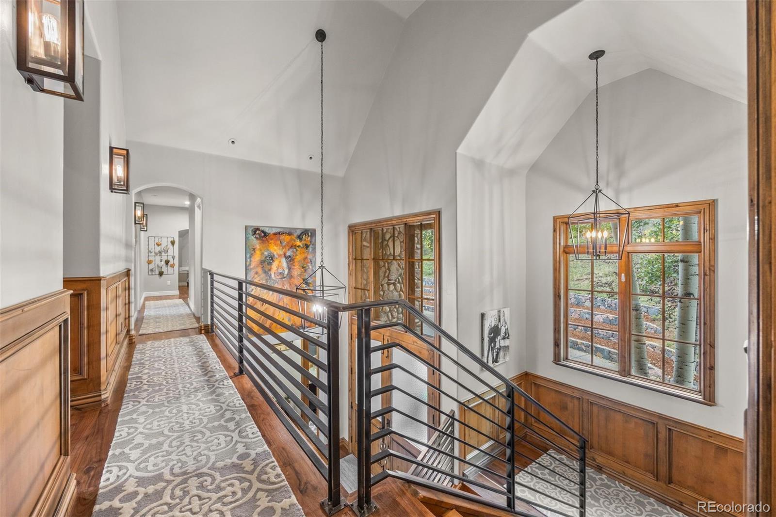 A Master Builder’s Own Home — Perfected for Modern Mountain Living. Perched in Evergreen’s exclusive Ridge neighborhood, this one-of-a-kind residence embodies the best of mountain luxury—where architectural integrity meets effortless comfort. Inside, walnut hardwood floors and handcrafted metal railings lead through bright, open spaces designed for both connection and retreat. Solid alder doors, custom millwork, and Savant whole-home automation create an atmosphere of understated luxury. Gather in the heart of the home — a chef’s kitchen equipped with Sub-Zero refrigeration, dual Asko dishwashers, GE commercial range, and dual sinks set within Caesarstone-topped islands. Step through to the indoor/outdoor kitchen, where a custom folding window system merges the interior with an outdoor entertaining pavilion. Outfitted with Sub-Zero, Wolf, Viking, and Miele appliances, reclaimed chestnut cabinetry, and exotic granite, this space is a true showpiece. Dine beneath radiant gas heaters beside a fire pit overlooking Evergreen’s pine-filled ridgelines. The lower walkout level invites entertaining, recreation and relaxation — a full media room with reclining theater seating, custom wet bar, and a climate conditioned wine cellar. Upstairs, the primary suite defines serenity, featuring a sitting area with double-sided fireplace, dual custom closets, and a spa-inspired bath with steam shower and radiant floors. Each secondary bedroom offers an en-suite bath and walk-in closet. Practical luxury continues with in-floor radiant heat, full second-floor air conditioning, three fireplaces, and a heated three-car garage with epoxy floors. From design to detail, this home stands out as a rare opportunity to possess and enjoy this builders creation — a masterwork of craftsmanship and comfort nestled in one of Evergreen’s most desirable communities.
