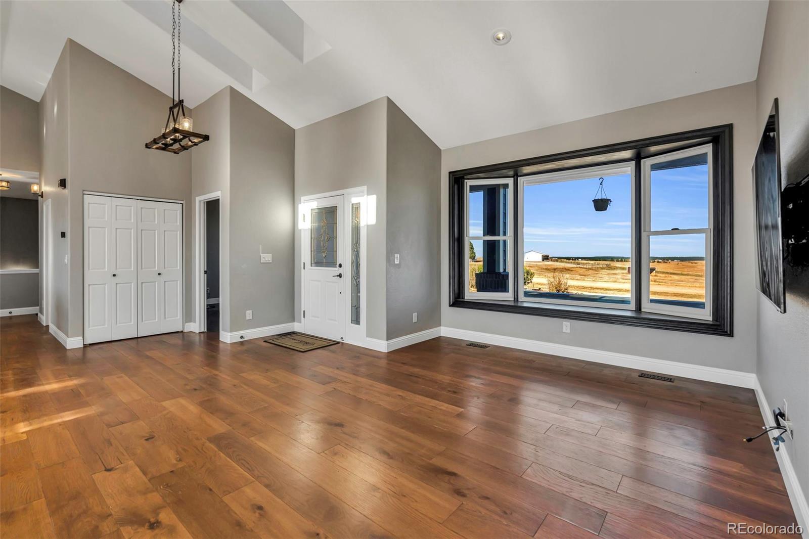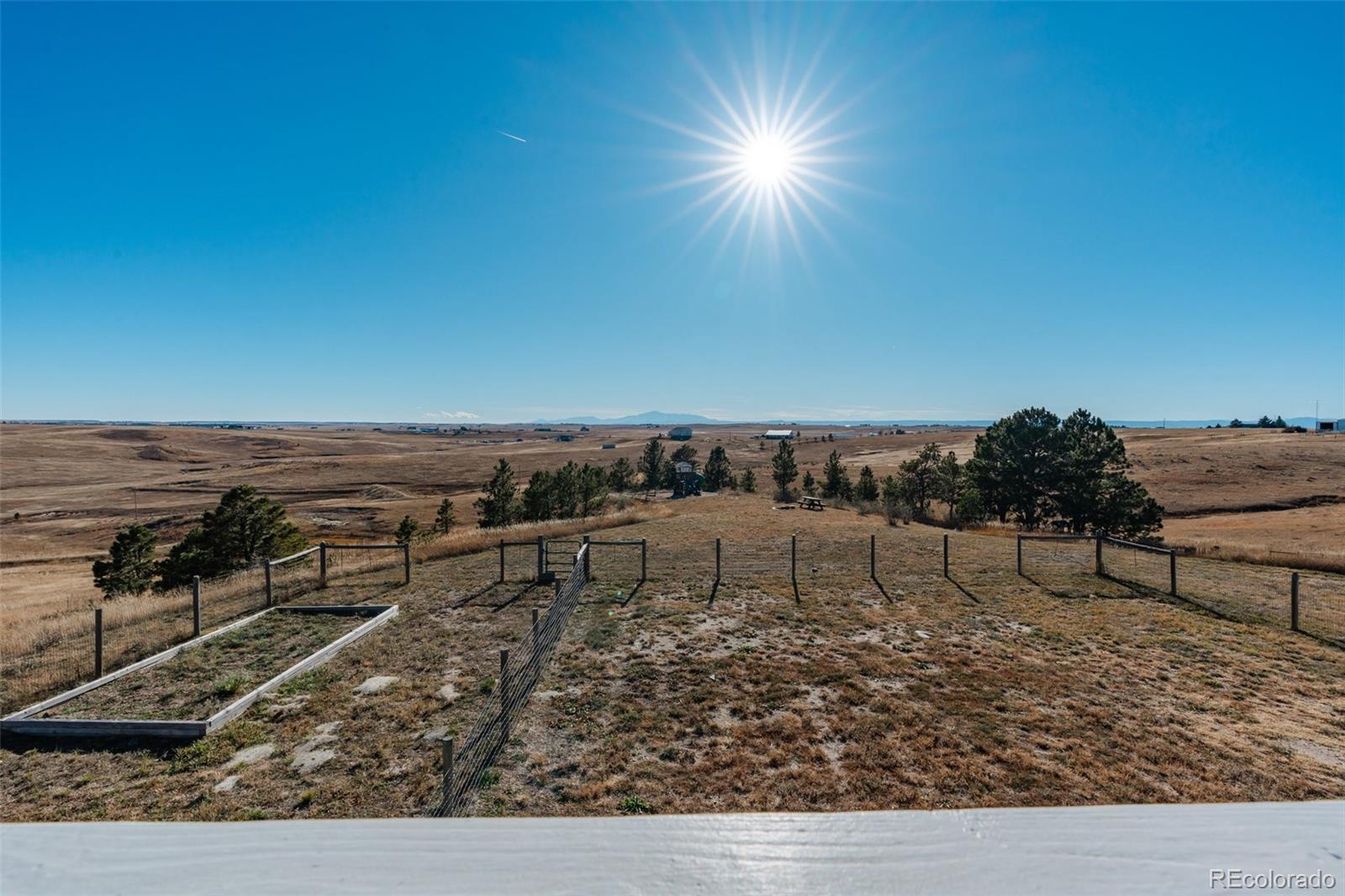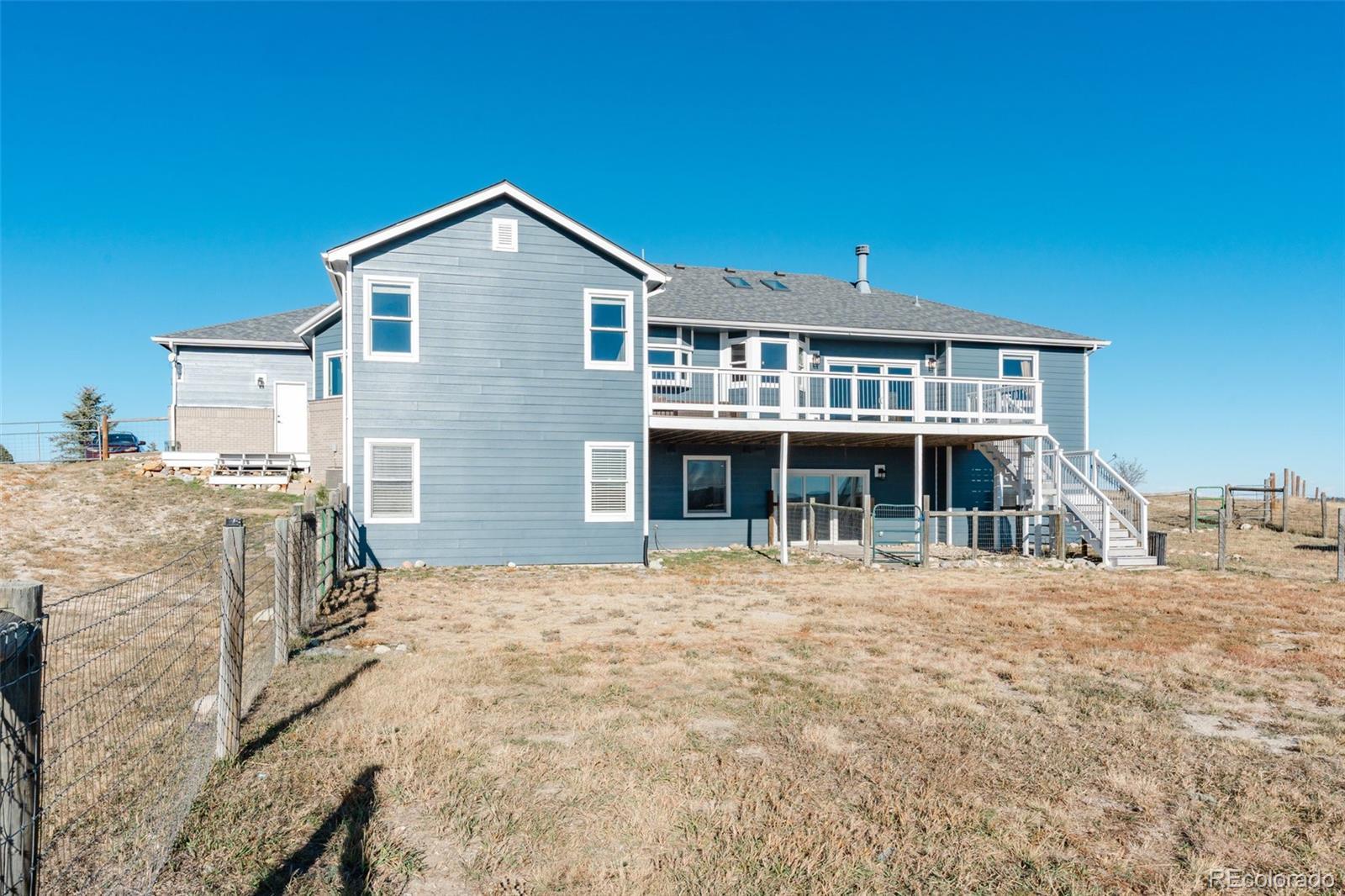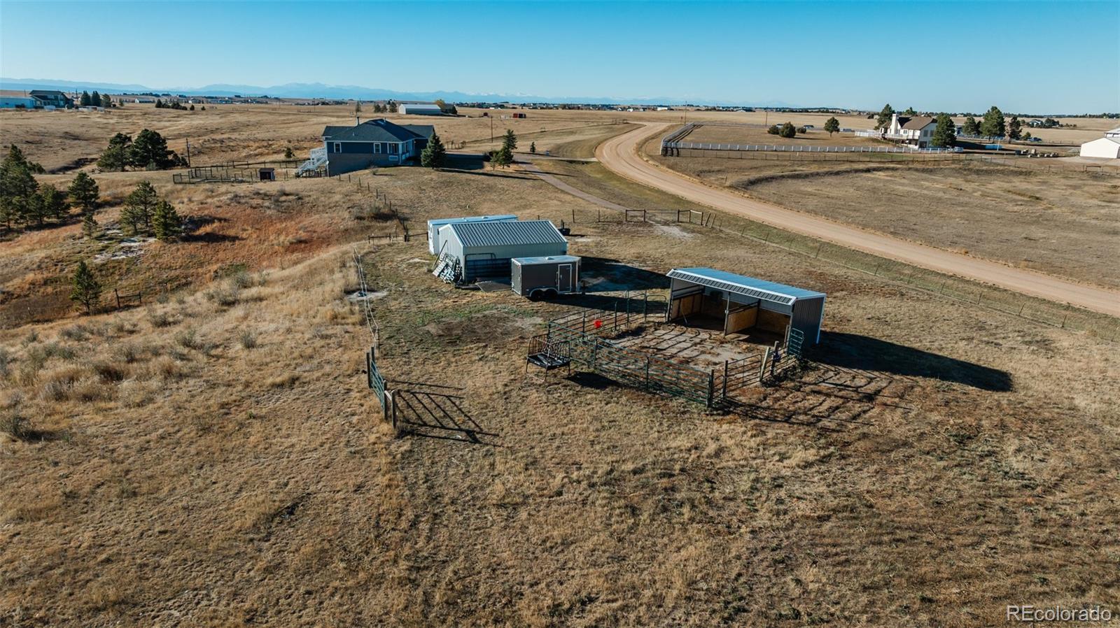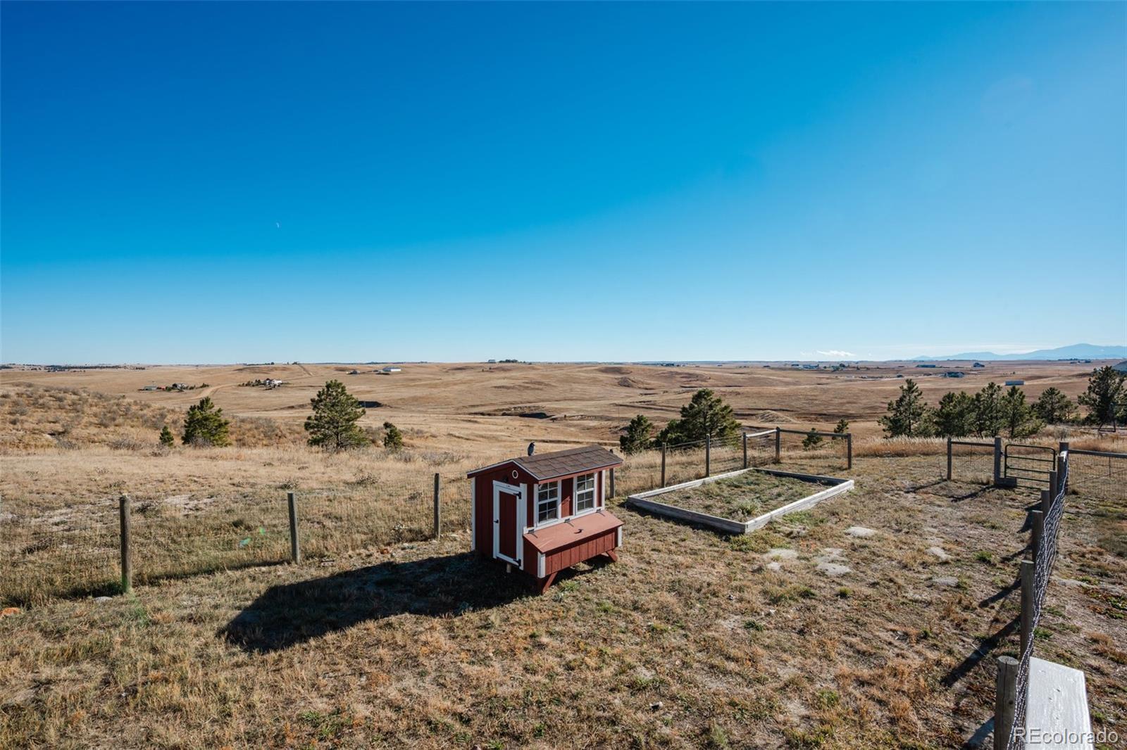 Beautiful ranch style home on 35 acres for sale in Elizabeth, Colorado! Bring your animals and toys ... this awesome property can handle both. Huge Front Range and Pikes Peak views. Just 10 minutes to the Town of Elizabeth. AG zoning provides for lower property taxes. 20x20 shop/garage can be converted into a barn, 20x12 loafing shed with 2 stalls. There is a large flat land area that could accommodate additional barns or arena. There is also a chicken coop, fenced area for dogs, two seasonal ponds, garden bed, playset and great outdoor livings spaces on the front covered patio and back deck! Inside the home has been beautifully updated; hardwood flooring throughout, stack stone fireplace, kitchen has stainless steel appliances, granite countertops and large island, 5 piece master bathroom with soaking tub, dual sinks and vanity, vaulted ceilings and skylights make this home light & bright! The finished walk-out basement has a custom wet bar area, media room with a beautifully detailed coffered ceiling, bonus room, 2 bedrooms, bathroom and laundry room. The list goes on, this one is a must see!