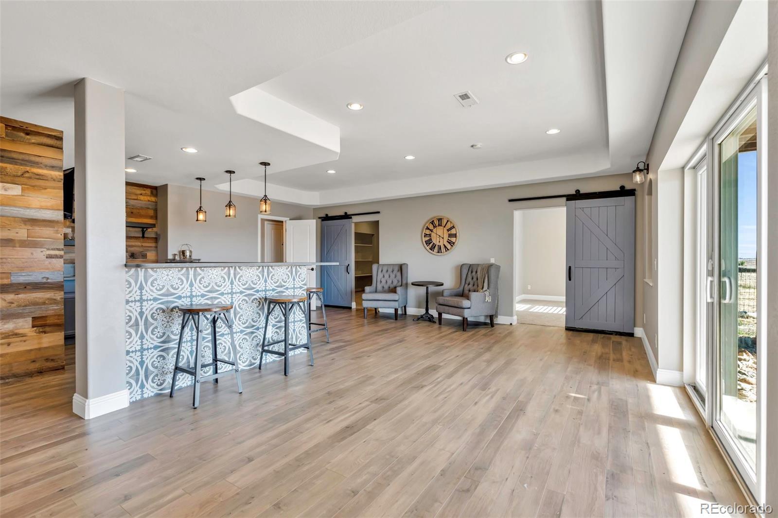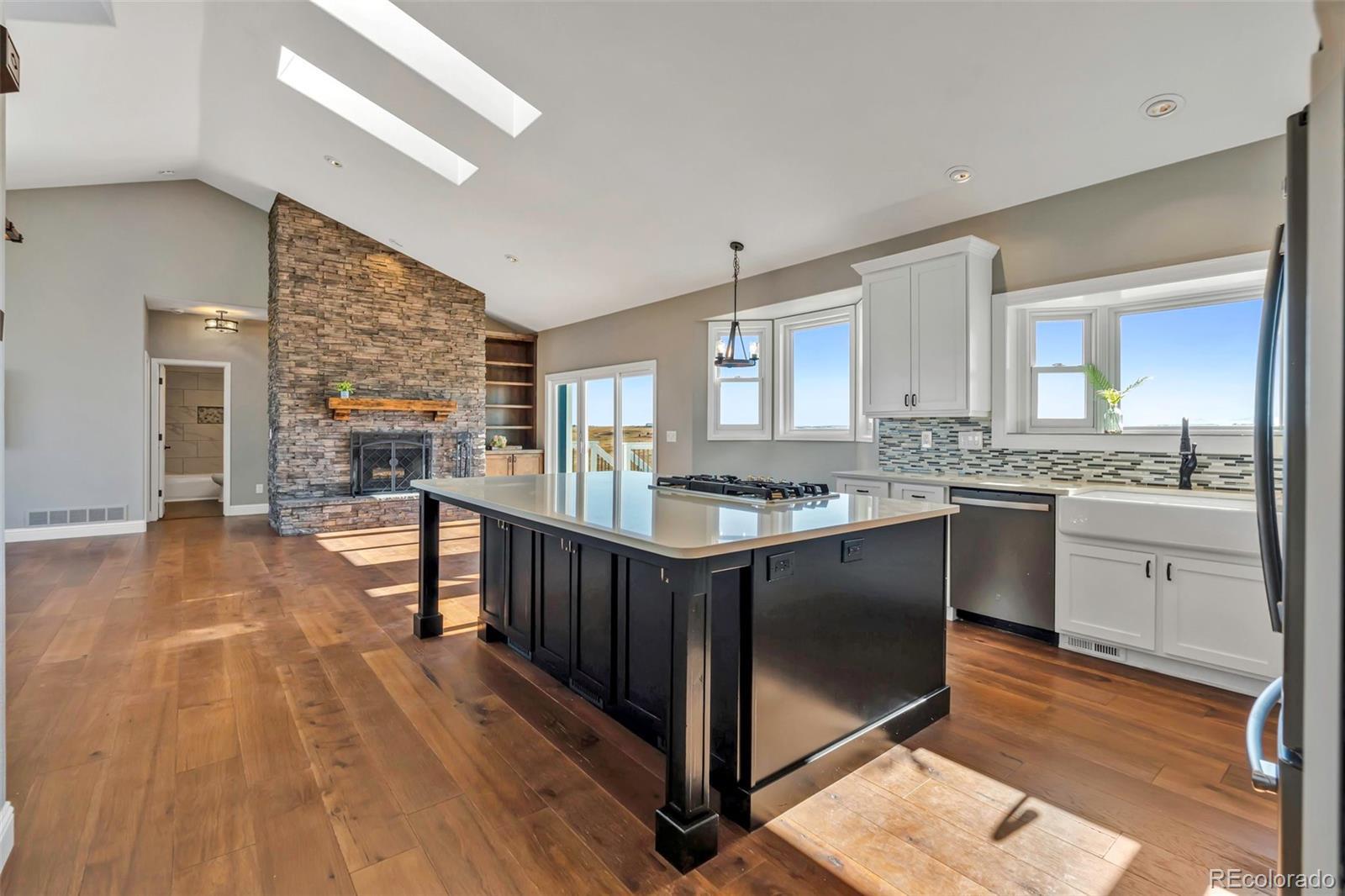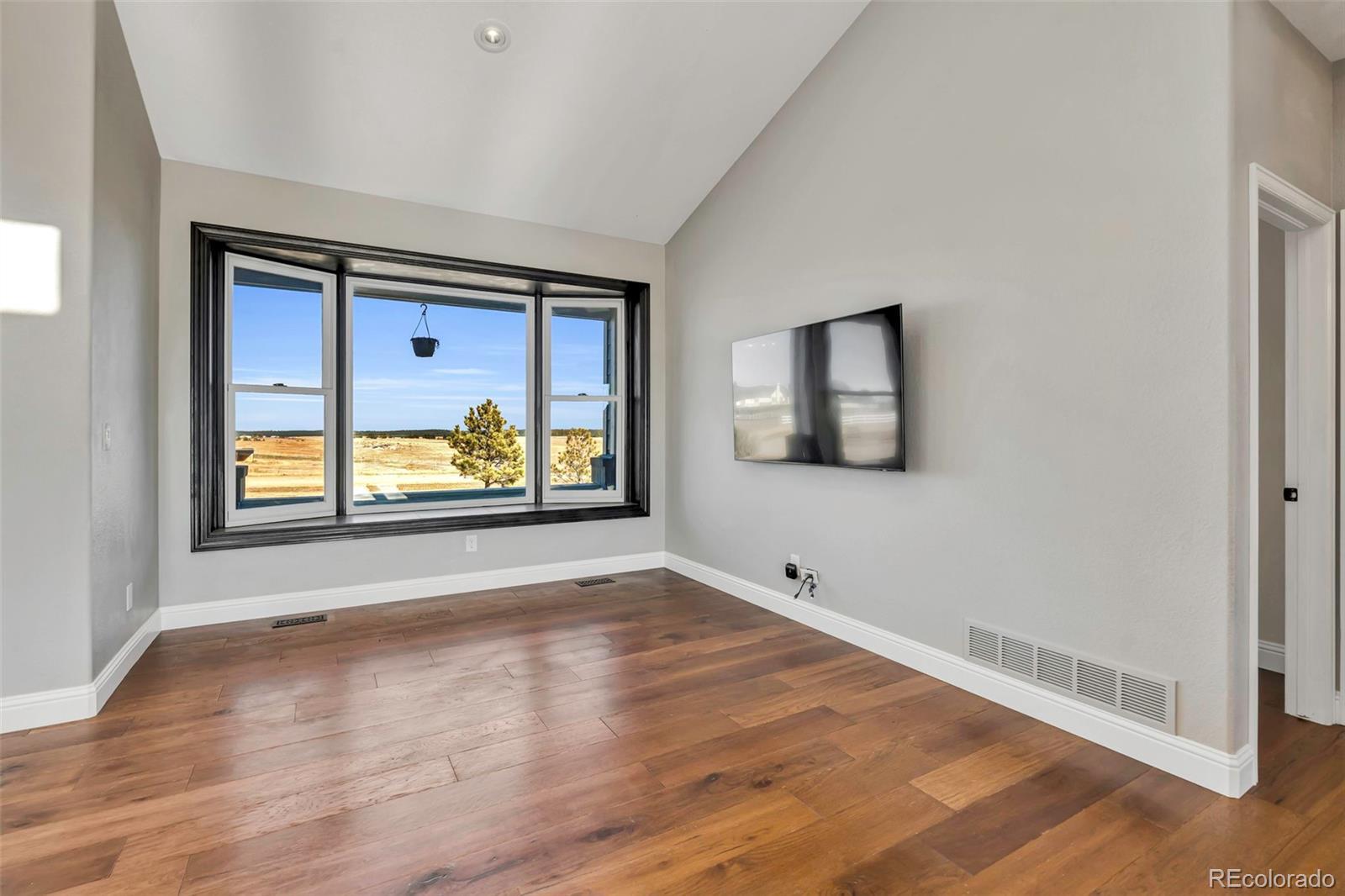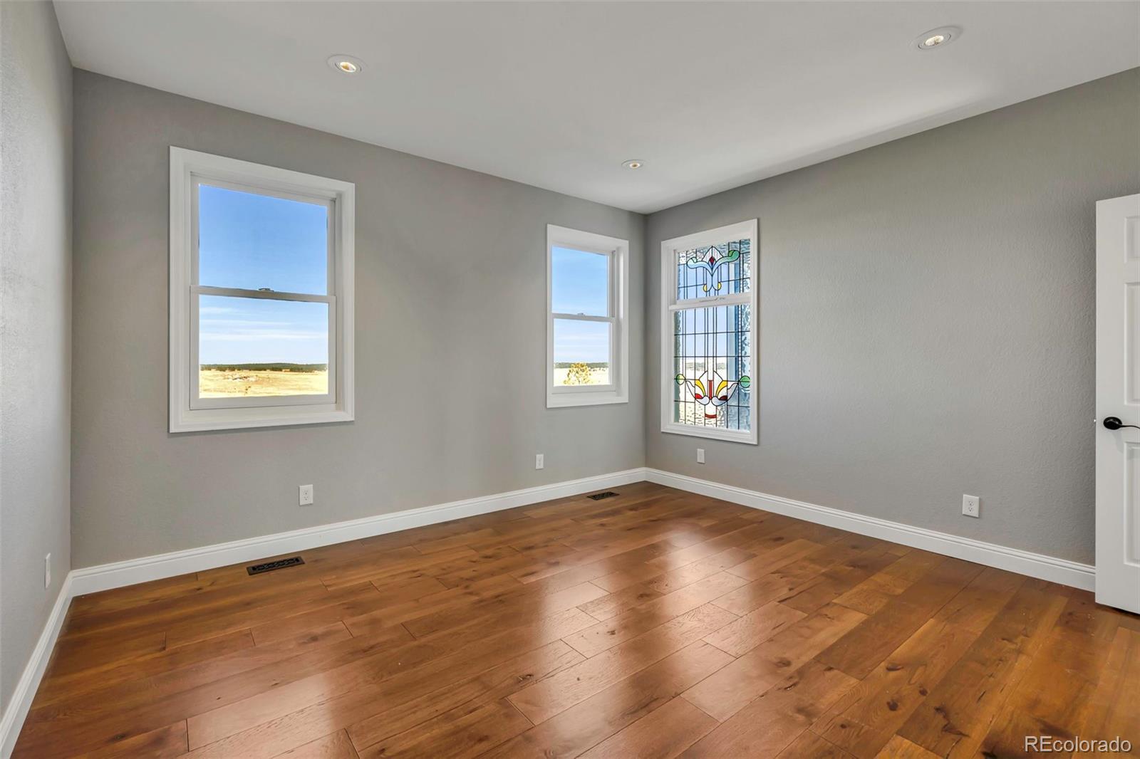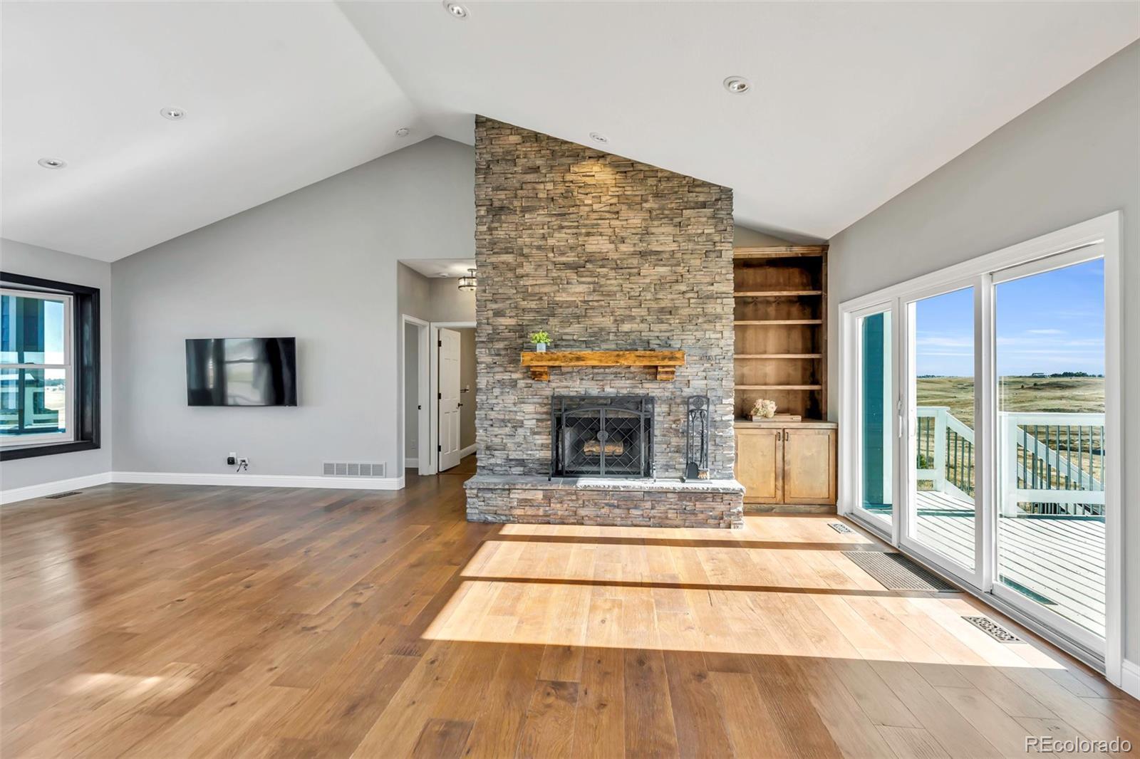 Beautiful ranch style home on 35 acres for sale in Elizabeth, Colorado! Bring your animals and toys ... this awesome property can handle both. Huge Front Range and Pikes Peak views. Just 10 minutes to the Town of Elizabeth. AG zoning provides for lower property taxes. 20x20 shop/garage can be converted into a barn, 20x12 loafing shed with 2 stalls. There is a large flat land area that could accommodate additional barns or arena. There is also a chicken coop, fenced area for dogs, two seasonal ponds, garden bed, playset and great outdoor livings spaces on the front covered patio and back deck! Inside the home has been beautifully updated; hardwood flooring throughout, stack stone fireplace, kitchen has stainless steel appliances, granite countertops and large island, 5 piece master bathroom with soaking tub, dual sinks and vanity, vaulted ceilings and skylights make this home light & bright! The finished walk-out basement has a custom wet bar area, media room with a beautifully detailed coffered ceiling, bonus room, 2 bedrooms, bathroom and laundry room. The list goes on, this one is a must see!