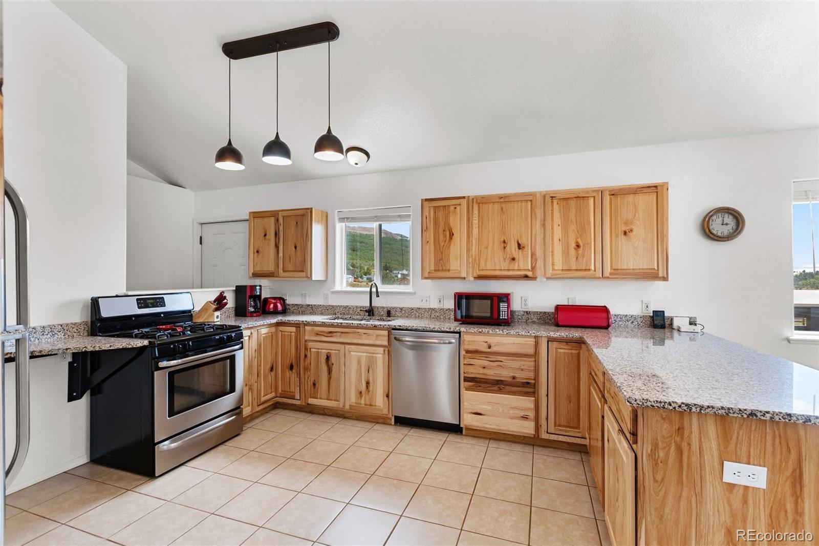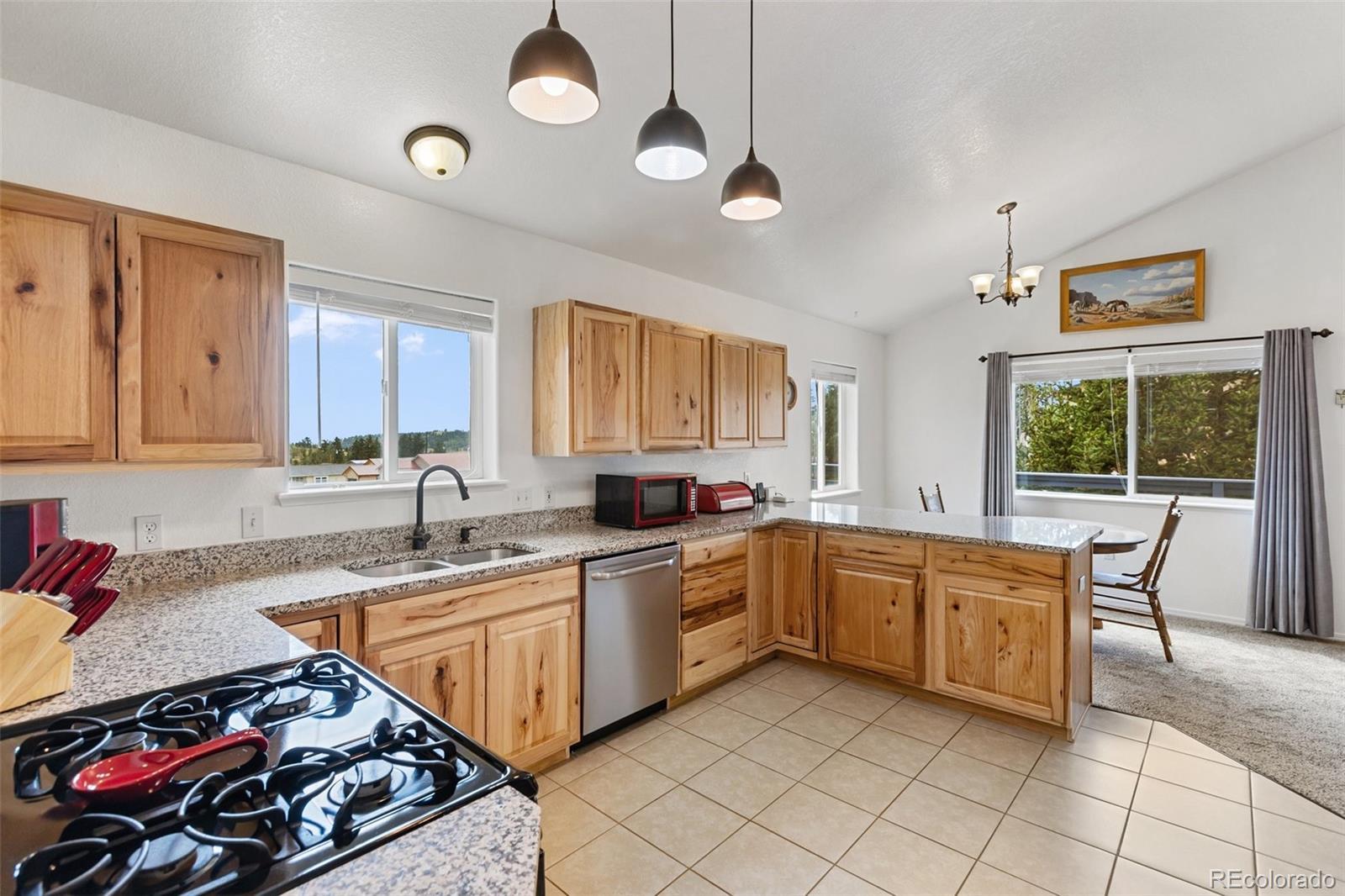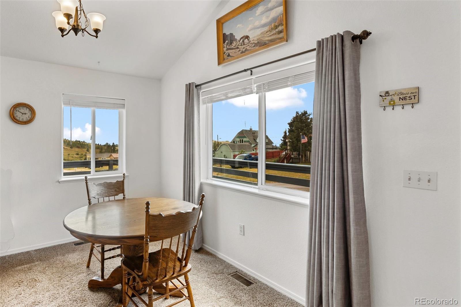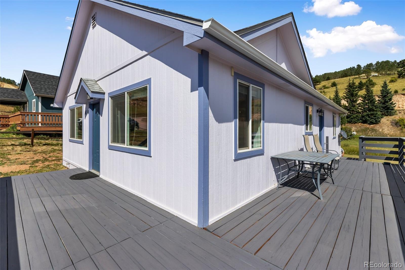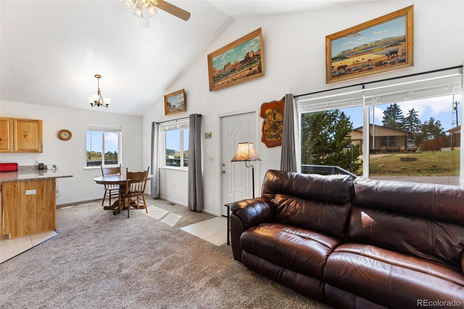 Turnkey mountain retreat or vacation rental! This updated ranch-style home sits on a spacious .359-acre level lot and is just a short walk to historic downtown Cripple Creek. With only two steps up to the deck, you’ll enjoy true main-level living in a home that blends comfort, convenience, and investment potential. Recent updates include a new water heater (2025), roof and gutters replaced two years ago, and fresh exterior paint at the same time. The large deck was also recently repainted, creating a welcoming outdoor space to enjoy the fresh mountain air. Inside, soaring 9+ ft vaulted ceilings enhance the open and airy feel throughout. The oversized lot provides privacy and room to expand, while RV parking with electric hook-ups adds versatility for guests and owners alike. With the right offer, much of the furniture may stay, making this a turnkey opportunity for those looking to start a vacation rental. Its walk-to-town location near casinos, dining, shopping, and attractions offers excellent appeal for short-term rental guests while also serving as a perfect full-time residence or personal getaway. Well-maintained and move-in ready, this home offers a rare chance to own a piece of Cripple Creek with lifestyle and income potential combined.