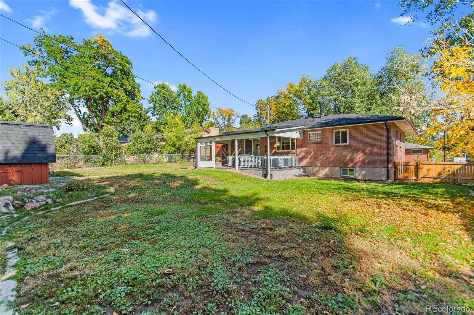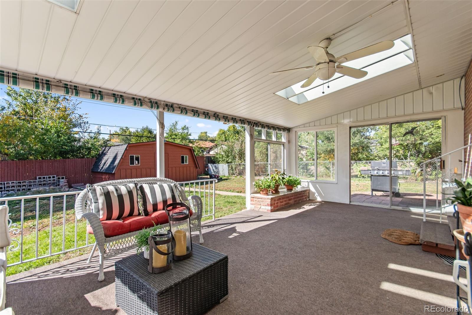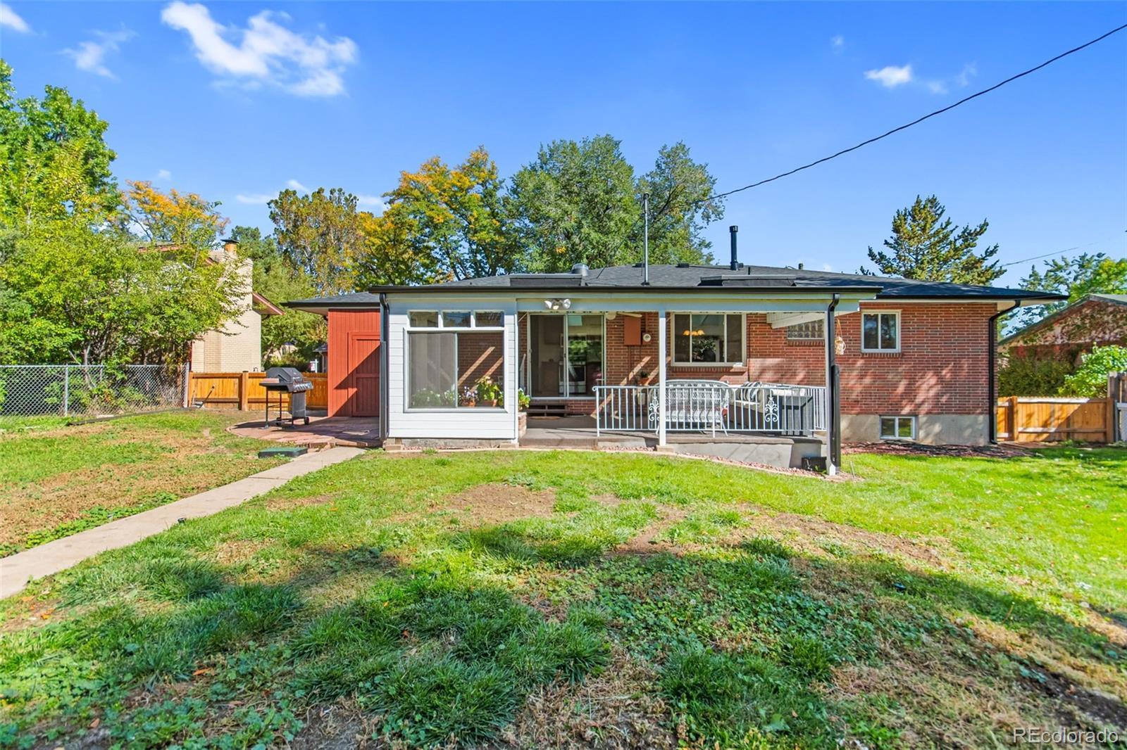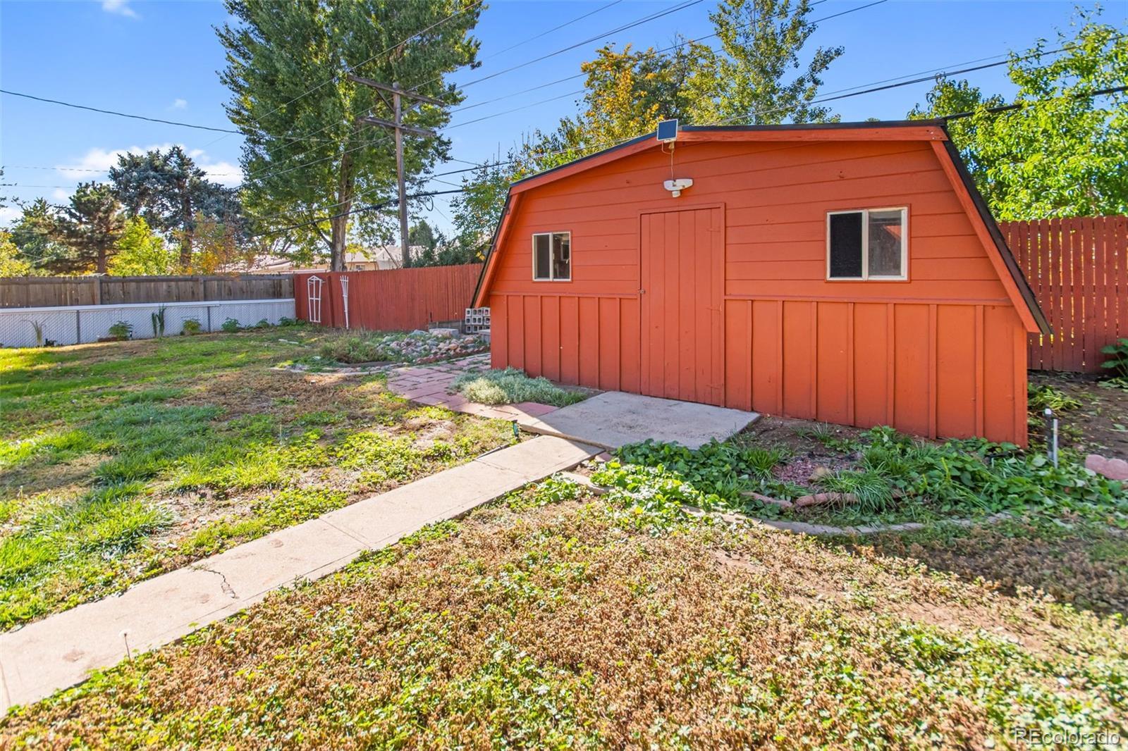 Harvey Park South ranch • Built by Hutchinson Homes • Upgrades Oct 2025 Located in Denver’s Harvey Park South neighborhood, this single-level Hutchinson Homes ranch combines mid-century character with modern updates. The home offers approximately 2,294 sq ft of finished space, including three main-level bedrooms and a lower-level guest suite. Hardwood floors span the open kitchen-to-dining layout, creating easy flow for everyday living. The living Room is filled with natural light from the large picture window. The finished basement adds a spacious family room, a fourth conforming bedroom, built-ins, and a versatile bonus area. Recent upgrades completed October 2025 include a new roof, gutters, and patio skylights. Outdoor living continues in the fully fenced backyard featuring a covered patio and a large 17' × 12' shed—ideal for storage, a hobby or craft studio, home gym, or personal office. A one-car attached garage and newly poured driveway provide ample off-street and RV parking. Nearby anchors add convenience and lifestyle appeal: Bravo Caffee (˜ 1.1 mi), Doghouse Tavern (˜ 1.0 mi), Safeway on W Jewell Ave (˜ 1.3 mi), and Sanderson Gulch Park & Trail (˜ 1.9 mi). Quick access to Highway 285 (˜ 1.7 mi) connects to C-470 and the foothills. Includes floor-plan viewer in listing. Factual mid-century design, fenced yard, hardwood floors, and recent upgrades make this Harvey Park South home a standout in southwest Denver.