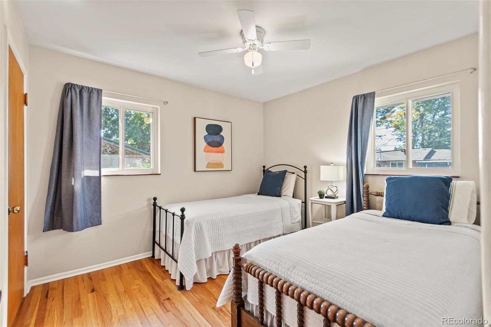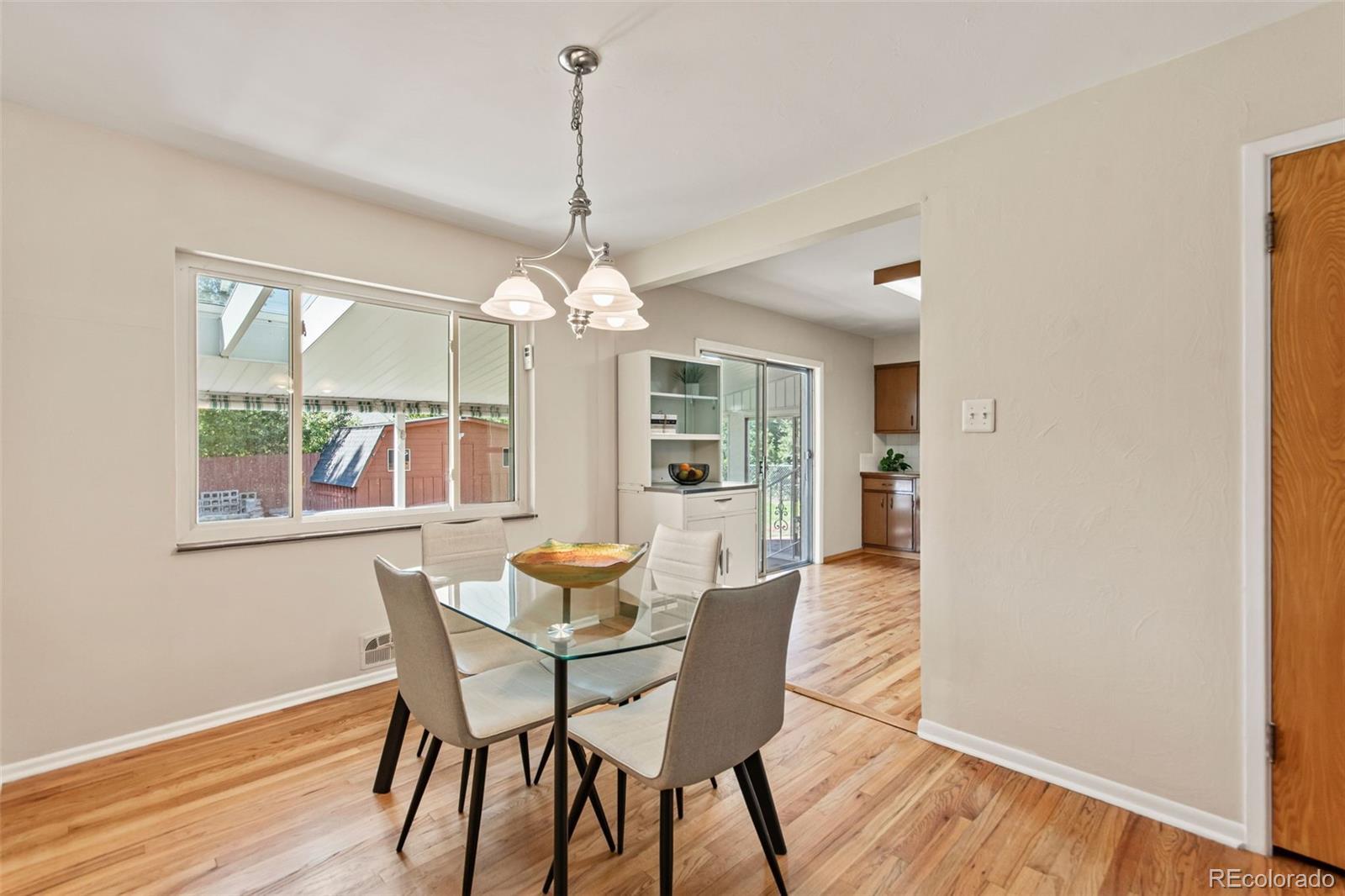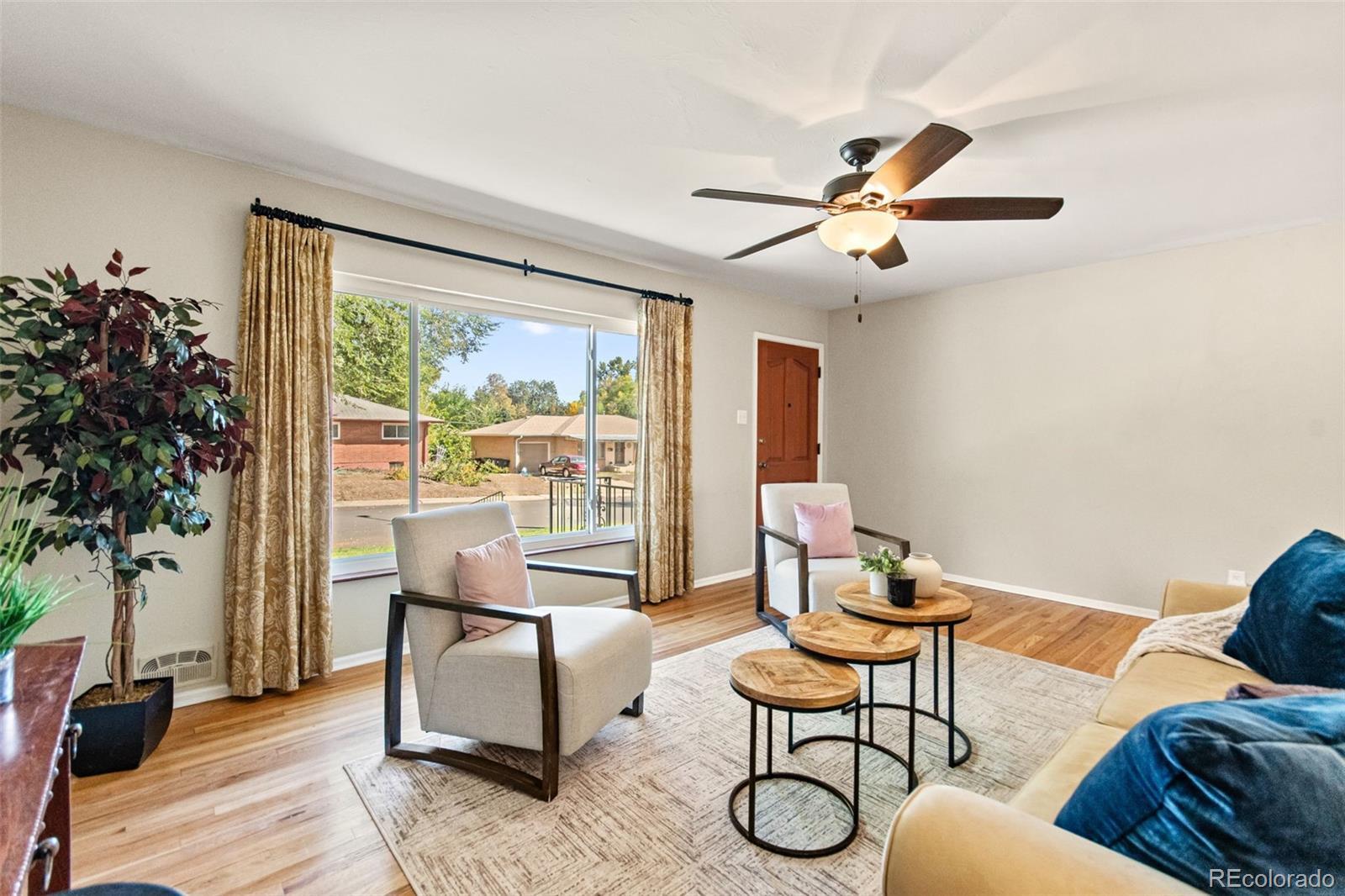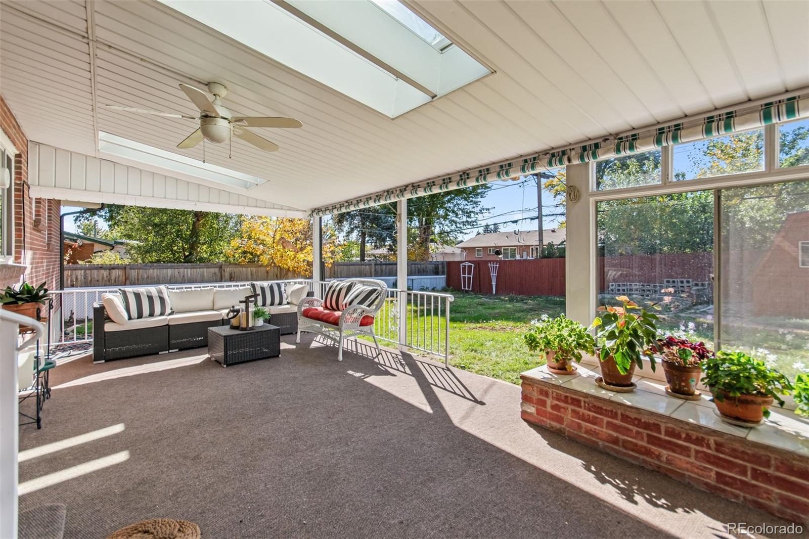 Harvey Park South ranch • Built by Hutchinson Homes • Upgrades Oct 2025 Located in Denver’s Harvey Park South neighborhood, this single-level Hutchinson Homes ranch combines mid-century character with modern updates. The home offers approximately 2,294 sq ft of finished space, including three main-level bedrooms and a lower-level guest suite. Hardwood floors span the open kitchen-to-dining layout, creating easy flow for everyday living. The living Room is filled with natural light from the large picture window. The finished basement adds a spacious family room, a fourth conforming bedroom, built-ins, and a versatile bonus area. Recent upgrades completed October 2025 include a new roof, gutters, and patio skylights. Outdoor living continues in the fully fenced backyard featuring a covered patio and a large 17' × 12' shed—ideal for storage, a hobby or craft studio, home gym, or personal office. A one-car attached garage and newly poured driveway provide ample off-street and RV parking. Nearby anchors add convenience and lifestyle appeal: Bravo Caffee (˜ 1.1 mi), Doghouse Tavern (˜ 1.0 mi), Safeway on W Jewell Ave (˜ 1.3 mi), and Sanderson Gulch Park & Trail (˜ 1.9 mi). Quick access to Highway 285 (˜ 1.7 mi) connects to C-470 and the foothills. Includes floor-plan viewer in listing. Factual mid-century design, fenced yard, hardwood floors, and recent upgrades make this Harvey Park South home a standout in southwest Denver.