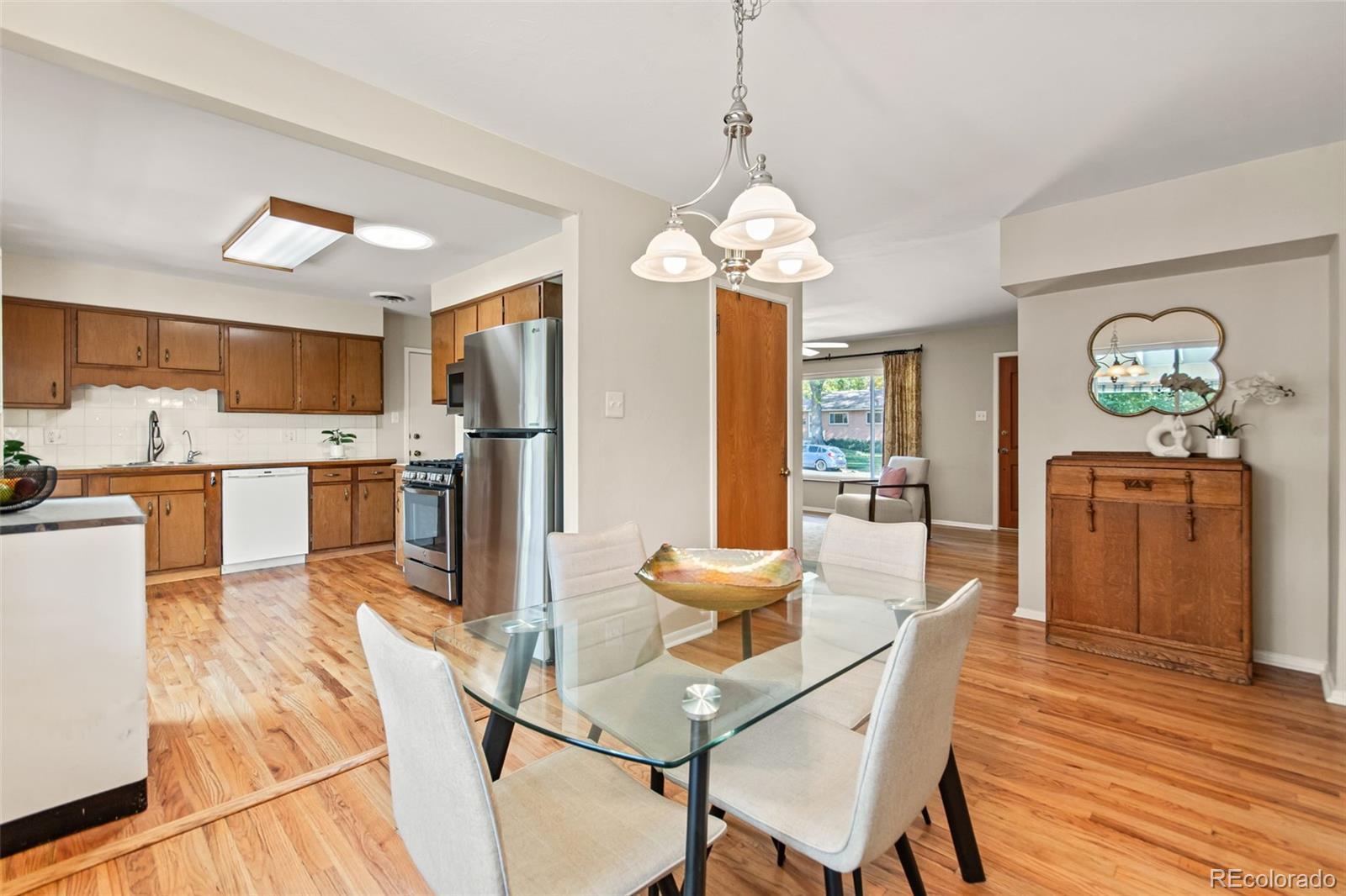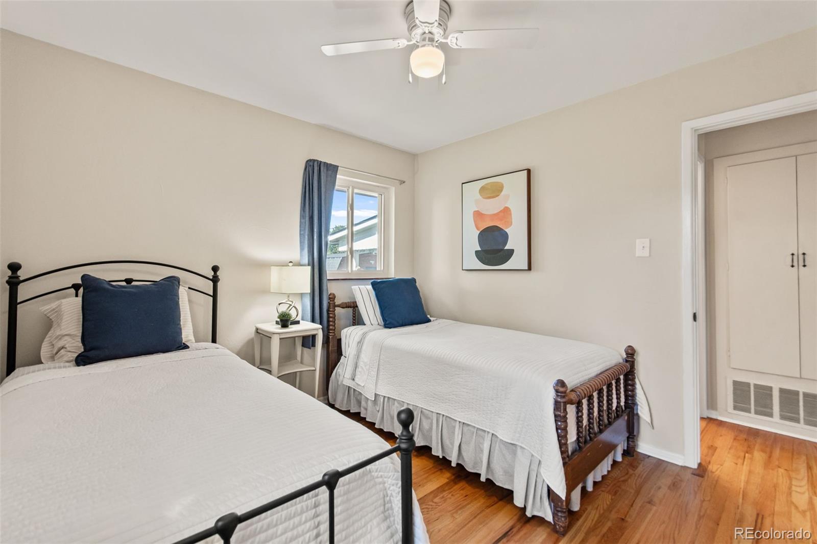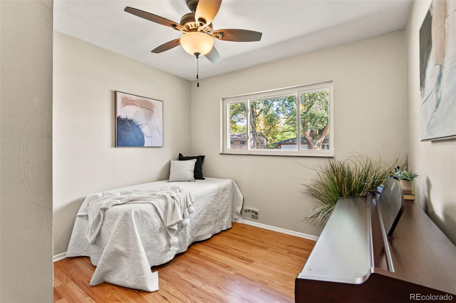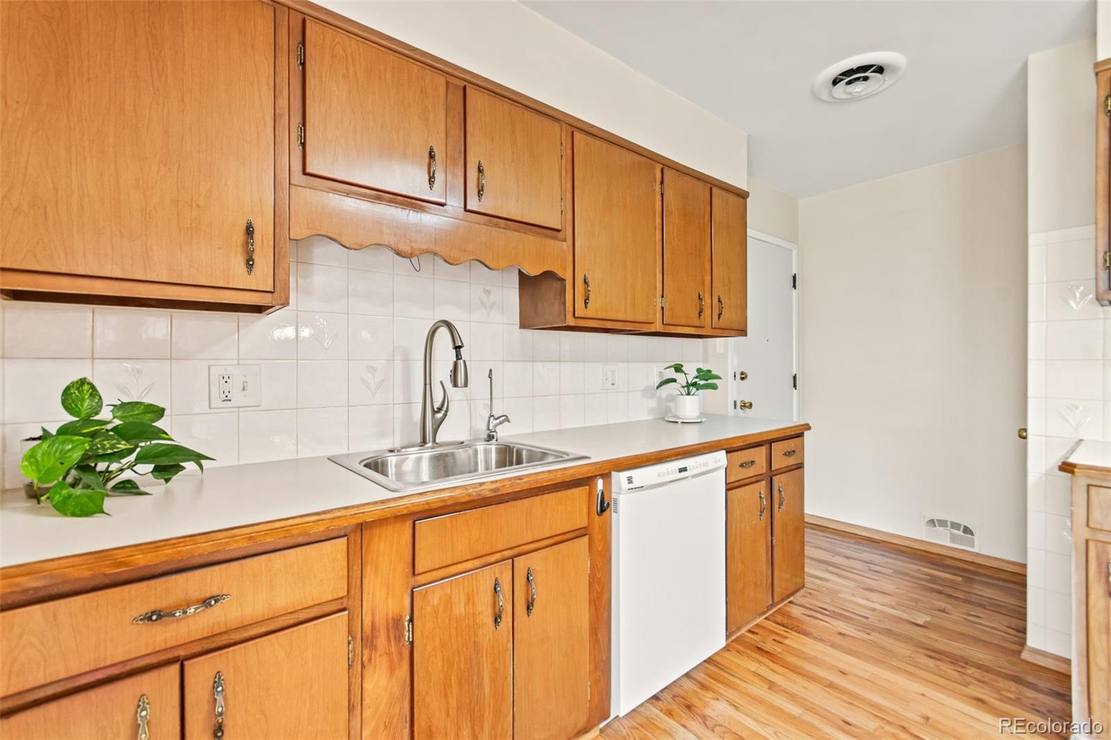 Harvey Park South ranch • Built by Hutchinson Homes • Upgrades Oct 2025 Located in Denver’s Harvey Park South neighborhood, this single-level Hutchinson Homes ranch combines mid-century character with modern updates. The home offers approximately 2,294 sq ft of finished space, including three main-level bedrooms and a lower-level guest suite. Hardwood floors span the open kitchen-to-dining layout, creating easy flow for everyday living. The living Room is filled with natural light from the large picture window. The finished basement adds a spacious family room, a fourth conforming bedroom, built-ins, and a versatile bonus area. Recent upgrades completed October 2025 include a new roof, gutters, and patio skylights. Outdoor living continues in the fully fenced backyard featuring a covered patio and a large 17' × 12' shed—ideal for storage, a hobby or craft studio, home gym, or personal office. A one-car attached garage and newly poured driveway provide ample off-street and RV parking. Nearby anchors add convenience and lifestyle appeal: Bravo Caffee (˜ 1.1 mi), Doghouse Tavern (˜ 1.0 mi), Safeway on W Jewell Ave (˜ 1.3 mi), and Sanderson Gulch Park & Trail (˜ 1.9 mi). Quick access to Highway 285 (˜ 1.7 mi) connects to C-470 and the foothills. Includes floor-plan viewer in listing. Factual mid-century design, fenced yard, hardwood floors, and recent upgrades make this Harvey Park South home a standout in southwest Denver.