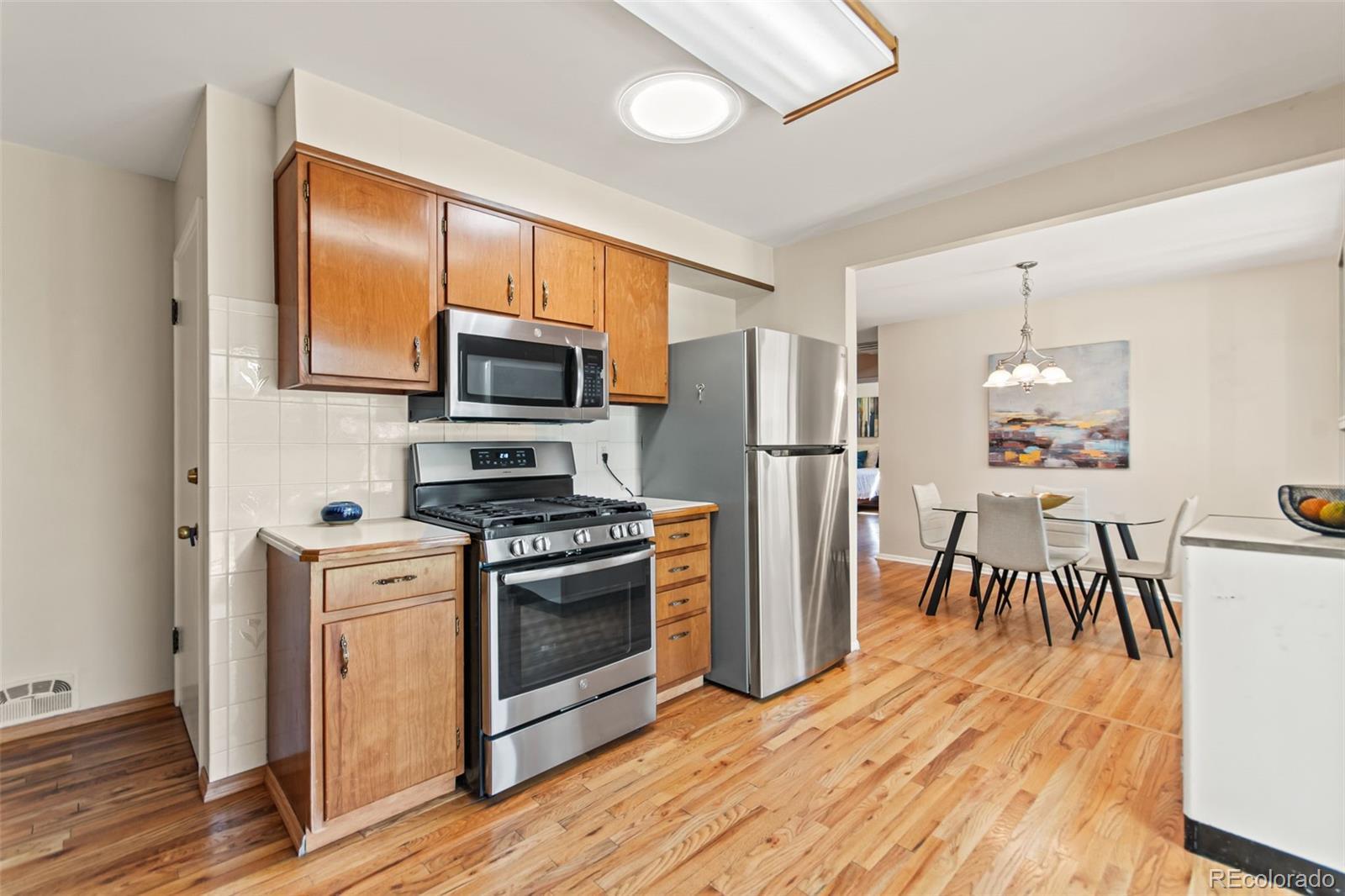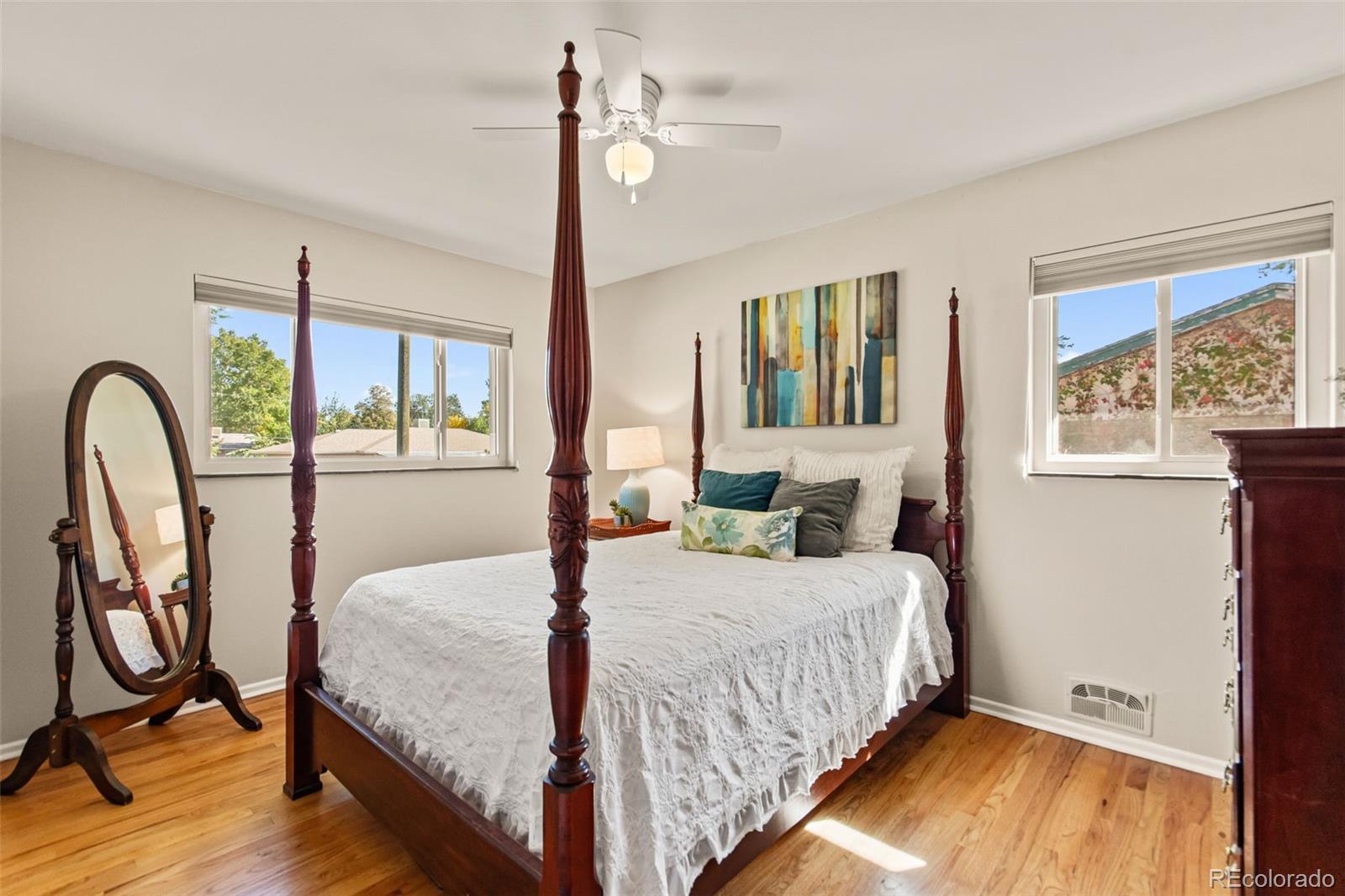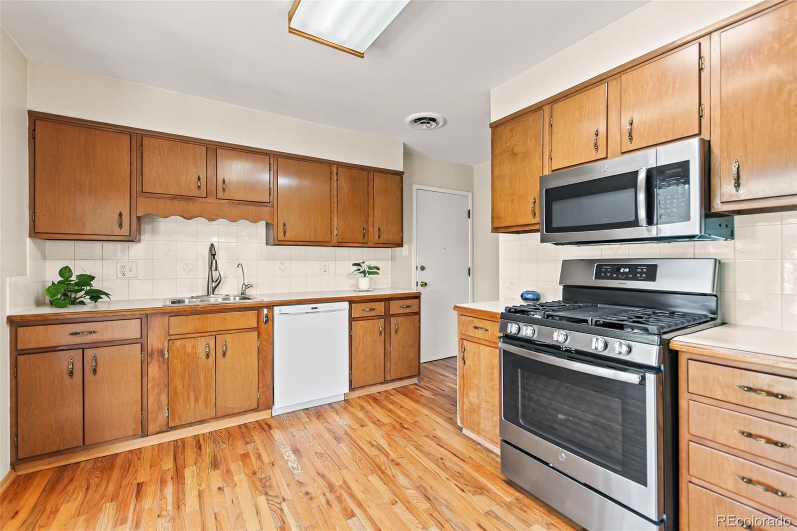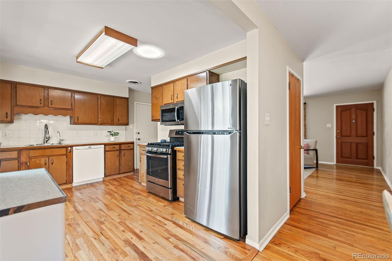 Harvey Park South ranch • Built by Hutchinson Homes • Upgrades Oct 2025 Located in Denver’s Harvey Park South neighborhood, this single-level Hutchinson Homes ranch combines mid-century character with modern updates. The home offers approximately 2,294 sq ft of finished space, including three main-level bedrooms and a lower-level guest suite. Hardwood floors span the open kitchen-to-dining layout, creating easy flow for everyday living. The living Room is filled with natural light from the large picture window. The finished basement adds a spacious family room, a fourth conforming bedroom, built-ins, and a versatile bonus area. Recent upgrades completed October 2025 include a new roof, gutters, and patio skylights. Outdoor living continues in the fully fenced backyard featuring a covered patio and a large 17' × 12' shed—ideal for storage, a hobby or craft studio, home gym, or personal office. A one-car attached garage and newly poured driveway provide ample off-street and RV parking. Nearby anchors add convenience and lifestyle appeal: Bravo Caffee (˜ 1.1 mi), Doghouse Tavern (˜ 1.0 mi), Safeway on W Jewell Ave (˜ 1.3 mi), and Sanderson Gulch Park & Trail (˜ 1.9 mi). Quick access to Highway 285 (˜ 1.7 mi) connects to C-470 and the foothills. Includes floor-plan viewer in listing. Factual mid-century design, fenced yard, hardwood floors, and recent upgrades make this Harvey Park South home a standout in southwest Denver.