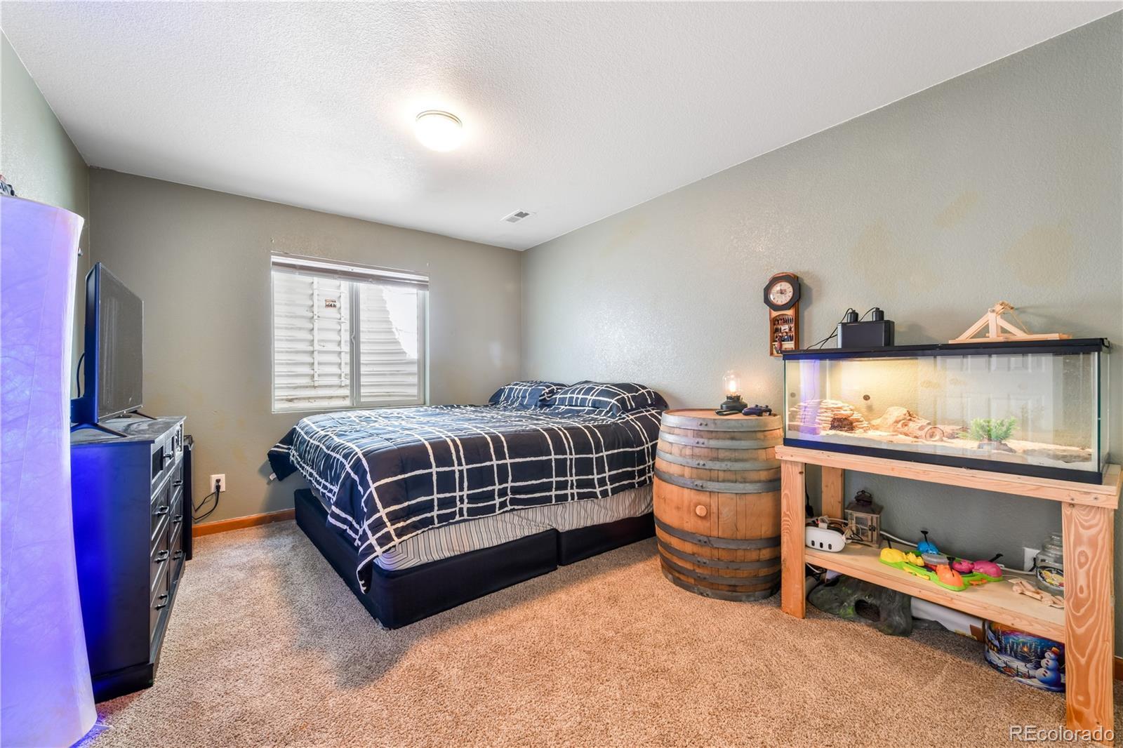 Welcome to this spacious 6 bedroom, 4 bath home in The Glen at Widefield offering over 3,000 square feet of thoughtfully designed living space and stunning Pikes Peak views. Perfectly positioned on a level 7,342 square foot lot with mountain views, this two story home has it all. The main level features an open and inviting layout with both formal and casual living spaces. A bright kitchen offers stone countertops, an island, eat-in dining, and walk-out access to the wood deck, making indoor-outdoor living seamless. The cozy family room with gas fireplace creates the perfect gathering space, while a separate living and dining area provides additional flexibility for entertaining. Upstairs you will find four generously sized bedrooms, including a spacious primary suite with an adjoining five-piece bath, double vanity, soaking tub, and separate shower. The finished basement adds incredible versatility with two additional bedrooms, a three-quarter bath, and a large secondary family room. Additional highlights include a three-car garage, central air, main level laundry, fenced back yard, and a storage shed. Convenient access to Powers and Mesa Ridge, this home offers easy commuting while enjoying established neighborhood charm.