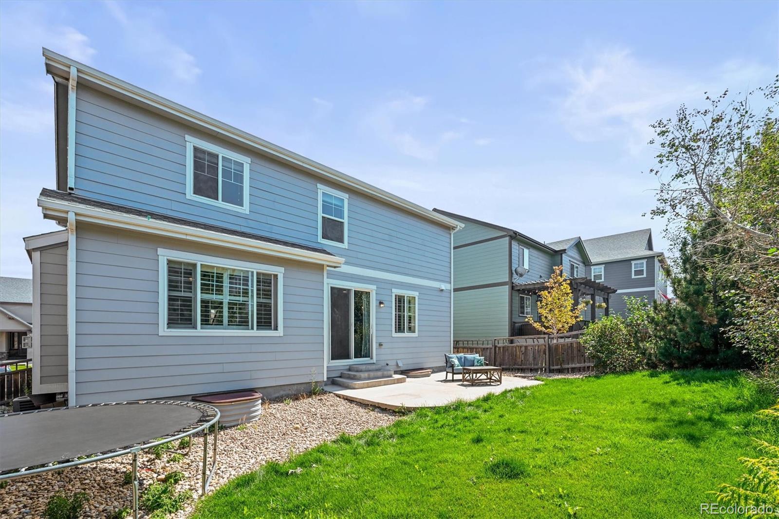 New Price! You will love this 5 bedroom home in The Meadows with 4 bedrooms up and a finished basement with a 5th bedroom! Plantation shutters! The main floor has extended hardwood floors, a study with French doors, great room with a gas fireplace, large kitchen and eating area. Gourmet kitchen has 42" cabinets, slab granite counters, stainless steel appliances, gas cooktop, double ovens, dining area. The backyard has a large concrete patio and professionally landscaped yard. Upstairs features the primary bedroom, five-piece primary bathroom with a large garden tub, shower, upgraded tile, dual vanity, walk-in closet. 3 additional upstairs bedrooms, full bathroom and laundry room with cabinets. Finished basement with large rec room, full bathroom, guest bedroom, and lots of storage. Stay cool with central air conditioning! Convenient location close to Clear Sky Elementary and Bison Park. Access to The Grange Community Pool, Taft Pool, parks and trails. Close to I-25, Movie Theatre, Aspen View Academy, Castle Rock Outlets, Promenade at Castle Rock, Phillip S. Miller Park, The Castle Rock Adventist Hospital. Make this your next home!