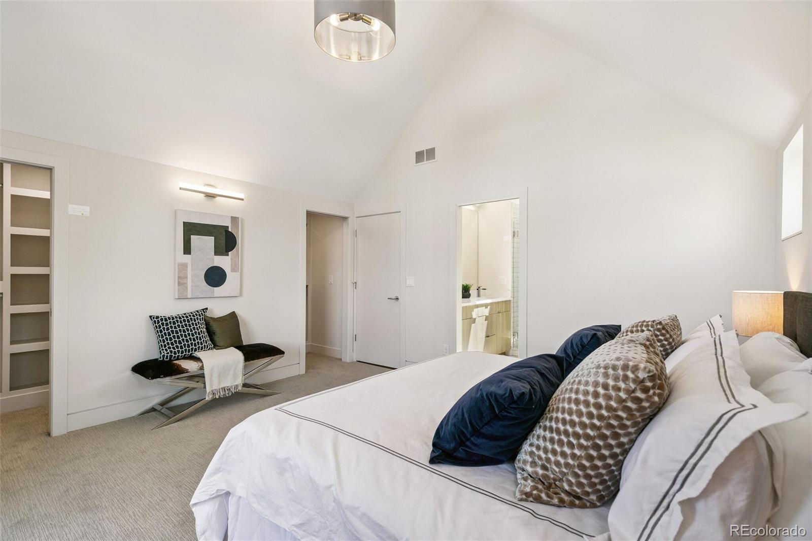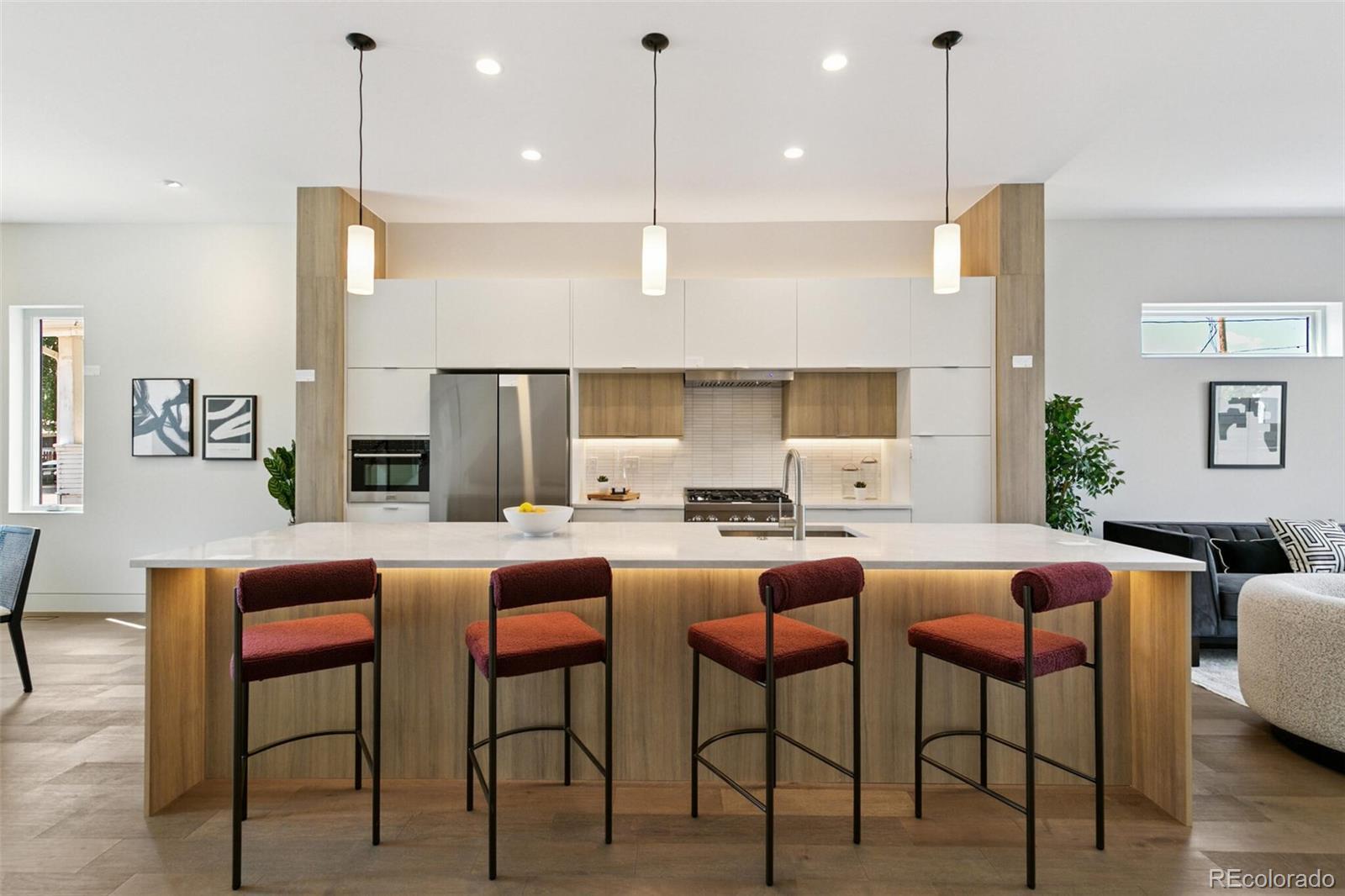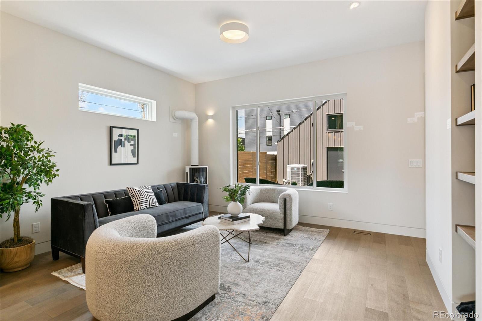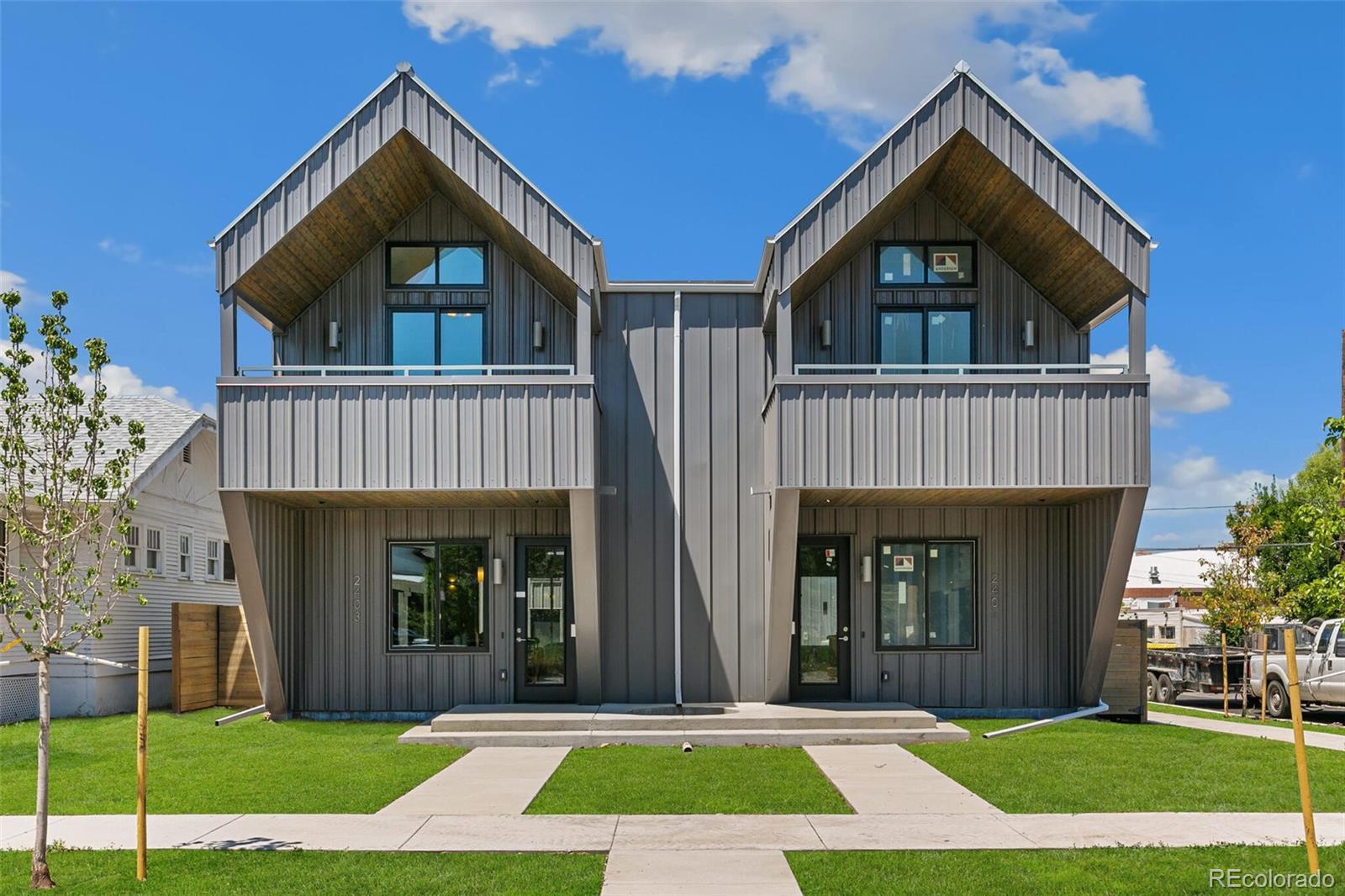 Incredible SOBO New Build with a Mid-Mod/Scandinavian vibe! Super artsy, creative design! FULL of cool, unique, gorgeous custom features! HALF-DUPLEX. Almost 500 Extra Square Feet in covered patios! ENERGY EFFICIENT! OWNED SOLAR PANELS! Not leased! If you want to live where you mega-save on utilities, in an amazingly thought-out and beautifully designed new build, then this gorgeous home is for you! Almost completely maintenance free exterior! All metal vertical siding! 97% Efficient Carrier Furnace, Owned Smart Sandbox Solar system, Hybrid Heat Pump Water Heater, Highest efficient Carrier A/C unit (amazingly quiet!), Andersen Fibrex Windows, LED lighting, Highest Insulation - R60 roof and R30 walls! Major attention to detail and artistry you rarely find in new construction: Custom GLASS Stair Wall with Handmade Maple block railings matching the gorgeous steps!! Covered front & rear patios and upper decks all have Custom tongue and groove Cedar Ceilings with Internal Trex drainage system: an extra 500 sqft in exterior decks! TALL Ceilings -10' main floor, 14' feet vaulted upper, and 9' Lower level! Stellar kitchen that any chef will love! 12' island with higher-end quartz, bookended cabinetry, Samsung twin cooling fridge with beverage center, dual fuel gas range, above/under LED lighting! Open, bright main floor plan flows from the front to the rear, with no interior soffits!! Cozy Living space with gas Scandinavian fireplace, custom maple shelving, huge windows! Custom features galore: flat drywall finish, flush baseboards, handmade maple vent covers, cool dry bar, wall washer LED lighting, soft close pocket doors, window well lighting, mud room bench and shelving. Upstairs offers two large bedrooms! Skylights! Primary with walk-through closet! Dual Shower Heads! Lower level has a great living space, huge bedroom and bath! Wet Bar! Close to all the fun action on S. Broadway! No HOA. Party Wall agreement with north unit. Builder Warranty! Walk to Light Rail!