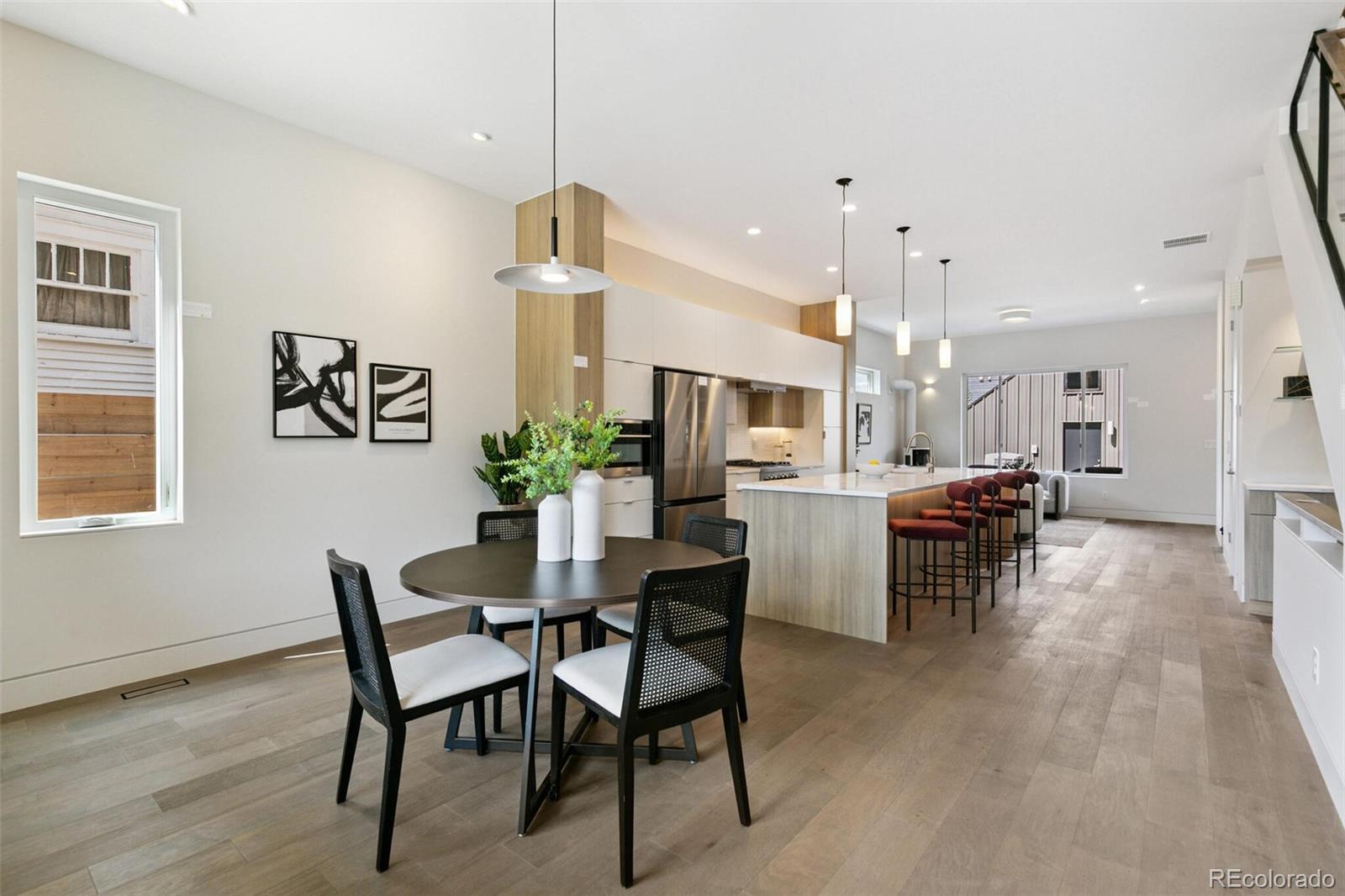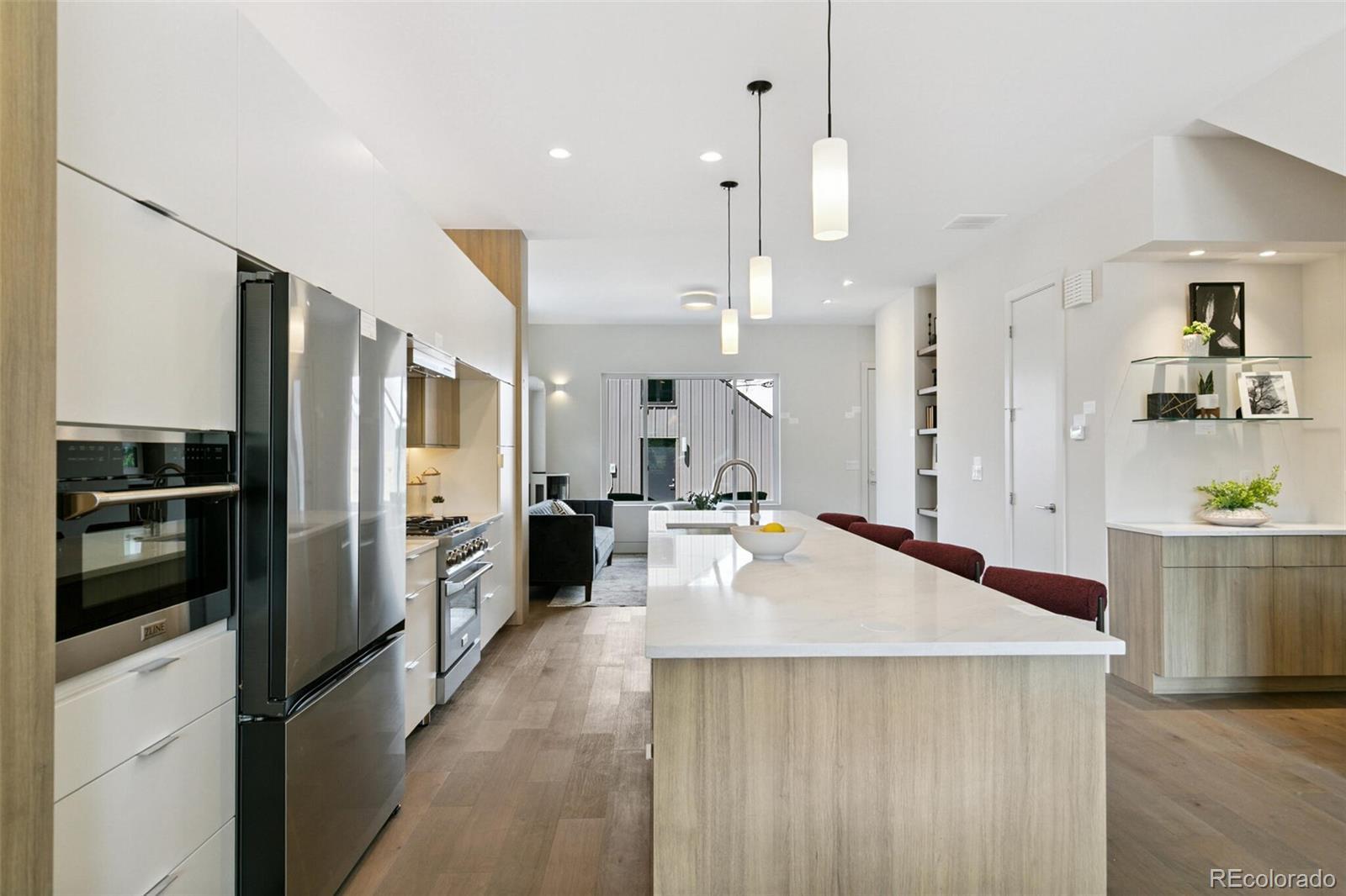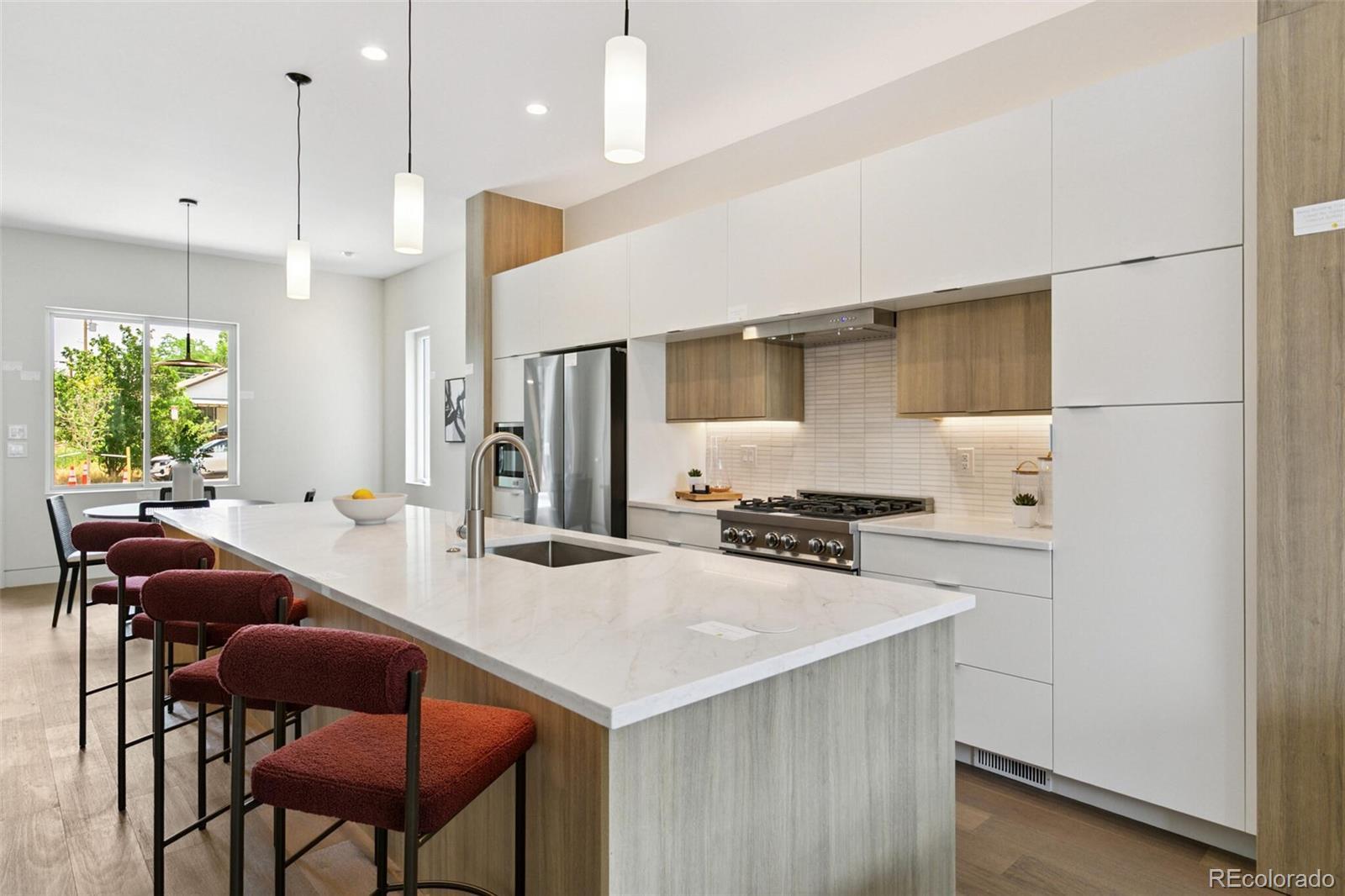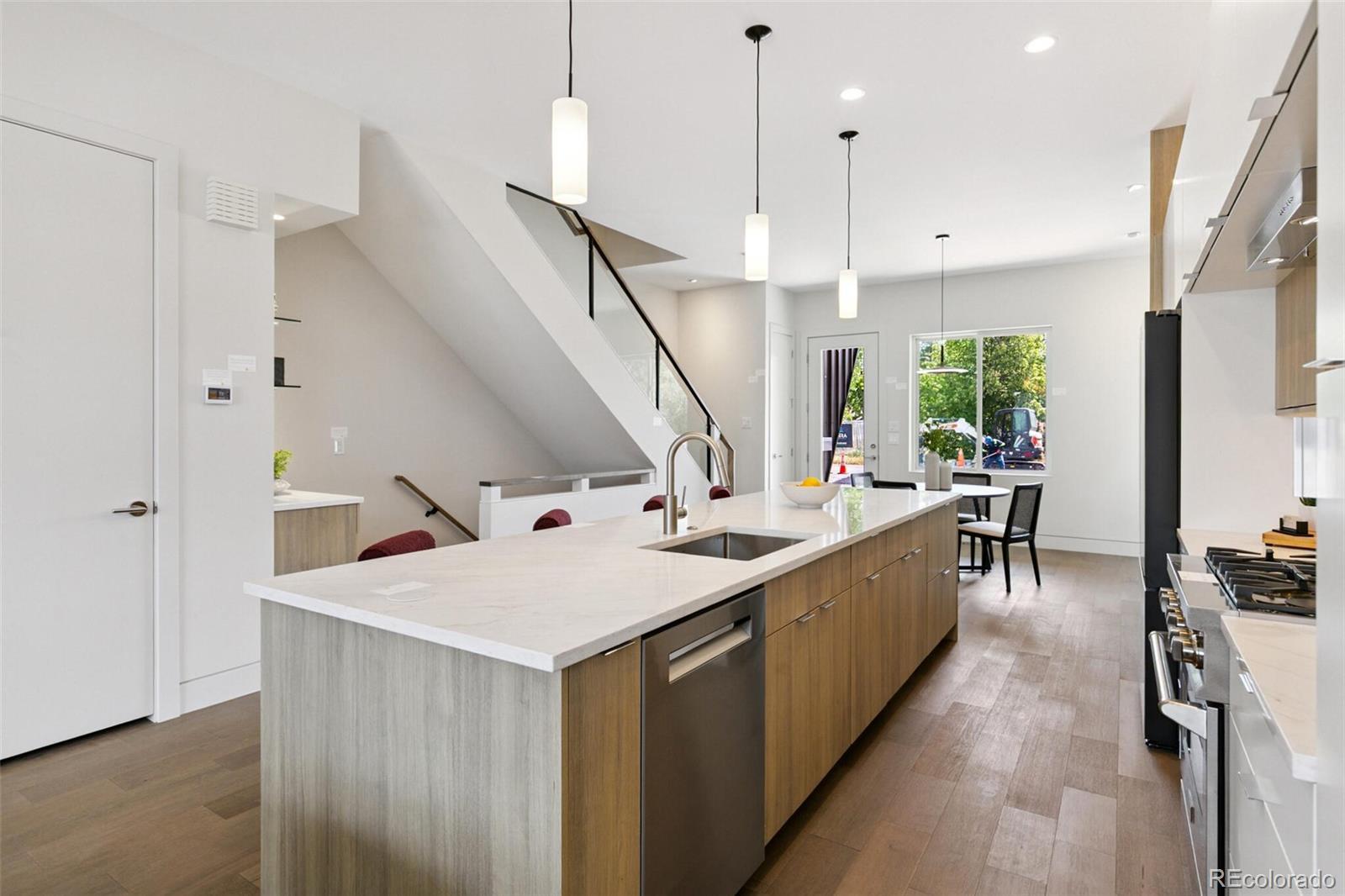 Incredible SOBO New Build with a Mid-Mod/Scandinavian vibe! Super artsy, creative design! FULL of cool, unique, gorgeous custom features! HALF-DUPLEX. Almost 500 Extra Square Feet in covered patios! ENERGY EFFICIENT! OWNED SOLAR PANELS! Not leased! If you want to live where you mega-save on utilities, in an amazingly thought-out and beautifully designed new build, then this gorgeous home is for you! Almost completely maintenance free exterior! All metal vertical siding! 97% Efficient Carrier Furnace, Owned Smart Sandbox Solar system, Hybrid Heat Pump Water Heater, Highest efficient Carrier A/C unit (amazingly quiet!), Andersen Fibrex Windows, LED lighting, Highest Insulation - R60 roof and R30 walls! Major attention to detail and artistry you rarely find in new construction: Custom GLASS Stair Wall with Handmade Maple block railings matching the gorgeous steps!! Covered front & rear patios and upper decks all have Custom tongue and groove Cedar Ceilings with Internal Trex drainage system: an extra 500 sqft in exterior decks! TALL Ceilings -10' main floor, 14' feet vaulted upper, and 9' Lower level! Stellar kitchen that any chef will love! 12' island with higher-end quartz, bookended cabinetry, Samsung twin cooling fridge with beverage center, dual fuel gas range, above/under LED lighting! Open, bright main floor plan flows from the front to the rear, with no interior soffits!! Cozy Living space with gas Scandinavian fireplace, custom maple shelving, huge windows! Custom features galore: flat drywall finish, flush baseboards, handmade maple vent covers, cool dry bar, wall washer LED lighting, soft close pocket doors, window well lighting, mud room bench and shelving. Upstairs offers two large bedrooms! Skylights! Primary with walk-through closet! Dual Shower Heads! Lower level has a great living space, huge bedroom and bath! Wet Bar! Close to all the fun action on S. Broadway! No HOA. Party Wall agreement with north unit. Builder Warranty! Walk to Light Rail!