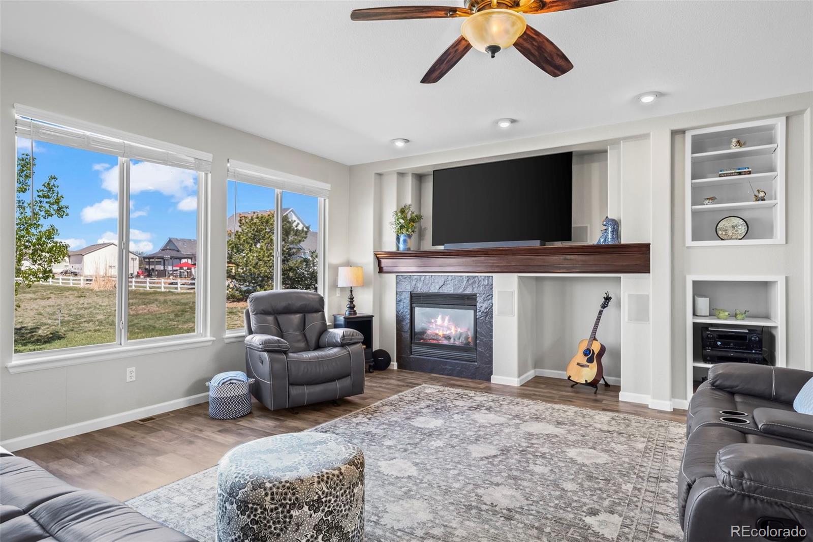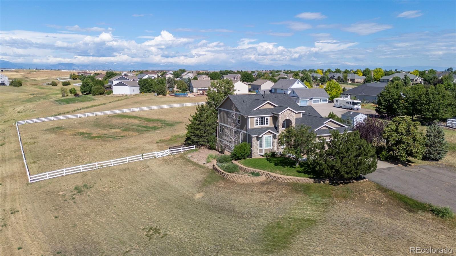 Enjoy entertaining and casual Colorado living from this stunning home with mountain views! Tucked away at the end of a private lane, this beautiful property boasts over 2 acres with sweeping views of the Front Range from the main level as well as each of the bedrooms! Elegant, vaulted entry leads into a spacious great room with gas fireplace, built-ins, and expansive windows showcasing the mountains. Luxury vinyl plank flooring grace the main level (installed in 2023). Entertaining is a delight from the generous, formal dining room with pass through to gourmet kitchen. Recently updated with new stainless steel double ovens and beautiful backsplash. This wide, open kitchen is the perfect place to start and end your day. Features: stainless steel appliances, granite countertops, 42” cabinets with crown molding, a huge center island and large pantry. Working from home is easy with a main floor study. The primary suite is also located on the main level with vaulted ceilings, generous sitting area, a 5-piece bath and walk-in closet. Upstairs you will find a generous loft, 3 bedrooms, and 2 full bathrooms. 3 car garage has epoxy floors, ceiling storage as well as wall storage. Main floor laundry includes new (2025) washer/dryer. Full garden level basement is ready for your expansion! Pool table included. Recent updates include: new roof (2024), water heater and main level a/c unit (2023), LVP flooring on main (2023), new double oven (2025), new backsplash in kitchen (2025), refreshed landscaping (2025). Hot tub with electric cover. Located conveniently with easy access to schools, shopping, dining, DIA, Denver and Boulder.
