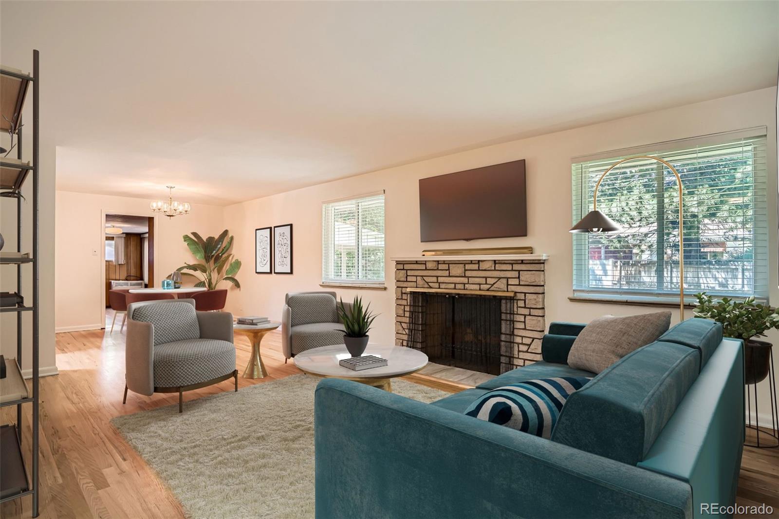New Price. Beautiful Remodeled Meadowlark Hills Ranch has had IMPECCABLE CARE with updates throughout. Home is in a great location just one block from South Lakewood Elementary. This home features gorgeous oak hardwood floors throughout the main level, new flooring in the finished basement as well as new stainless appliances throughout the home. Updated electrical service, Certified roof, large private covered patio and open dining room is ideal for entertaining while the expansive living room offers plenty of space for gatherings along with the three bedrooms including primary bedroom with private bath. Two fireplaces, 2 -car attached garage, fenced yard, with mature landscaping, storage shed and irrigation. Upgraded windows and coverings, The main level features three spacious bedrooms and two bathrooms. Downstairs, you will find a large family room with a fireplace. Well-tended backyard includes a large patio. Park and trails, and minutes from shopping, and dining, this home offers both tranquility and convenience. With easy access to 6th Ave, commuting downtown or heading to the mountains is a breeze. This is a lovely home in a prime location.
