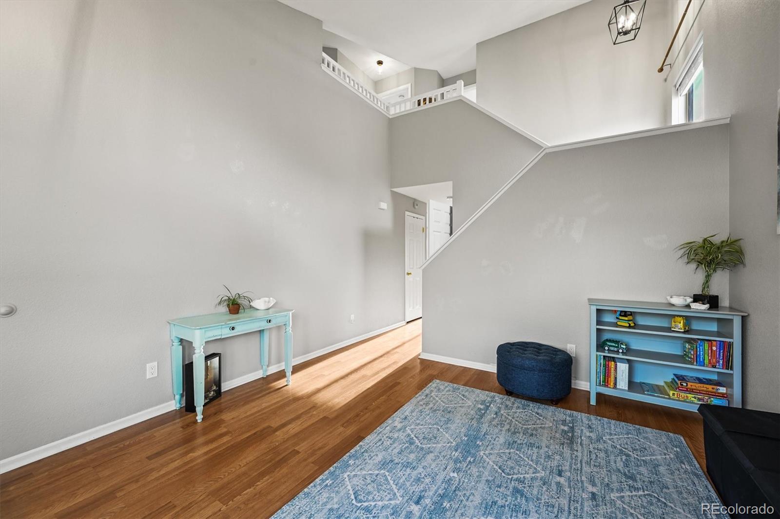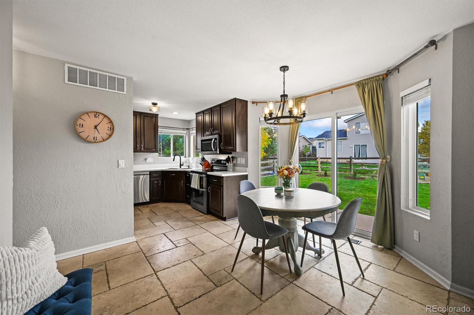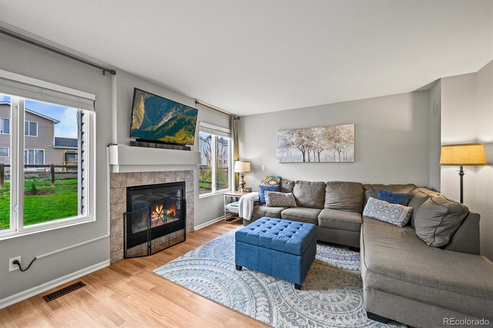 This is the ONE! 7933 Mule Deer Place — with a brand new driveway, poured this fall, newer roof replaced in 2022 — this bright and spacious 4 bedroom, 3 bathroom offers peace of mind, is move-in ready, nestled in Littleton, in the heart of the scenic Roxborough Village community! Upon entering you'll notice an open main level layout with updated floors, upgraded light fixtures, and freshly painted walls. The living room, currently a playroom, could be a formal living, sitting or dining room - whatever you desire! It also offers vaulted ceilings and lots of natural light. Continue to the cozy yet spacious family room which features a gas fireplace and opens into the dining area and kitchen -- complete with quartz countertops, updated stainless steel appliances in 2022, a main level powder room for guests, laundry room with storage closet. The sliding door off kitchen leads you to a spacious open-fenced backyard and patio for entertaining or enjoying time with family or friends. Upstairs, the primary suite offers a walk-in closet and a spacious en-suite bath with dual vanities. Three secondary bedrooms and a full hall bathroom provide plenty of room for everyone. The finished basement provides the perfect flex space with a closet and full egress window - use it as an office to work remote or create an additional space for guests. The utility room offers extra storage space or you could add a basement bathroom. Easy access to miles of nature trails. Short distance to Roxborough State Park, shopping, restaurants, Crystal Lake Park, Red Rocks in Morrison, and Douglas County schools!