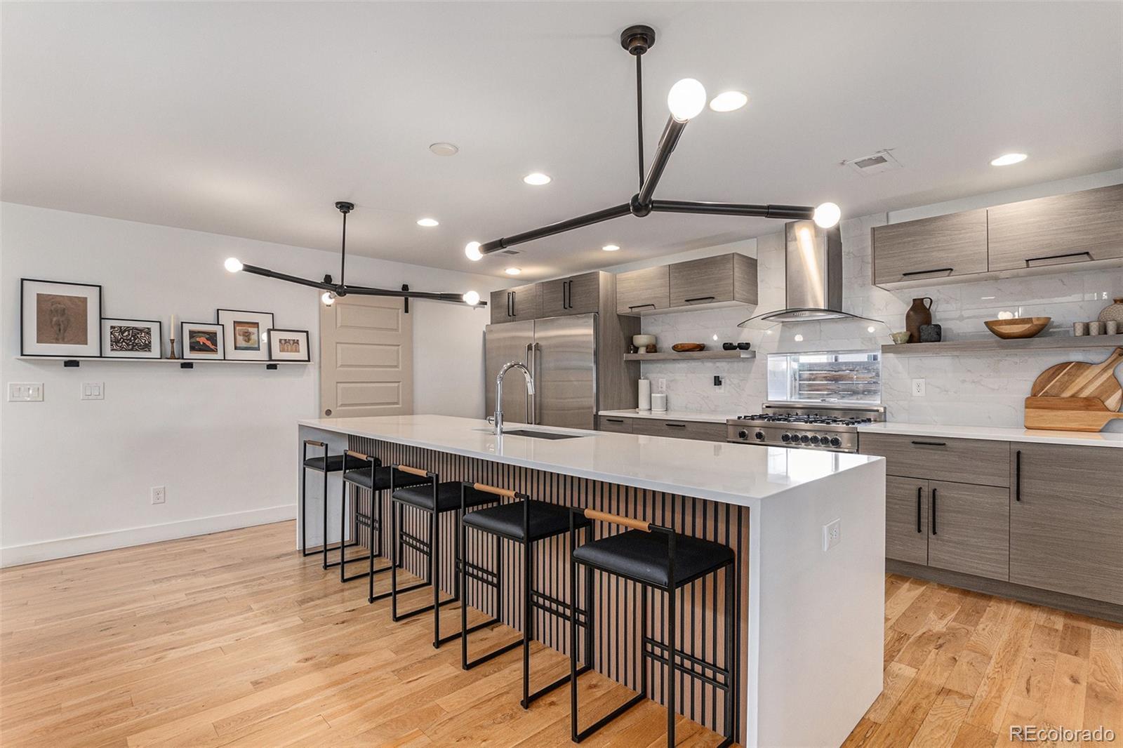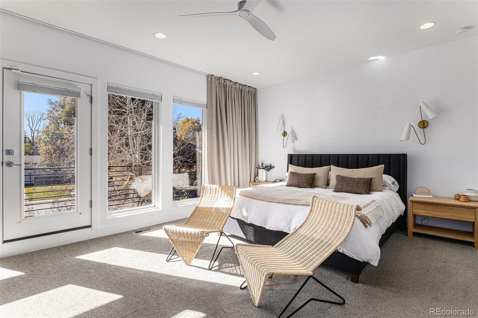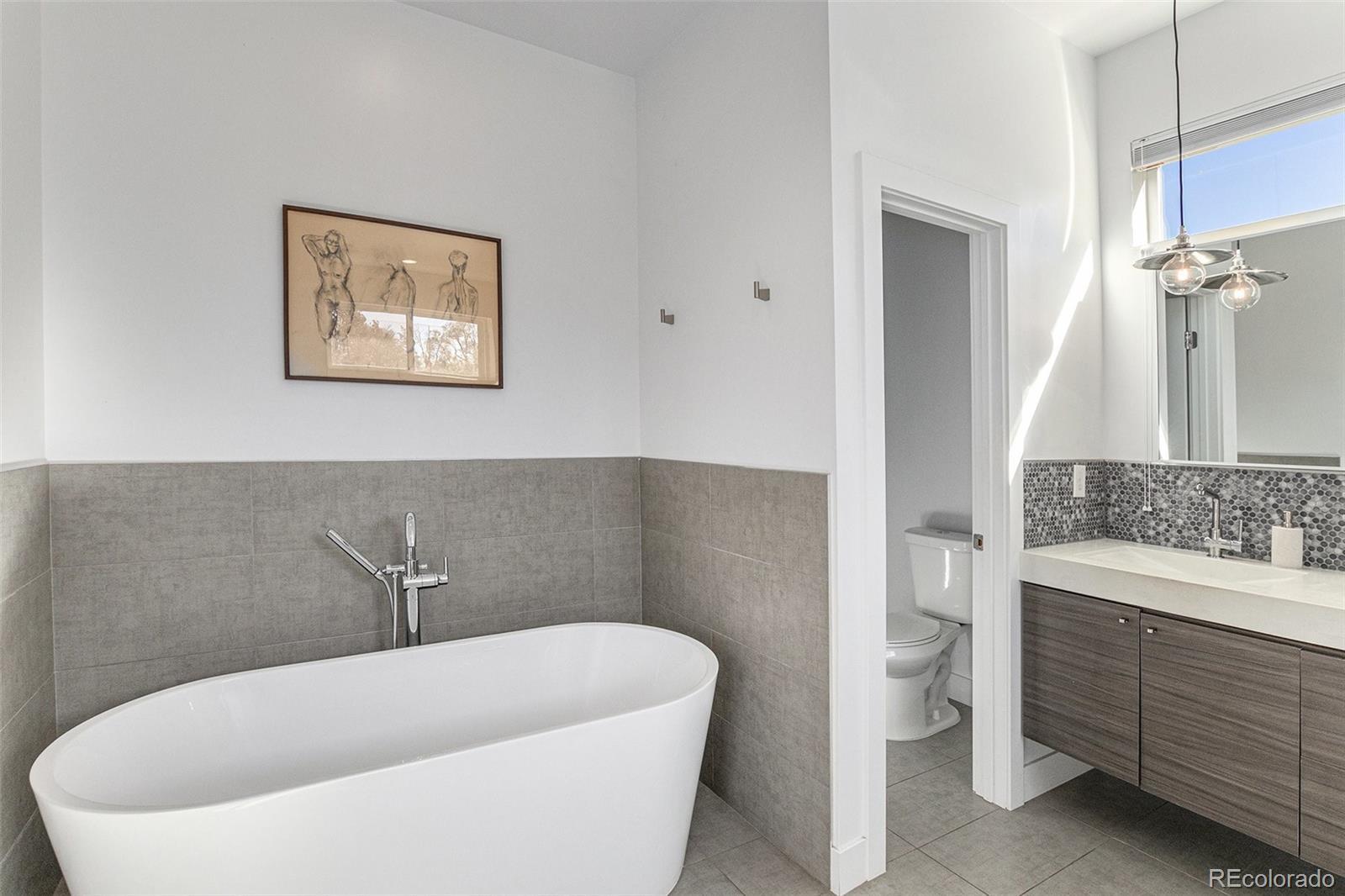Welcome to this stunning modern home in the heart of Denver’s desirable Berkeley neighborhood. Blending contemporary design with timeless comfort, this 4-bedroom, 4-bathroom residence offers over 4,300 sq ft of beautifully finished living space on a peaceful tree-lined street just blocks from Tennyson Street’s shops, restaurants, and parks. Step inside to find an open-concept main level flooded with natural light from soaring ceilings and expansive windows. The gourmet kitchen features premium stainless steel appliances, custom cabinetry, a large island with seating, and a seamless flow into the dining and living areas — perfect for entertaining. Sliding glass doors lead to a private backyard retreat with a spacious deck ideal for outdoor gatherings. Upstairs, the large primary suite is a true sanctuary, featuring a spa-like bathroom with dual vanities, a freestanding soaking tub, a glass-enclosed oversized shower with multiple shower heads, and a generous walk-in closet designed for maximum organization and style. Two additional bedrooms each offer their own en-suite bathrooms, while the finished lower level provides a flexible space for a guest suite, media room, home gym, or office. Additional highlights include a two-car garage with 220V EV charging installed, modern finishes throughout, and easy access to major highways for a quick commute to downtown Denver or the mountains. This exceptional home combines modern luxury, thoughtful design, and an unbeatable location. Schedule your private showing today — 3815 W Alice Place won’t last long!