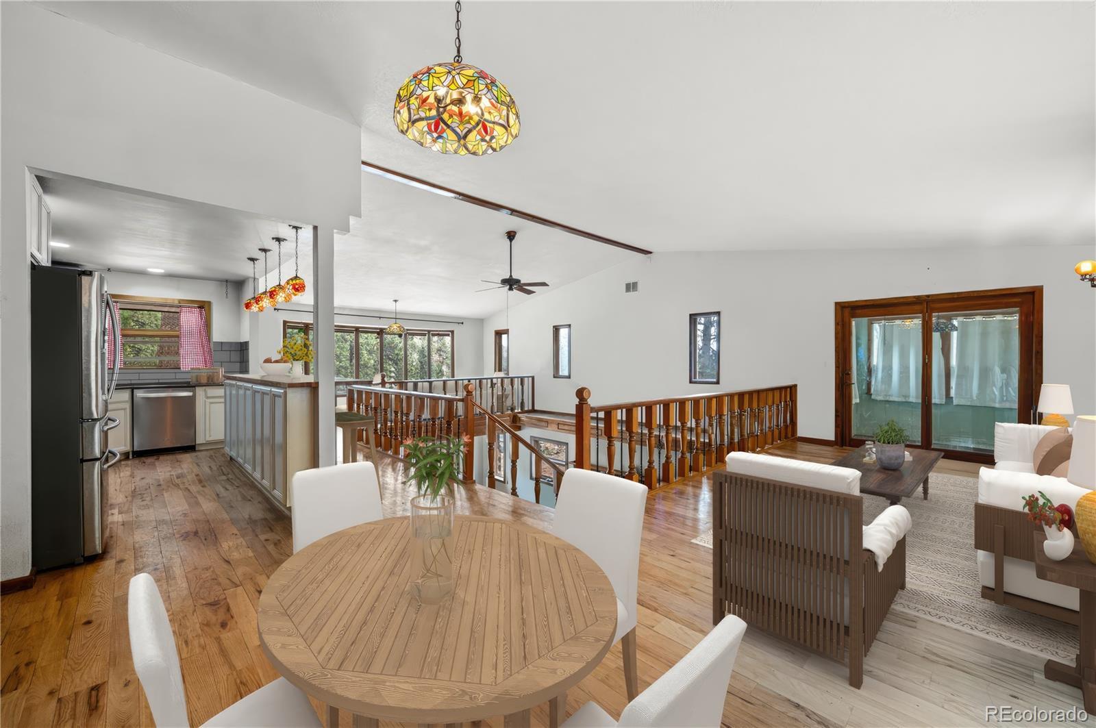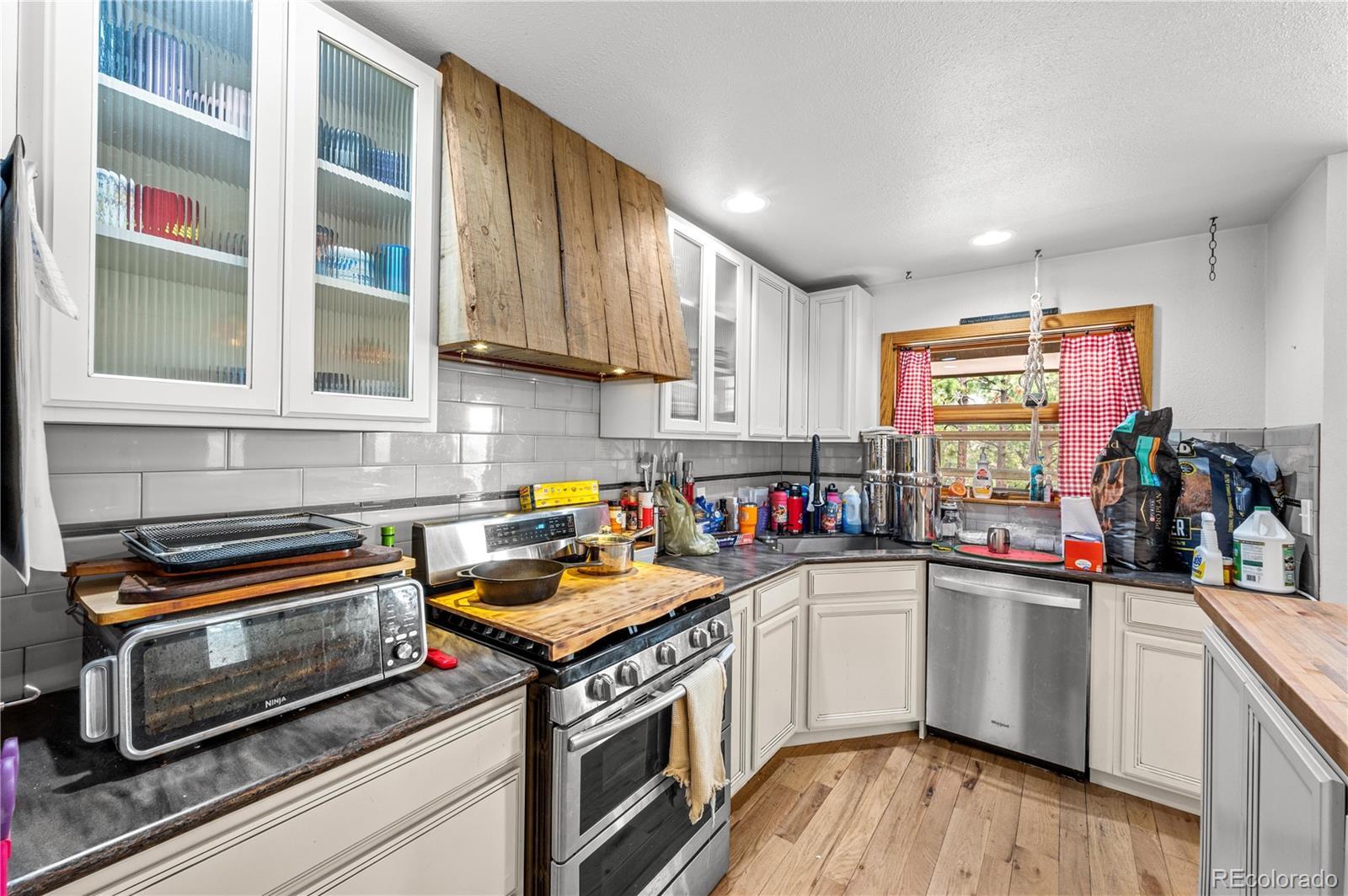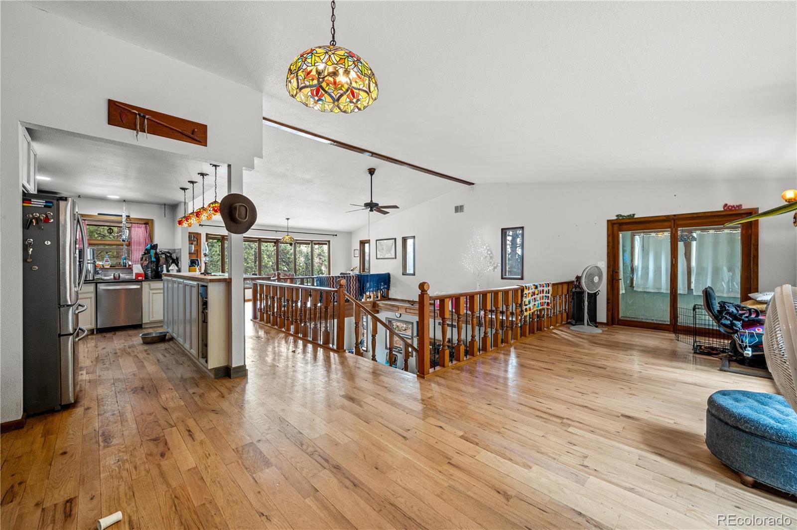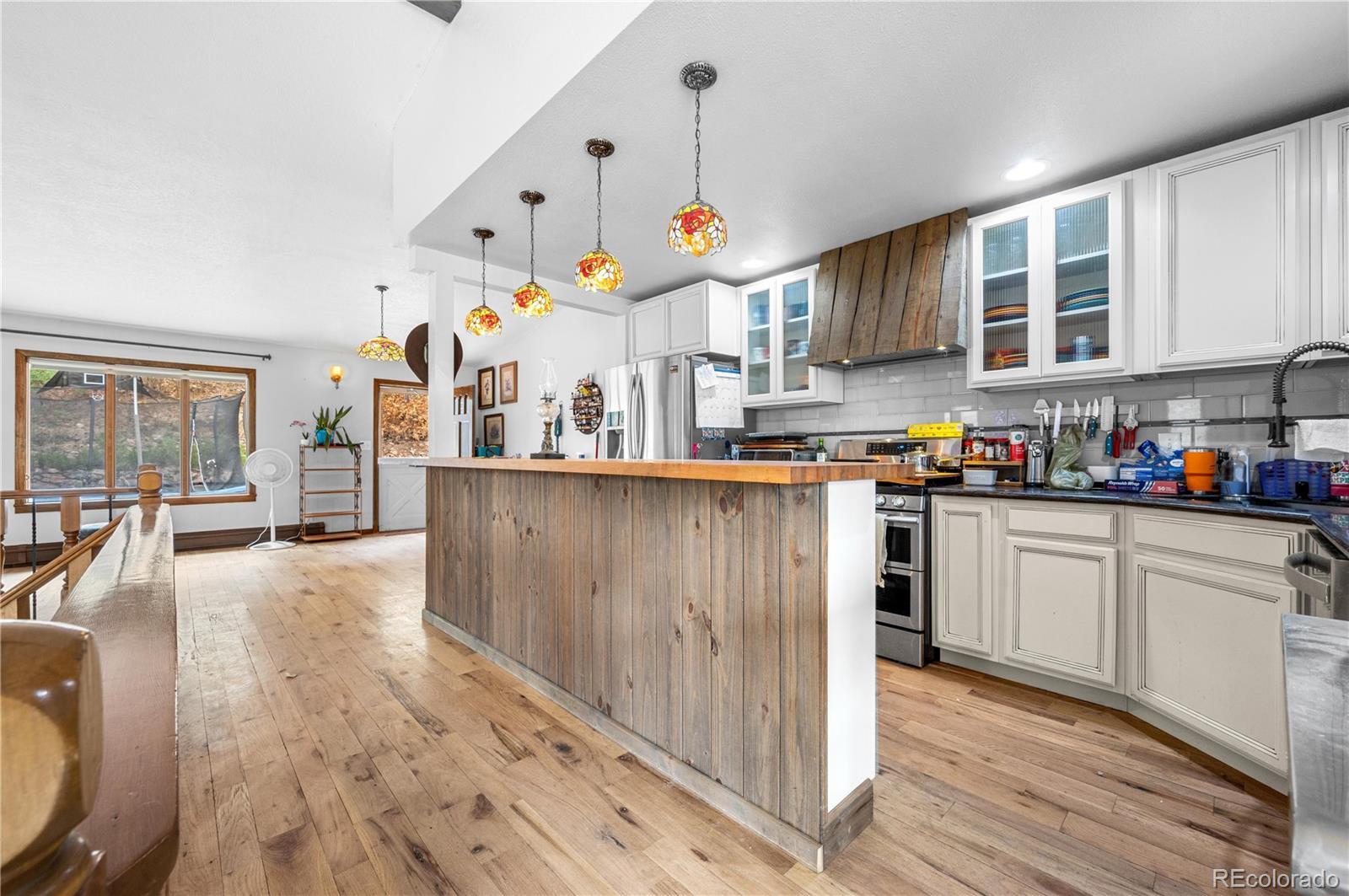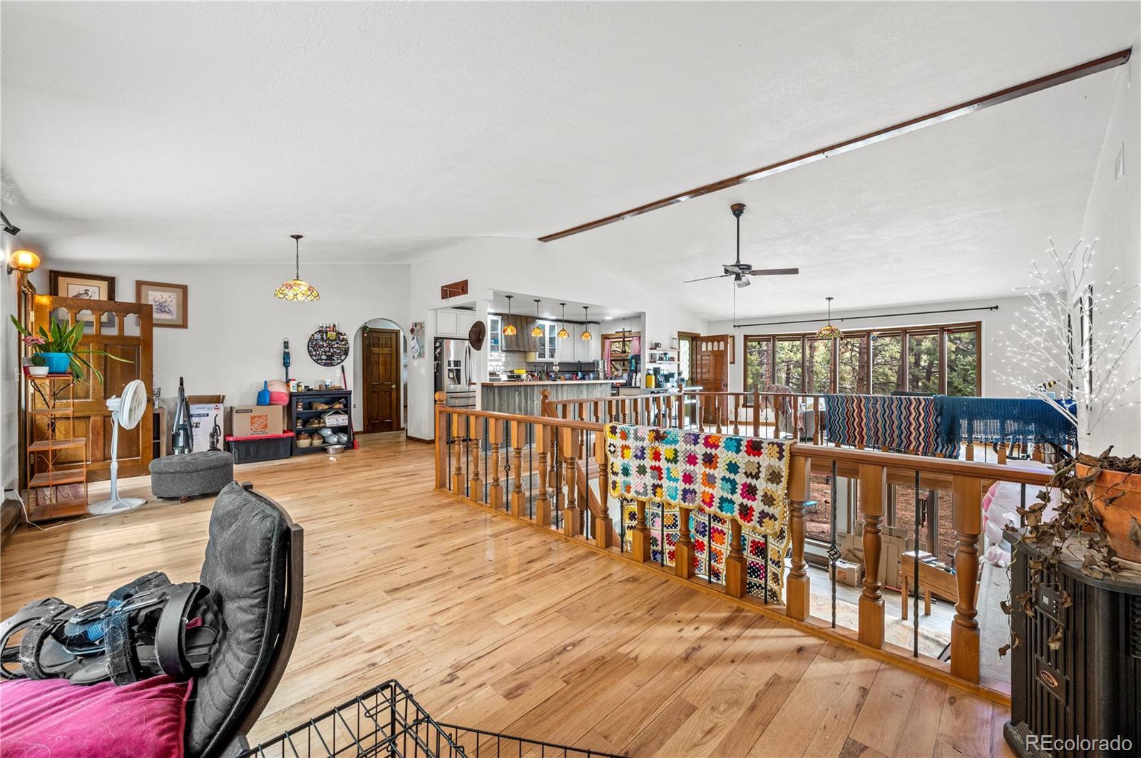 ucked in the foothills just west of Wetmore, this 4-bed, 2-bath ranch home with full walk-out basement sits on 2.83 acres that borders National Forest and includes a seasonal stream. A rare find with both privacy and convenience, the home offers over 2,700 finished square feet, hardwood and laminate flooring, a spacious main-level primary bedroom, and multiple living areas. Large windows and a cozy sunroom bring the outdoors in with peaceful views of trees, hills, and wildlife. The kitchen includes a breakfast bar, vented gas range, dishwasher, and refrigerator—everything you need to cook and entertain. The nook, dining room living room overlook the downstairs family room with a wood-burning fireplace insert. Also, downstairs offers two bedrooms, 3/4 bathroom, laundry area, and bonus space for office, guests, or hobbies. Heating options include propane hot water baseboards, wood stove, and supplemental electric—plus ceiling fans for comfort. A huge bonus is the 1460SF garage/workshop at 20604 Hwy 96 (included with the property), perfect for tools, toys, or a home-based business. The fenced backyard offers space for pets or gardening, and there’s plenty of RV parking and room to roam. With no HOA and Custer County zoning, you have freedom to use the land your way. This quiet location is just minutes to Wetmore, Florence, and access to major routes. Surrounded by nature with direct trail access, this is home for anyone looking for mountain living with practical features, flexible space, and unbeatable access to the outdoors.