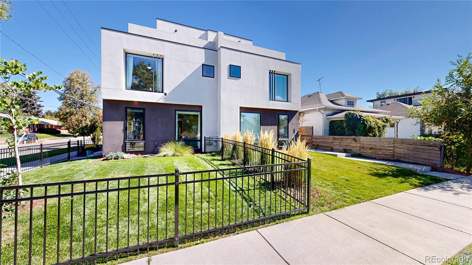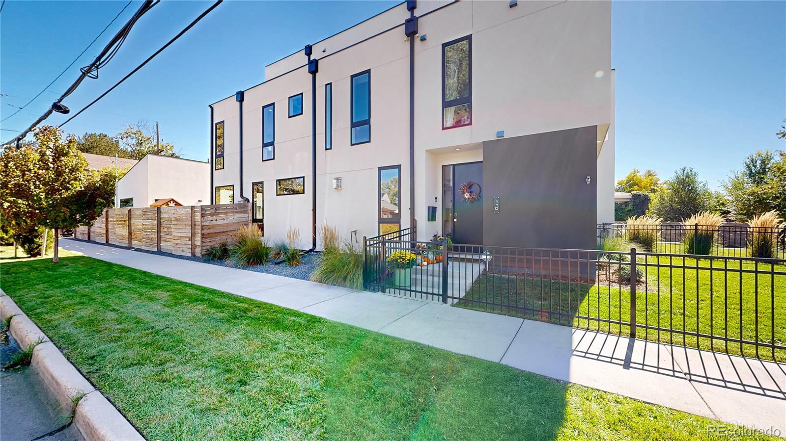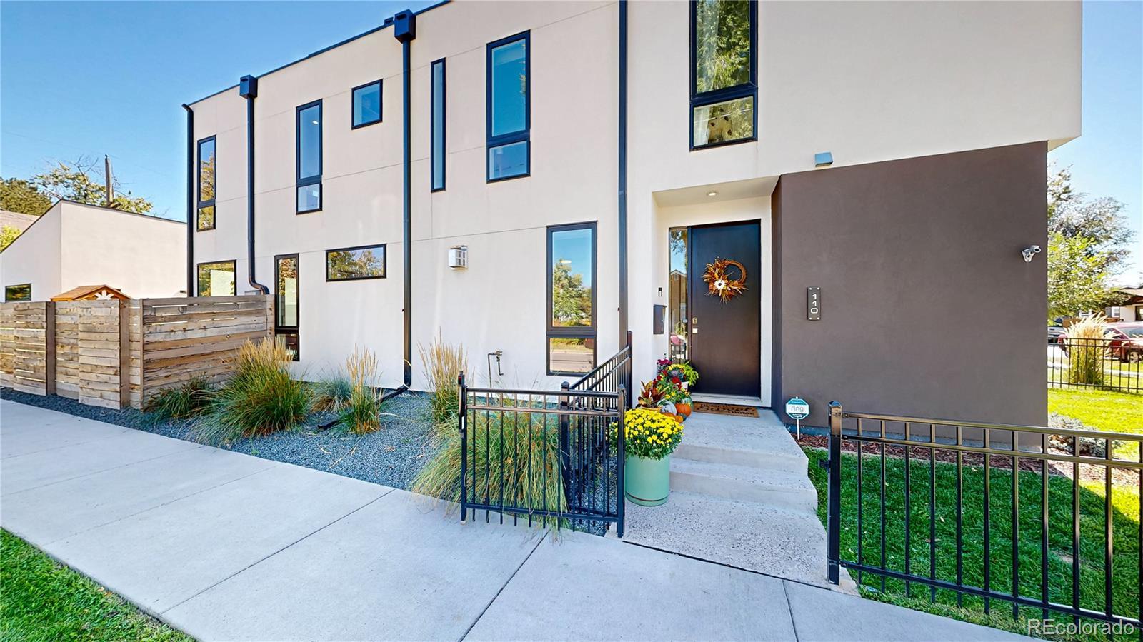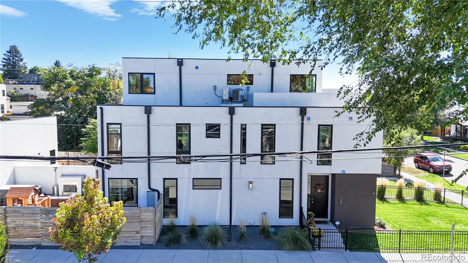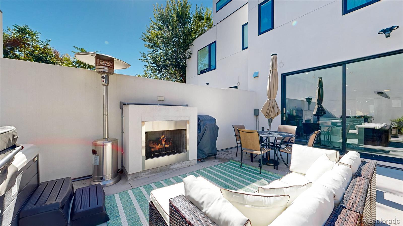 AMAZING PRICE! The perfect, like-new contemporary townhome with striking mountain views and sunsets from the private rooftop patio and retreat room with a wet bar and a secluded bedroom with murphy bed ideal for guests or use as office on the private 3rd floor! The open concept main floor plan includes a gourmet kitchen open to dining and living area with quartz composite counters, 5 burner gas stove/convection oven, pantry with pullout drawers and an over-sized island with breakfast bar and waterfall edge. Full height sliding glass door opens to wonderfully spacious private and secluded outdoor patio and backyard with built-in gas fireplace to keep you cozy on those cool nights. Patio and backyard also includes a hot tub, raised garden bed plus a playhouse and sand box for the kids and a storage shed. Second floor spacious primary suite with sitting area is a retreat from the outside world with spacious 5-piece bath complete with soaking tub and oversized frameless glass shower! There are two more bedrooms with full height glass windows overlooking front yard and served by a full bath and a convenient laundry closet in the hall. This home is conveniently located 1/2 block from Rosedale and City of Kunming parks and 2 1/2 blocks from Harvard Gulch Park with soccer fields, volleyball, neighborhood pool, 9-hole golf course, playground and walking/running paths and it is also only blocks away to multiple restaurants and shops on Old South Pearl St in Platt Park. First floor also includes a sunny office/studio in the front with full height glass that overlooks the fenced front yard. Recently painted and custom 2-way blinds (2022), carpeted (2024). Built-in wiring for high-speed internet and audio/visual. Sprinkler system in raised garden bed, front and side.