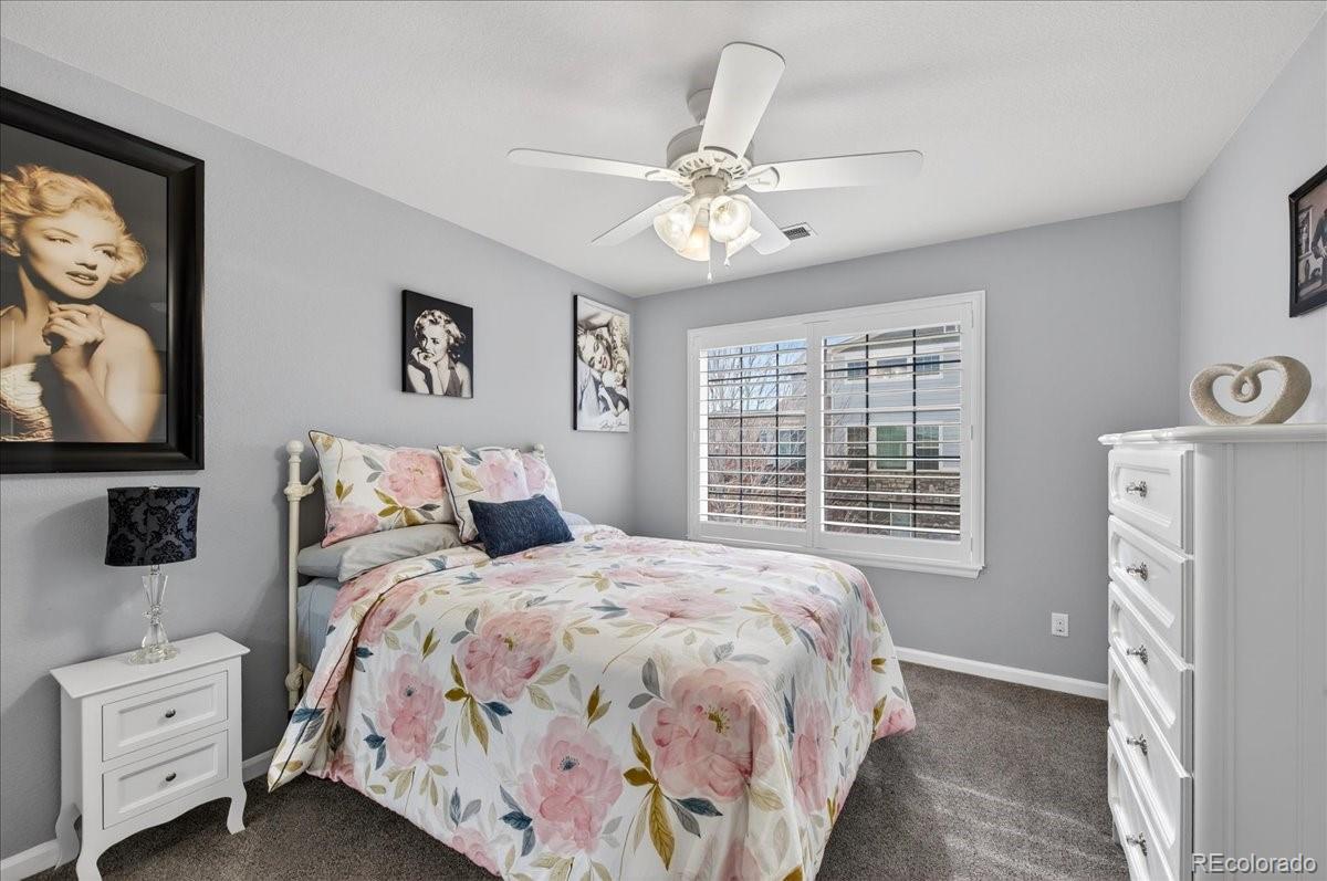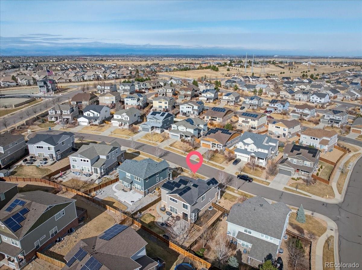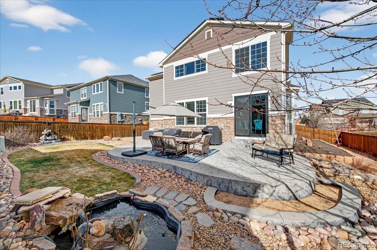 Welcome to this beautifully updated 4-bedroom, 4-bathroom home offering over 3,000 square feet of finished living space in the highly sought-after Sorrel Ranch master-planned community. From the moment you arrive in this beautiful cul-de-sac location, you’ll appreciate the pride of ownership and extensive upgrades throughout. The home features fresh interior paint completed this year! New exterior paint completed in 2022, a brand-new roof with Class 4 Hail resistant upgraded shingle and owned solar panels for energy efficiency and long-term savings. The property also boasts a 3 car tandem garage space for plenty of extra storage! Inside, the fully updated kitchen shines with modern oversized 10ft island and expansive countertop space, stylish backsplash, upgraded lighting, a new refrigerator, new induction stove top and microwave, and a new solid wood sliding glass door with a power remote-controlled shade. Plantation shutters throughout the home add timeless elegance and privacy. The spacious and functional layout includes a large loft, a private study with French doors, and convenient upstairs laundry. All bathrooms have been thoughtfully upgraded with new lighting, faucets, 2 new toilets, countertops, and frameless shower glass, creating a fresh, contemporary feel. The finished basement expands your living space, offering flexibility for entertaining, a home gym, media room, or guest retreat. Step outside to your professionally landscaped backyard oasis featuring stamped concrete, a tranquil pond, and flowers galore — the perfect setting for relaxing or entertaining. Located near Southlands Mall, E-470, and within the award-winning Cherry Creek School District, residents of Sorrel Ranch enjoy access to a community pool and exceptional neighborhood amenities. This move-in-ready home combines space, style, efficiency, and an unbeatable location — truly a rare find.