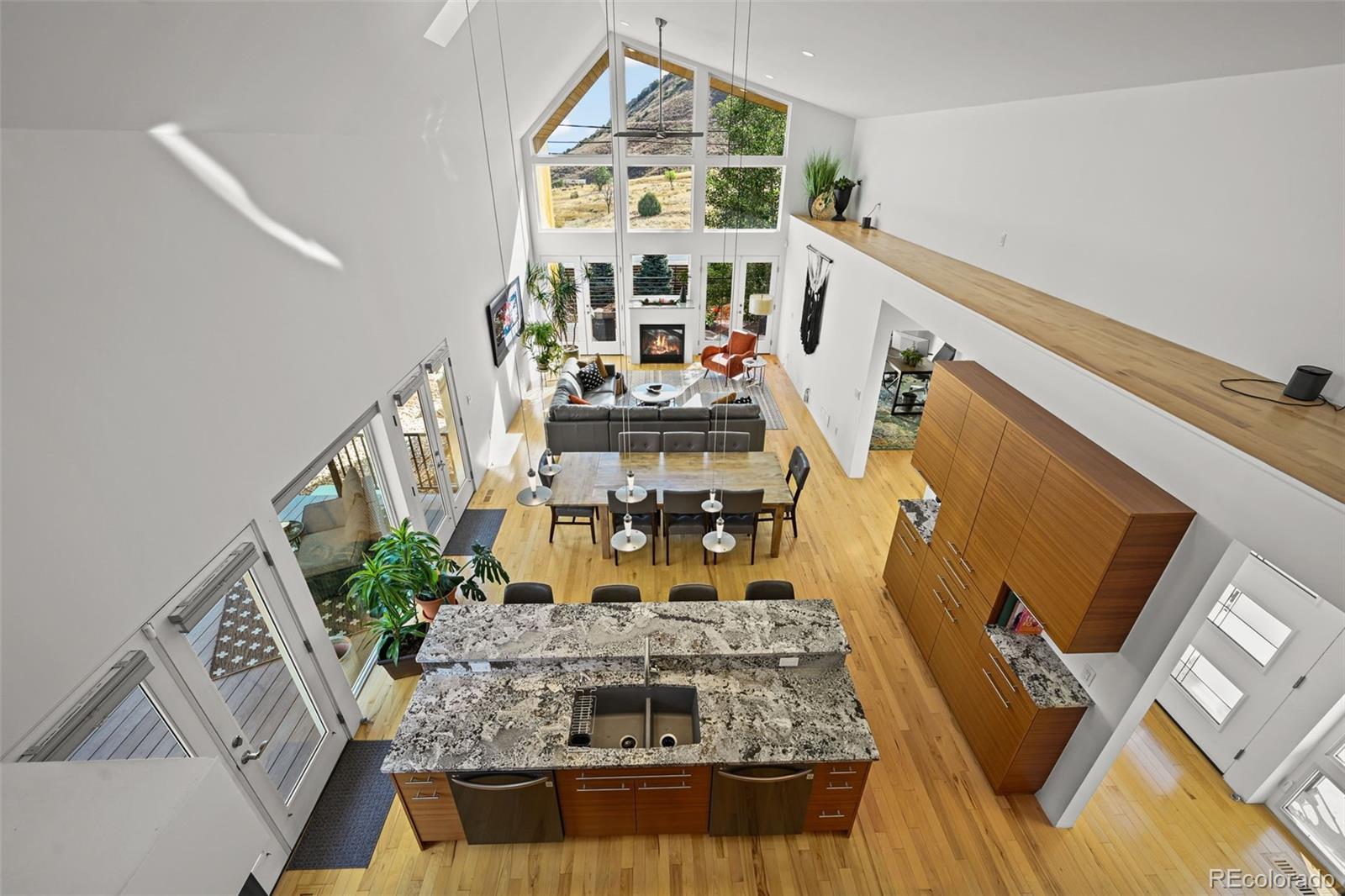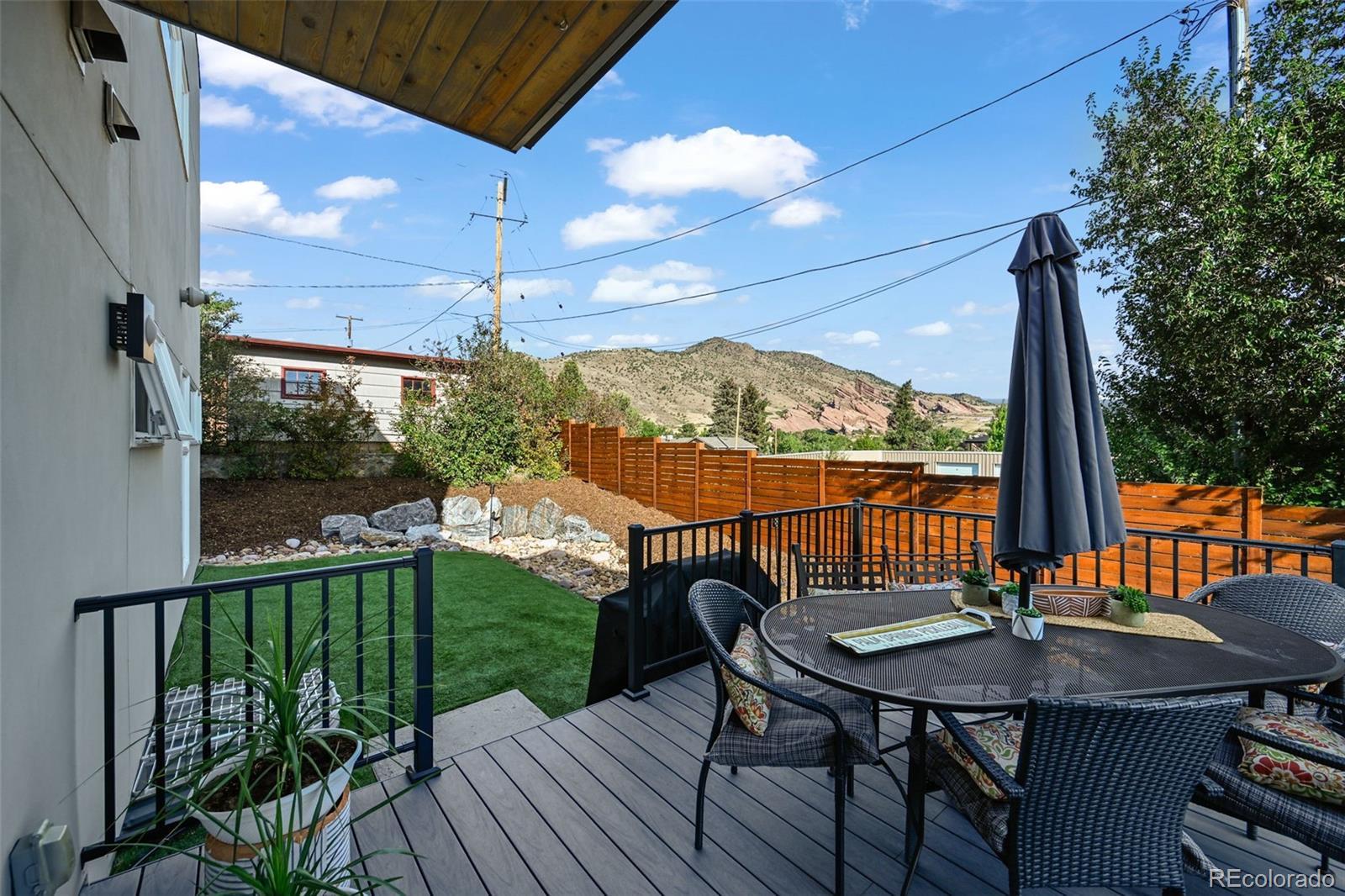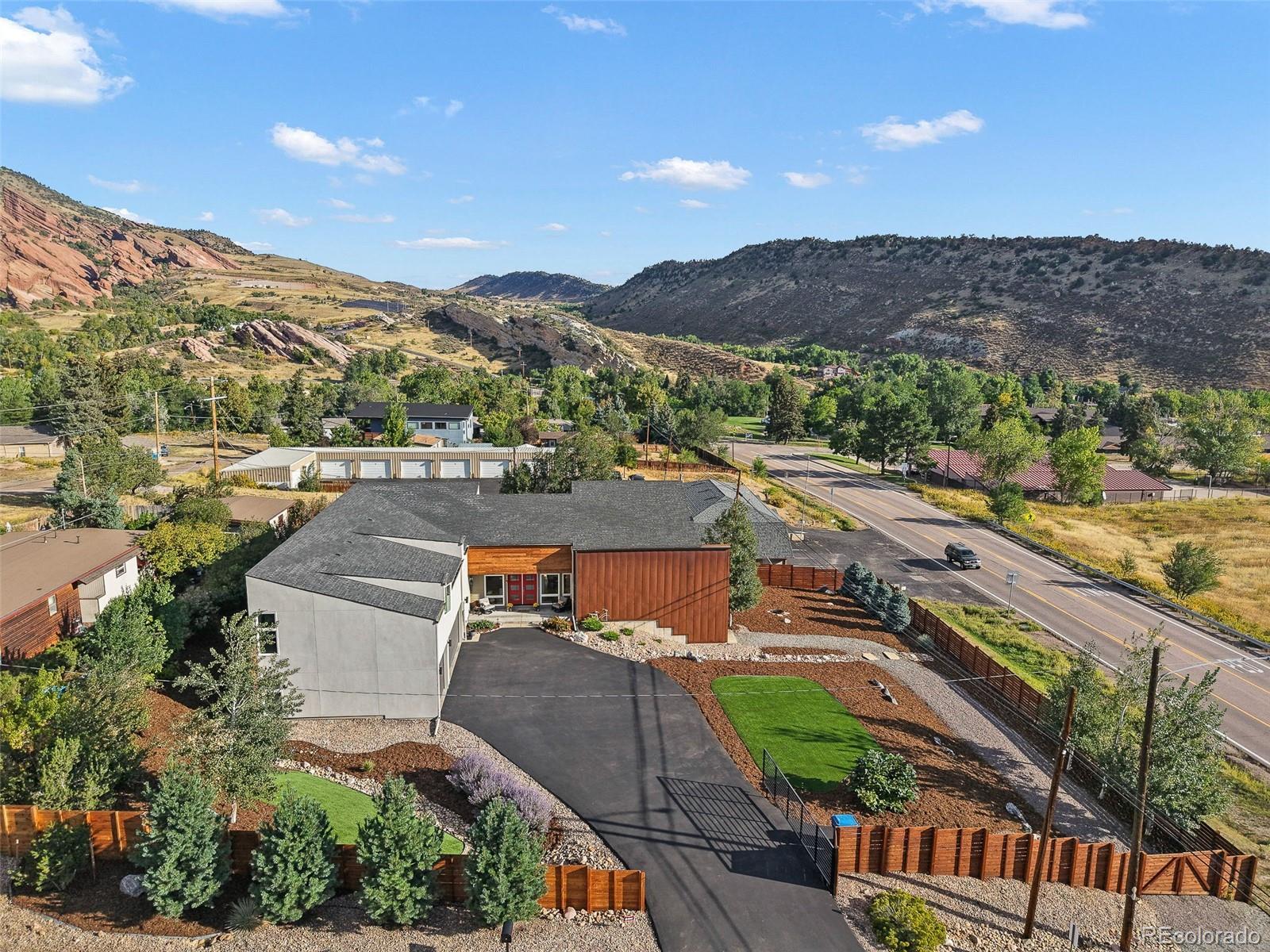 Unmatched Red Rocks Views & Modern Luxury in Morrison Perched just above historic downtown Morrison, this stunning 2017 contemporary custom home offers unobstructed views of Red Rocks Amphitheatre, the Denver skyline, and the dramatic front range. With 5,400 sq ft of beautifully designed living space, 3 bedrooms, 4 bathrooms, a private office, and multiple outdoor decks, this residence is truly one of a kind. Behind the private security gate, sleek modern architecture and xeriscape landscaping create an effortless, lock-and-leave lifestyle. A spacious 3-car garage provides plenty of room for parking and storage. Inside, the great room impresses with soaring ceilings, floor-to-ceiling windows, rich hickory floors, and a cozy gas fireplace—all framing the iconic views. The chef’s kitchen blends style and function with a large island, custom cabinetry, and dual dishwashers, making it the perfect space for everyday living and entertaining. The primary suite feels like a private retreat with breathtaking views of Red Rocks, a spa-inspired 5-piece bath, and a generous walk-in closet. Upstairs, two additional ensuite bedrooms offer comfort and privacy for family or guests, while the loft overlooking the great room adds to the home’s open, airy feel. Outdoor living shines here with three expansive decks, each with its own unique vantage point, perfect for morning coffee, hosting gatherings, or enjoying Colorado sunsets. The walkout basement with its own entrance and patio offers endless options, from a guest suite to a gym or home theater. Best of all, you’re just steps from downtown Morrison’s restaurants and shops, with world-class hiking at Mt. Falcon and Bear Creek Lake Park. And, of course, Red Rocks Amphitheatre is practically in your backyard. With no HOA and a location that’s both private and convenient, this home offers a rare blend of security, style, and freedom. This is more than a home, it’s a lifestyle. Schedule your private showing today.