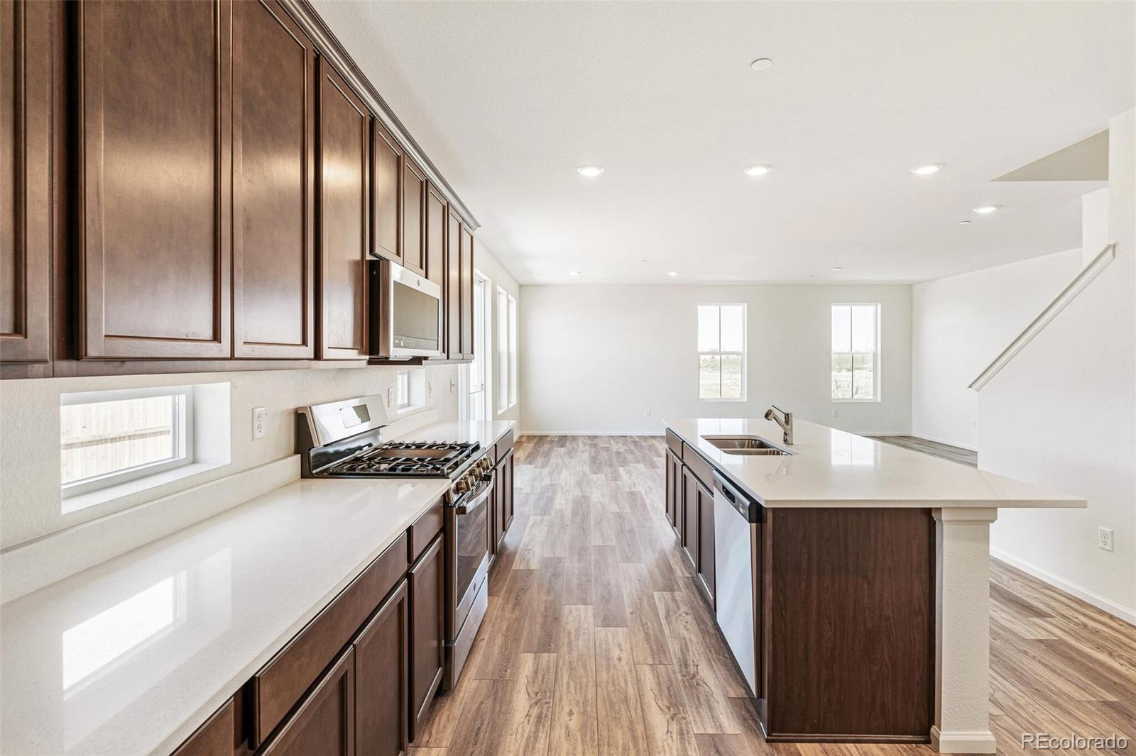 This spacious, two-story home offers an open floor plan with an inviting great room w/fireplace. Luxury vinyl plank flooring throughout the primary living areas, bathrooms and laundry. The modern kitchen boasts quartz countertops, an expansive island, walk-in pantry and stainless-steel appliances. The primary suite includes a spacious walk-in closet and connecting bath that with a generous shower w/seat. Enjoy an extended garage, deep enough for an SUV. Team Lassen represents the seller/builder as a Transaction Broker.