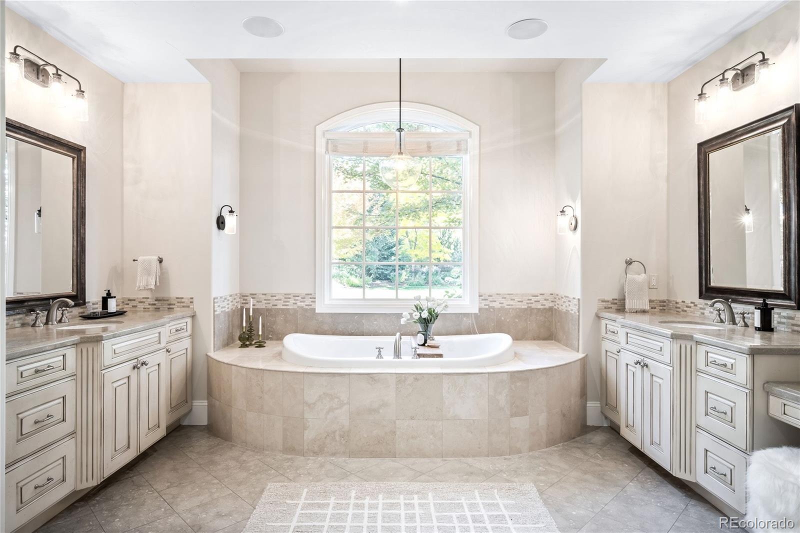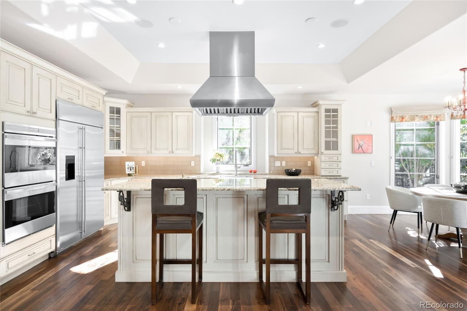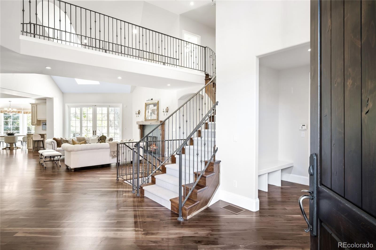 A rare offering in the coveted gated community of Orr Estates, this extraordinary Littleton home backs to the scenic High Line Canal and showcases refined updates throughout. A grand foyer welcomes residents into an open layout adorned with refinished walnut floors. The gourmet kitchen boasts Bosch, KitchenAid, GE Profile and Wolf appliances, a sunny nook and a butler’s hallway. An expansive main-floor primary suite offers backyard access, a luxurious five-piece bath with a multi-jet shower and a custom closet system. Four additional bedrooms each feature en-suite baths for ultimate comfort. The main-floor office with a fireplace and patio access inspires productivity, while the entertainer’s basement dazzles with 10-foot ceilings, a built-in bar with a dishwasher and a projector screen for immersive viewing. Outside, a stunning backyard crafted by Designs by Sundown showcases extensive landscaping, hardscape and a firepit. A heated driveway with a snowmelt system, dual attached garages and a thoughtfully designed mudroom complete this remarkable residence.