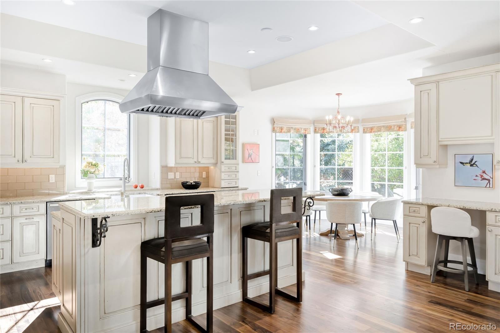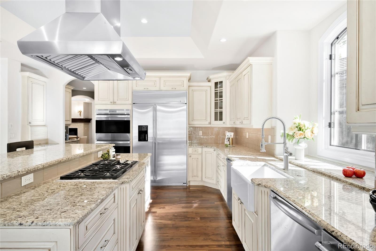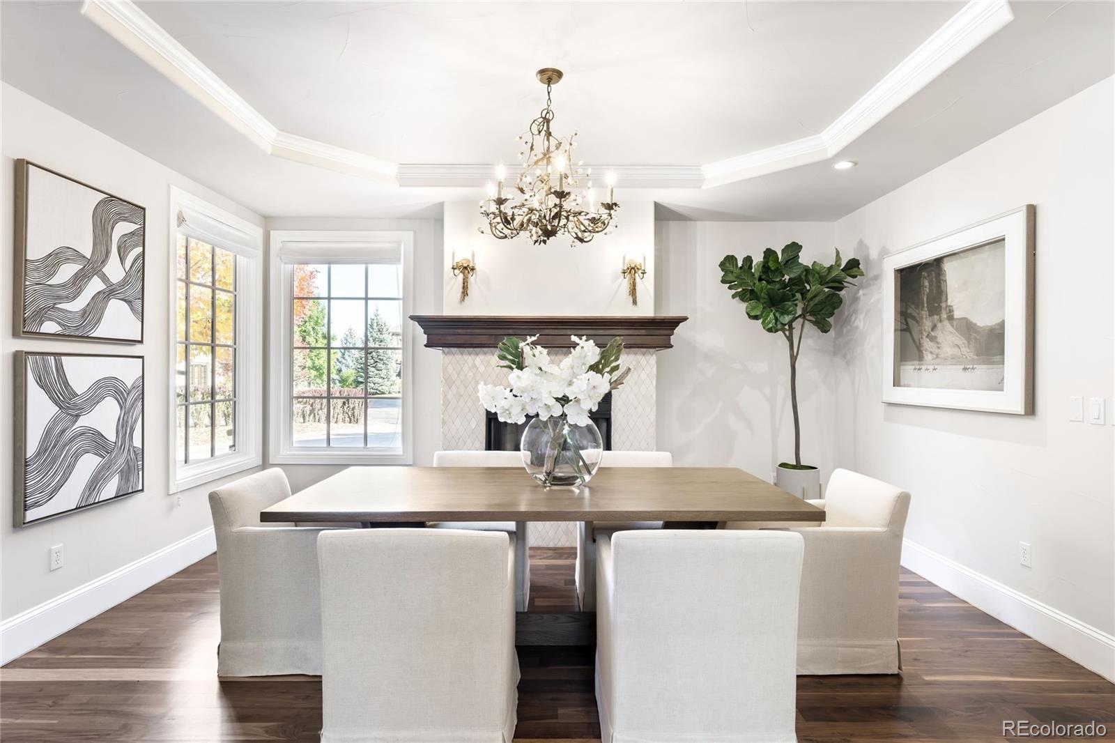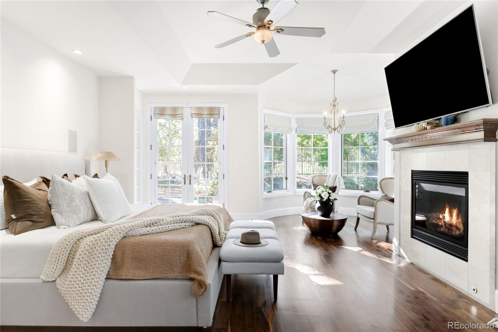 A rare offering in the coveted gated community of Orr Estates, this extraordinary Littleton home backs to the scenic High Line Canal and showcases refined updates throughout. A grand foyer welcomes residents into an open layout adorned with refinished walnut floors. The gourmet kitchen boasts Bosch, KitchenAid, GE Profile and Wolf appliances, a sunny nook and a butler’s hallway. An expansive main-floor primary suite offers backyard access, a luxurious five-piece bath with a multi-jet shower and a custom closet system. Four additional bedrooms each feature en-suite baths for ultimate comfort. The main-floor office with a fireplace and patio access inspires productivity, while the entertainer’s basement dazzles with 10-foot ceilings, a built-in bar with a dishwasher and a projector screen for immersive viewing. Outside, a stunning backyard crafted by Designs by Sundown showcases extensive landscaping, hardscape and a firepit. A heated driveway with a snowmelt system, dual attached garages and a thoughtfully designed mudroom complete this remarkable residence.