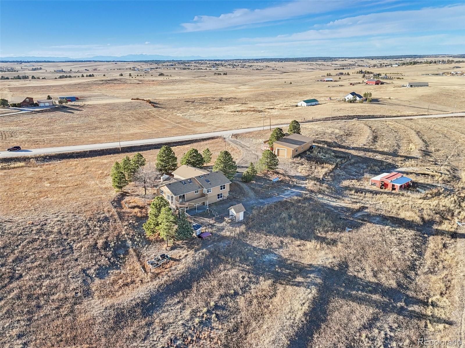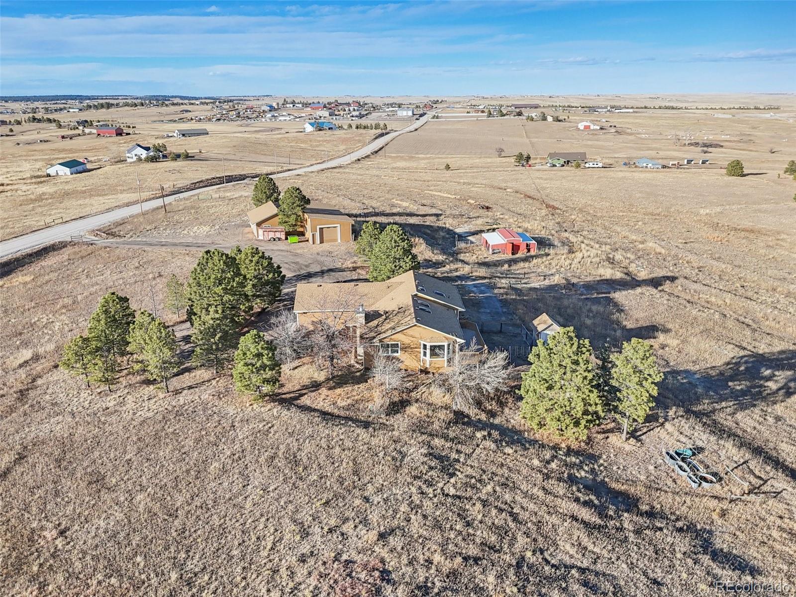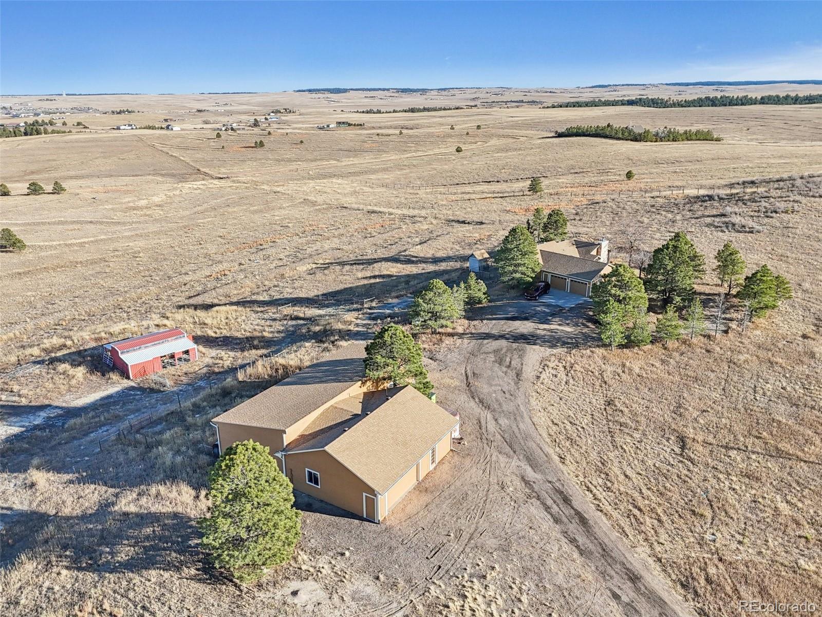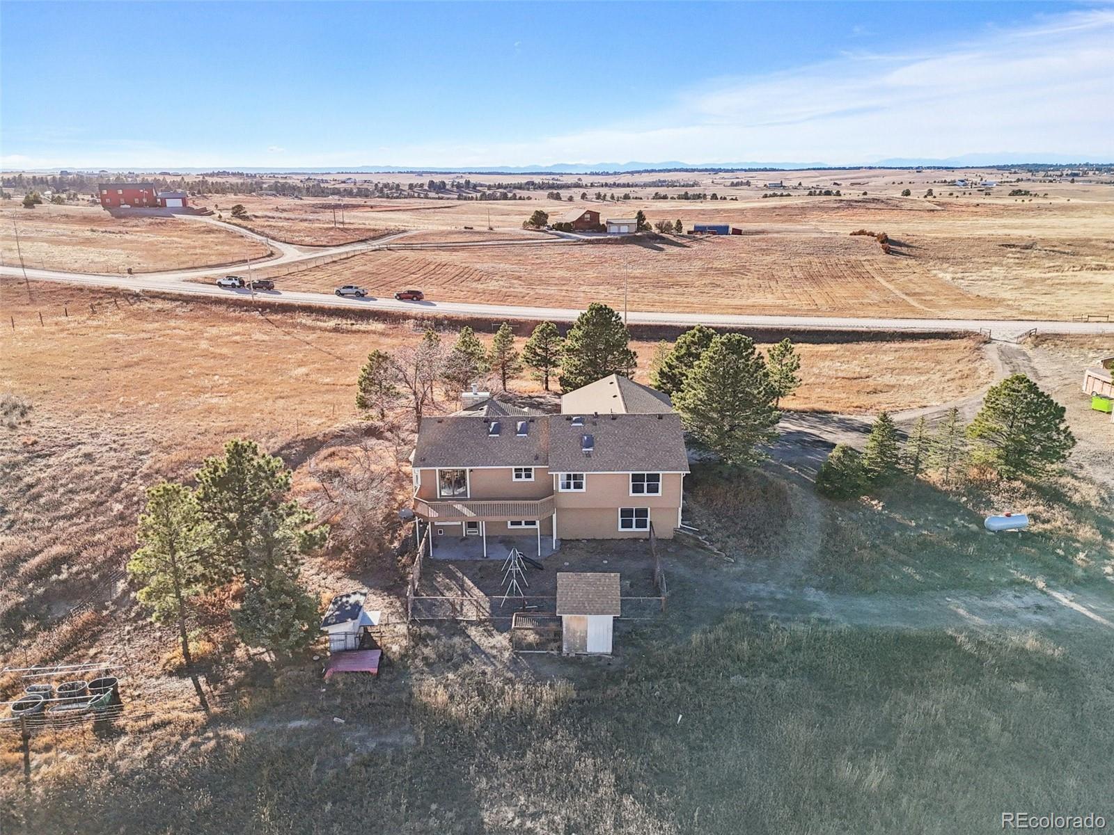 Welcome home to 35 acres of wide-open Colorado beauty, where quiet sunrises, stunning sunsets, & room for your people, animals, & dreams await. This home features new class 4 impact-resistant roofs, interior/exterior paint, & LVP flooring & carpet. Inside, you’ll find a bright, open layout with big windows & great natural light, perfect for everyday living & holiday gatherings. The main level includes a beautiful primary suite with 5-piece bath & walk-in closet, a 2nd bedroom, full bath, & a kitchen with plenty of counter & cabinet space. The formal dining room opens to the back deck, ideal for morning coffee or grilling with a view. The living room offers a cozy fireplace, & the main-level laundry adds convenience. The walk-out basement feels like a 2nd home, offering 2 bedrooms, a 3/4 bath, a kitchen, storage, a 2nd washer/dryer hookup. The driveway down leads to a separate entry through the fenced backyard. It’s the perfect setup for guests, multigenerational living, or extra workspace. Outside, bring your animals; this property is ready with fenced pastures, a barn, chicken coop, shed, and plenty of usable acreage to make your own. Car lovers & hobbyists will appreciate the outbuildings: an auxiliary garage with double doors, plus an attached shop with a 12’ door for tall equipment, trailers, RV Parking or projects needing extra clearance, & a 1/2 bath for added convenience. The oversized 2-car attached garage offers even more parking, storage, & workspace. A circular drive up to the front door welcomes guests, & there is room to turn trucks and trailers near the house and shop. This peaceful acreage gives you space to expand, garden, raise animals, or enjoy the freedom of country living. Move fast & you can still make it home for the holidays & capture those homeowner tax benefits before the 3-2-1 New Year countdown. Don’t miss out, this is your chance to live the Colorado country life with the space, updates, & possibilities you’ve been searching for.