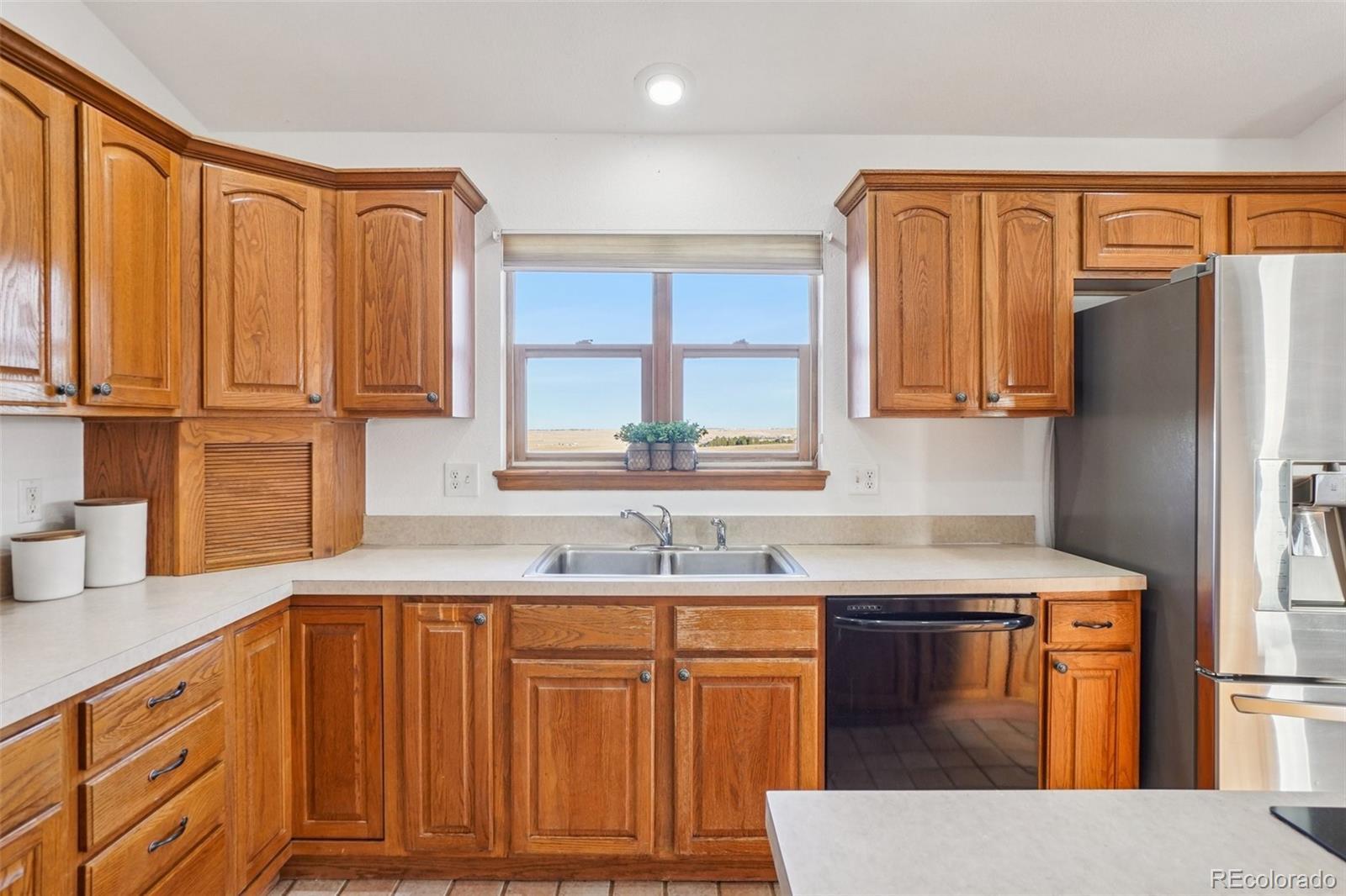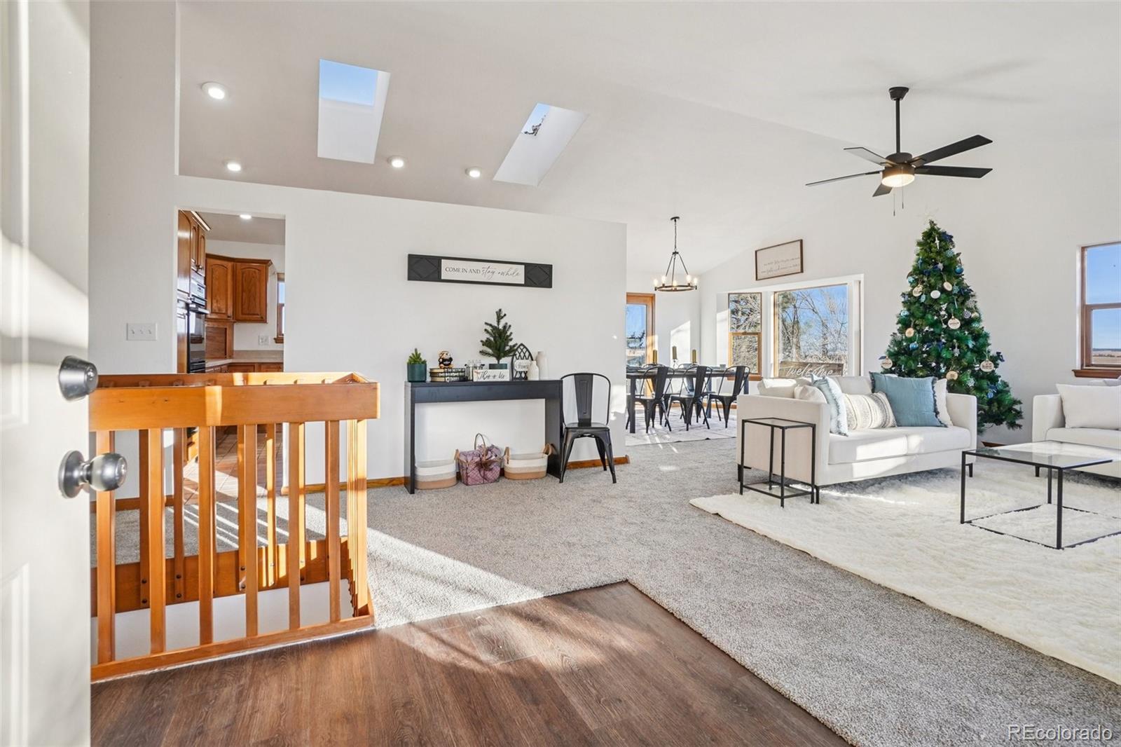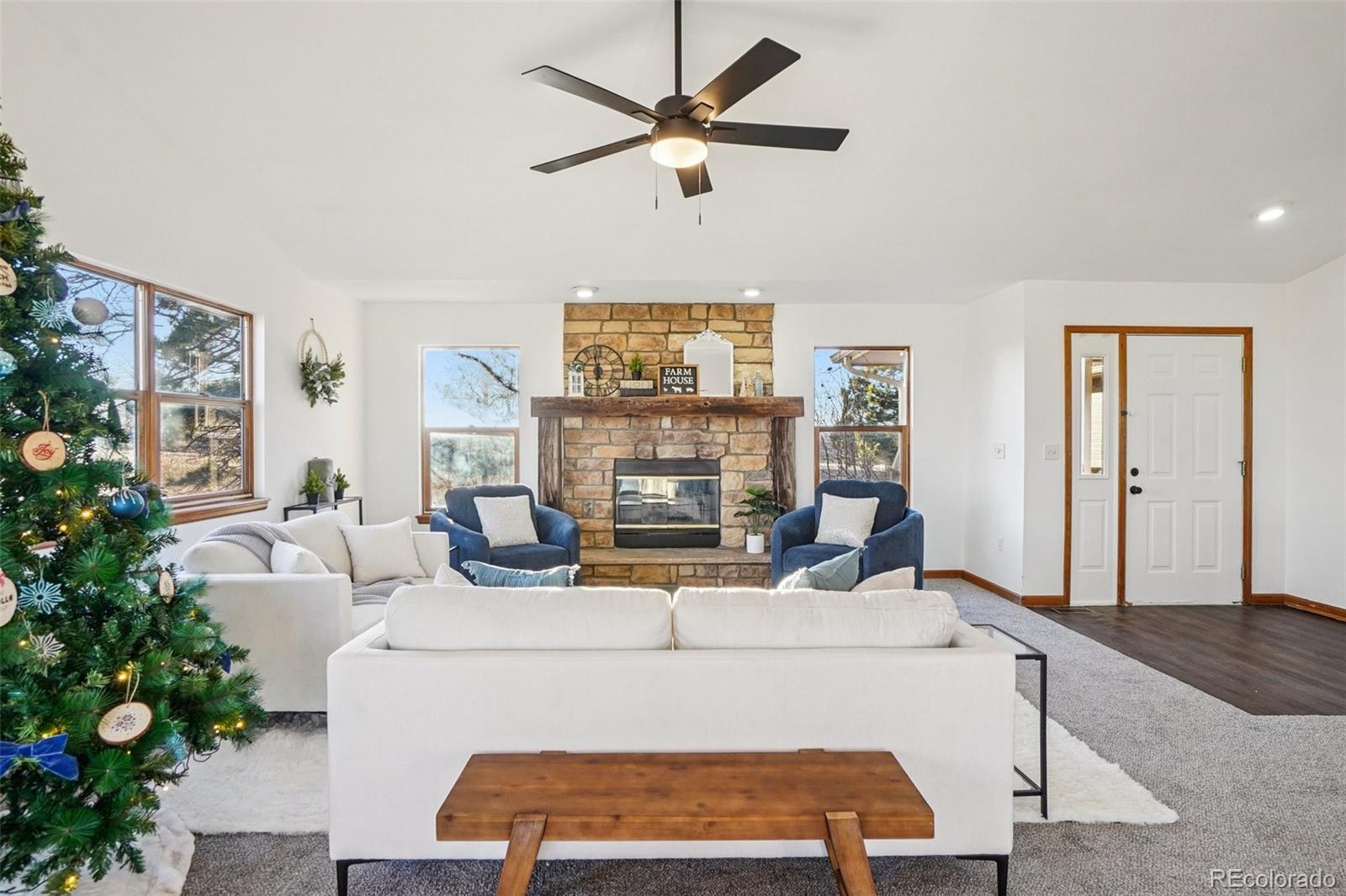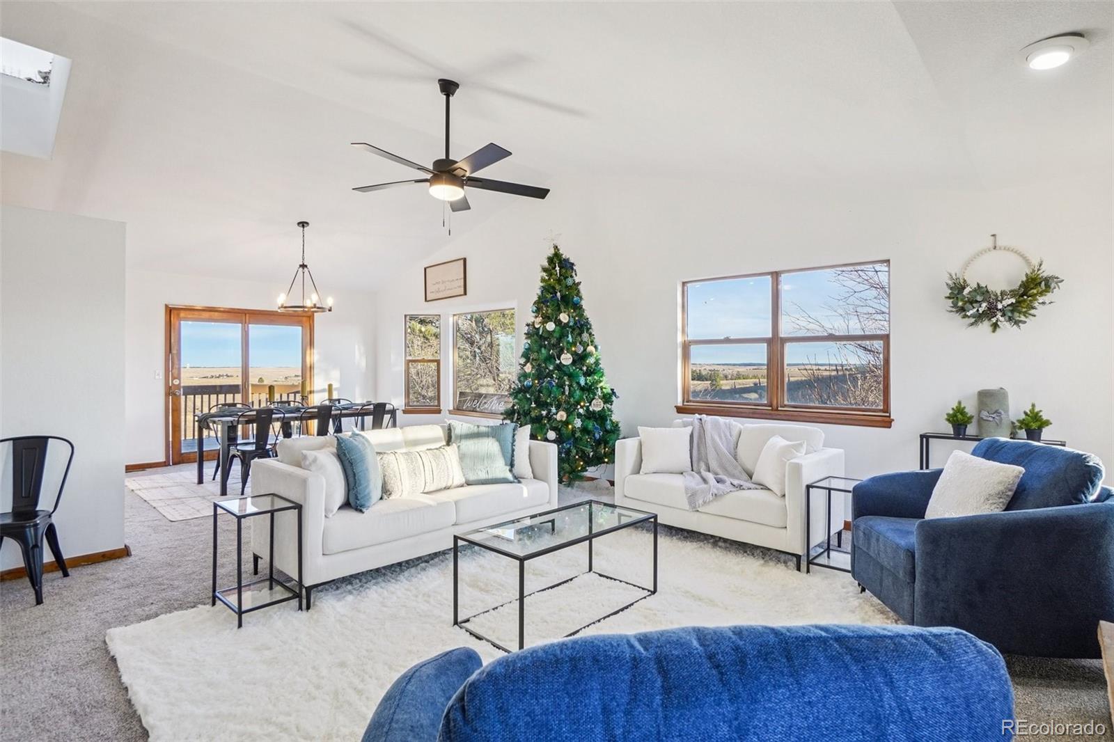 Welcome home to 35 acres of wide-open Colorado beauty, where quiet sunrises, stunning sunsets, & room for your people, animals, & dreams await. This home features new class 4 impact-resistant roofs, interior/exterior paint, & LVP flooring & carpet. Inside, you’ll find a bright, open layout with big windows & great natural light, perfect for everyday living & holiday gatherings. The main level includes a beautiful primary suite with 5-piece bath & walk-in closet, a 2nd bedroom, full bath, & a kitchen with plenty of counter & cabinet space. The formal dining room opens to the back deck, ideal for morning coffee or grilling with a view. The living room offers a cozy fireplace, & the main-level laundry adds convenience. The walk-out basement feels like a 2nd home, offering 2 bedrooms, a 3/4 bath, a kitchen, storage, a 2nd washer/dryer hookup. The driveway down leads to a separate entry through the fenced backyard. It’s the perfect setup for guests, multigenerational living, or extra workspace. Outside, bring your animals; this property is ready with fenced pastures, a barn, chicken coop, shed, and plenty of usable acreage to make your own. Car lovers & hobbyists will appreciate the outbuildings: an auxiliary garage with double doors, plus an attached shop with a 12’ door for tall equipment, trailers, RV Parking or projects needing extra clearance, & a 1/2 bath for added convenience. The oversized 2-car attached garage offers even more parking, storage, & workspace. A circular drive up to the front door welcomes guests, & there is room to turn trucks and trailers near the house and shop. This peaceful acreage gives you space to expand, garden, raise animals, or enjoy the freedom of country living. Move fast & you can still make it home for the holidays & capture those homeowner tax benefits before the 3-2-1 New Year countdown. Don’t miss out, this is your chance to live the Colorado country life with the space, updates, & possibilities you’ve been searching for.