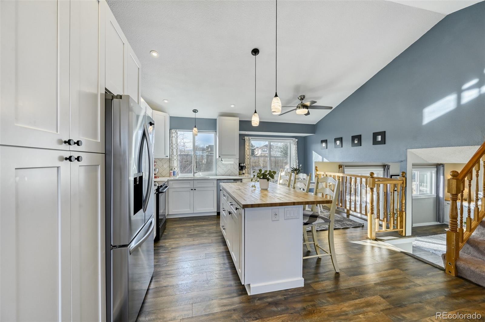 The newly remodeled open kitchen greets you as you enter this move-in ready home in an unbeatable location. The open kitchen has space for a dining room table and lounge space—perfect for everyday living. Abundant light from both east and west windows fills the kitchen and the vaulted ceiling gives an open and airy feel to the room. The three bedrooms are conveniently located on the upper level, the primary en suite includes a private ¾ bath. A full bathroom on the same level provides bathroom space for the other two bedrooms. The washer and dryer are located on the same upper level making laundry a breeze. Walk down four stairs from the open kitchen into a cozy living room space with a gas fireplace and west facing windows creating another comfortable living area. A sliding glass door on the lower living room area leads to a professionally landscaped patio and backyard, ideal for relaxing, entertaining, or enjoying Colorado’s outdoor lifestyle. The list of updates is numerous, including new furnace & AC, interior & exterior paint, windows, ceiling fans, new flooring, new washer & dryer, radon mitigation, new sliding glass door, trex front porch and stone pavers in the backyard. With all these updates this house is listed at an incredible value! The attached two car garage with built in storage provides easily accessible organization for extra belongings while still being able to park both cars inside. More storage is available in the backyard shed. An enclosed dog run is located on the north side of the house though the whole entire backyard is fenced in giving a four legged friend lots of yard space. A quick walk across Simms Street is the Westminster Hills Open Space Off-Leash Dog Area and Colorado Hills Open Space providing an incredible perk for pet owners and outdoor enthusiasts. The property has had a pre-listing inspection performed and is in great condition, making it truly move-in ready for its next owner to start making memories.
