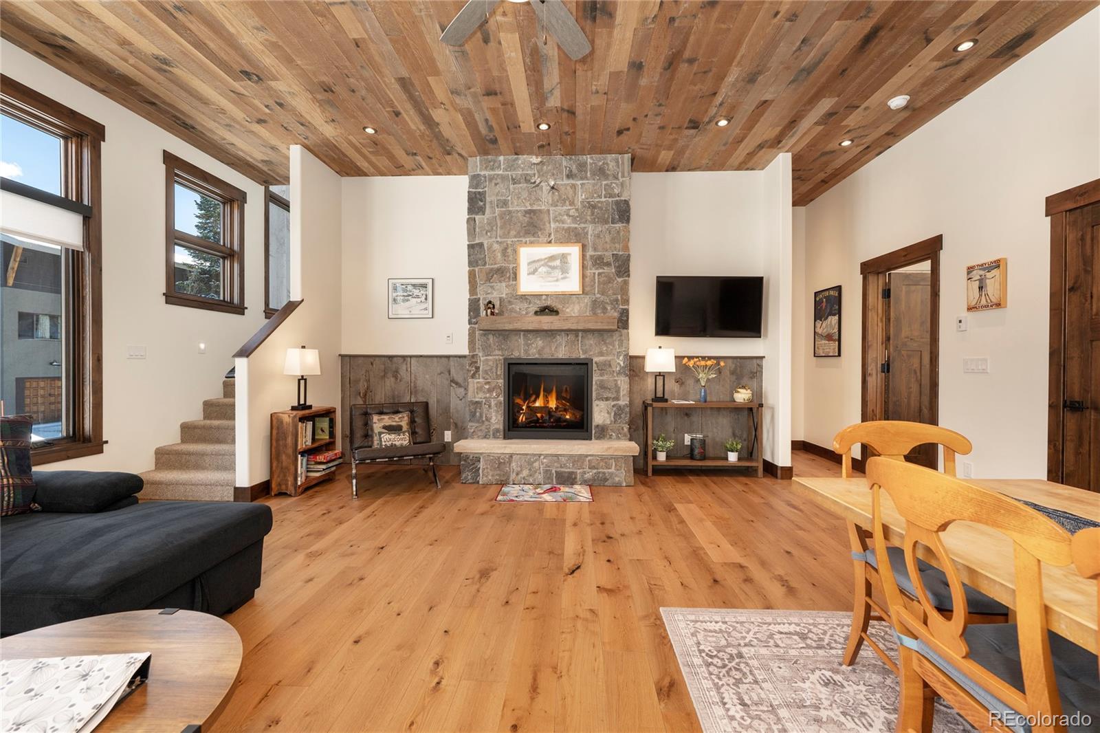 Unique opportunity to own a handcrafted townhome bordering Winter Park Resort. Own your own land, no HOA fees, walking distance to Winter Park Resort. Old town Winter Park is surrounded by National Forest and near the Fraser River Trail. Enjoy public transit to the town of Winter Park just minutes away and the Winter Park ski train stops nearby. This 2 bedroom, 3 bath Alpenbeck Townhome offers many fine custom home features including; reclaimed Douglas Fir T&G ceilings, wide plank oak floors, alder trim/cabinets/solid doors, and reclaimed ski lift cable railings. The main floor kitchen boasts granite counter tops, stainless steel LG appliances, gas log fireplace in the living room with an open floor plan perfect for entertaining. Washer and dryer and many furnishings included. Oversized heated garage with EV charger and plenty of room for your boards & bikes. The beautiful reclaimed gray barn wood exterior stands out with a covered front porch entrance, professional landscaping and a private covered back patio. Live your mountain dream in this high-quality, custom built townhome in the heart of old town Winter Park.