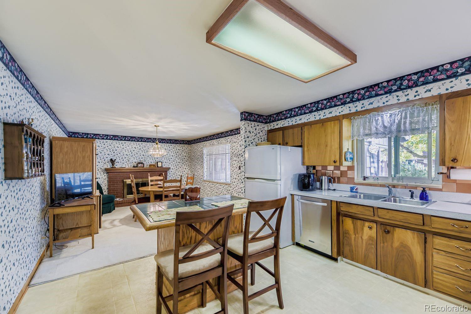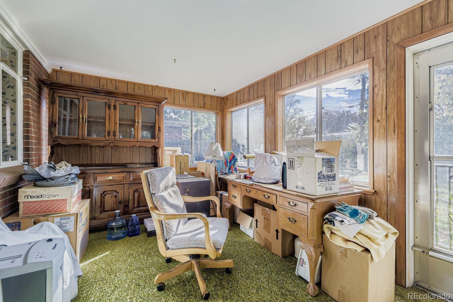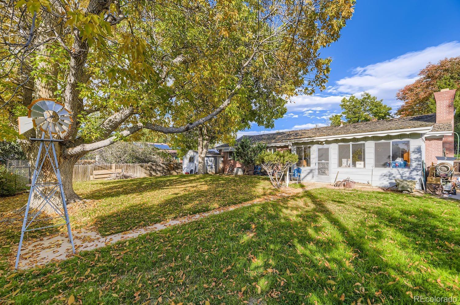 Best Price in the area for this sturdy brick ranch-style home in the highly desirable Park East neighborhood! This lovely 3-bedroom, 2-bath residence has a 2 car attached garage for your convenience. A new roof is being installed for added peace of mind. Step inside to find a warm and inviting living room perfect for relaxing or entertaining. The main level offers 2 comfortable bedrooms and a full 4-piece bath, while the finished lower level includes a non-conforming 3rd bedroom, a ¾ bath, and a massive family room—ideal for movie nights, a playroom, or hosting guests. The chef in the family will love the spacious kitchen with an abundance of cupboards, a center island, and an adjacent dining area featuring a cozy fireplace—perfect for chilly Colorado evenings. Stay comfortable year-round with central air conditioning for those hot summer days. Just off the kitchen, enjoy the enclosed sunroom, a great bonus space that leads to the generously sized backyard with mature trees offering shade and privacy, plus an oversized shed for extra storage or hobbies. The lower level also includes a spacious laundry room with utility sink, as well as a dedicated workshop—perfect for DIY projects or extra storage. Don’t miss your chance to own this well-maintained home in a prime location near parks, schools, shopping, and more. Schedule your private showing today! Sentrilock lockbox. Call Listing Broker if you need a code.