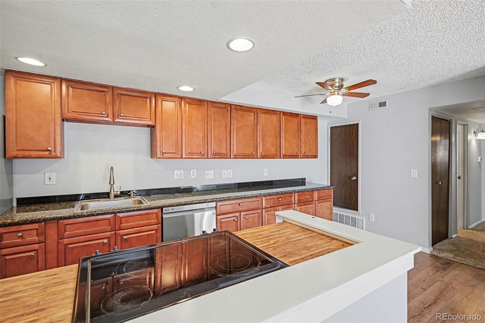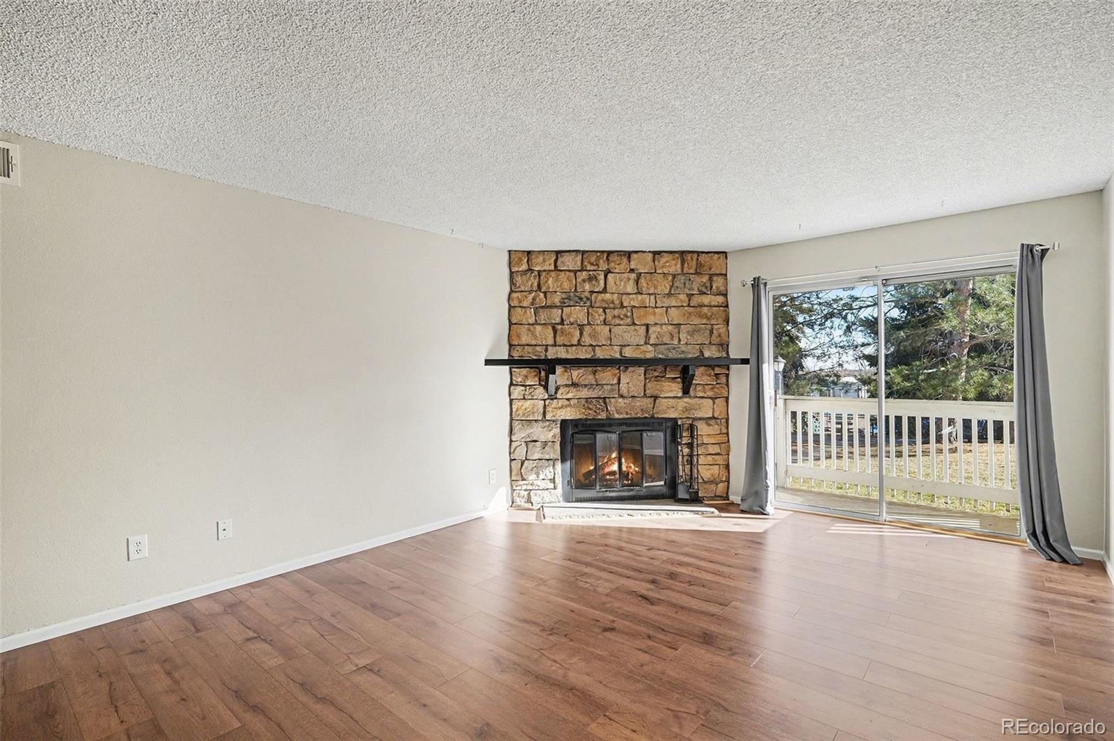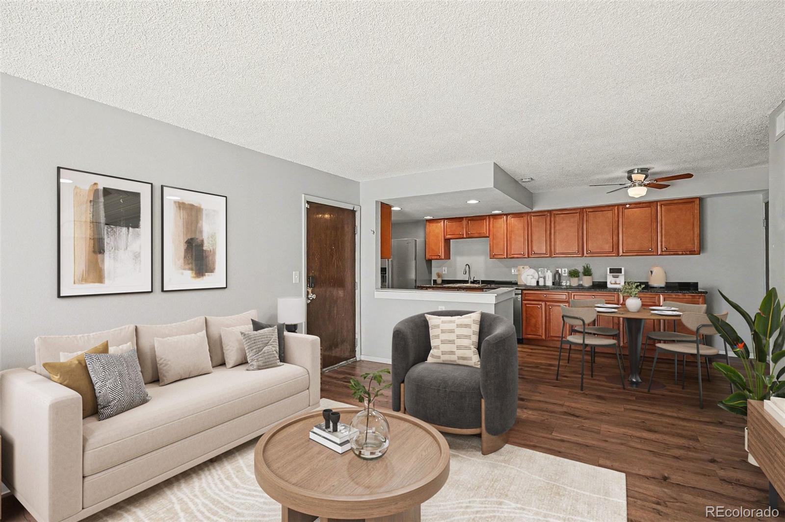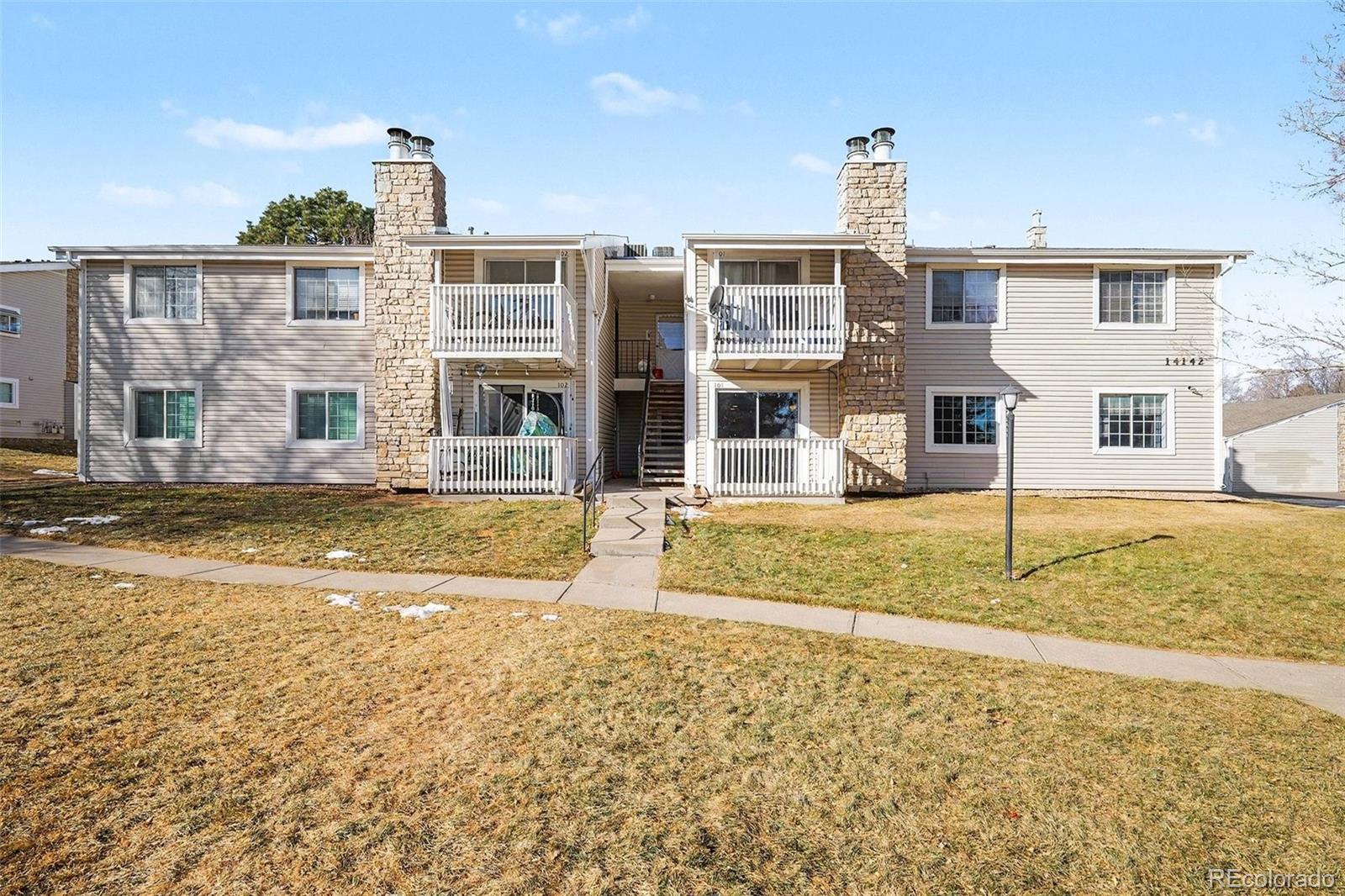 Centrally located and thoughtfully updated, this main-floor turnkey condo in Aurora’s Brandychase community offers zero-maintenance living in nearly 1,000 sqft, welcome home to 14142 E Colorado Drive. Beautiful new laminate hardwood floors and fresh interior paint (both completed in 2024) greet you upon entry and complement the spacious open living area. Abundant natural light fills the room from the large sliding glass door, easily welcoming the outdoors in. Cozy up by the wood-burning fireplace on cool Colorado evenings or enjoy sipping your morning coffee on the covered patio in the warmer months to come. The updated eat-in kitchen features both butcher-block and granite countertops, ample wood cabinetry, and a pantry. Brand new carpet (2025) extends into two generously sized bedrooms. The primary is complete with dual closets and an ensuite updated bathroom. Additional features of this property include a hew HVAC (2025), in-unit laundry (newer, included), and both a detached garage and 1 reserved parking spot. HOA includes a community pool, sports courts, a park, and a playground. Ideally situated within minutes of shopping, dining, public transportation, the Anschutz campus, and major roadways, this property delivers comfort, style, and an ideal location.