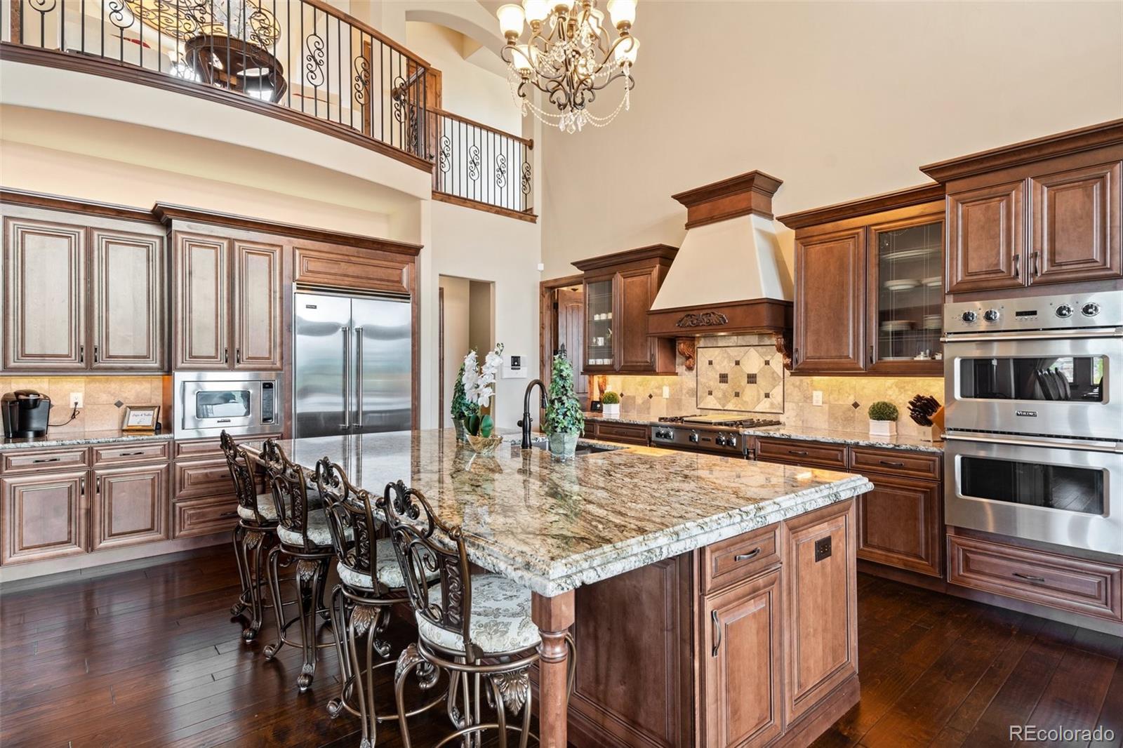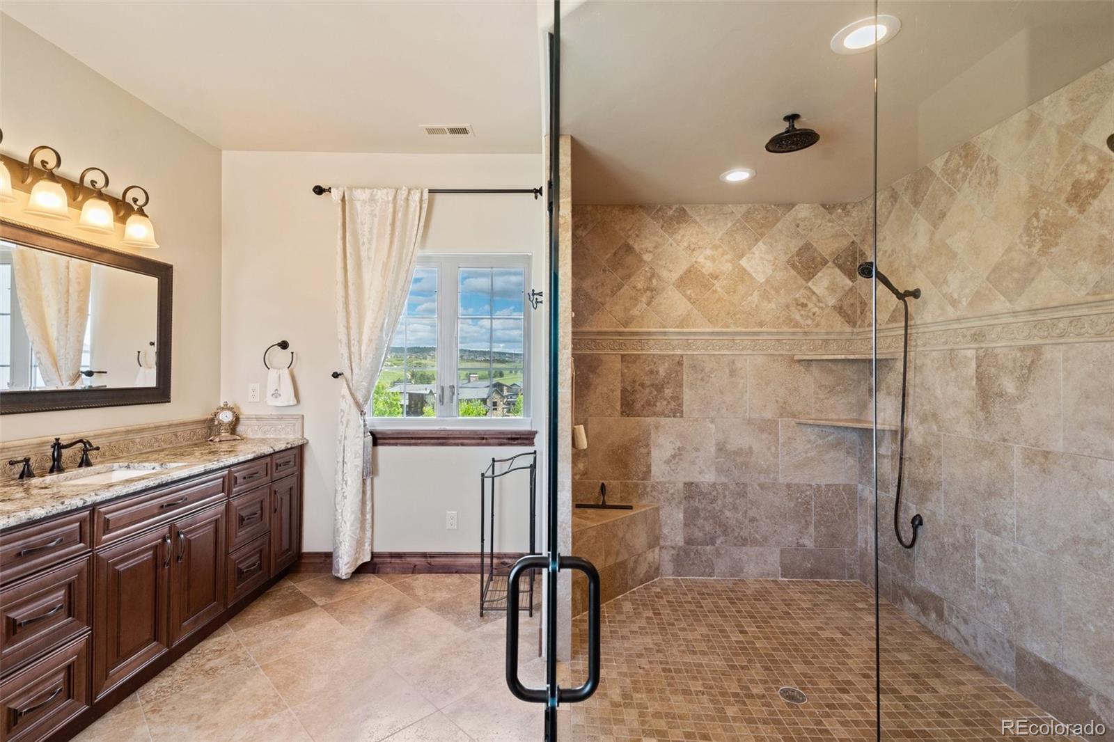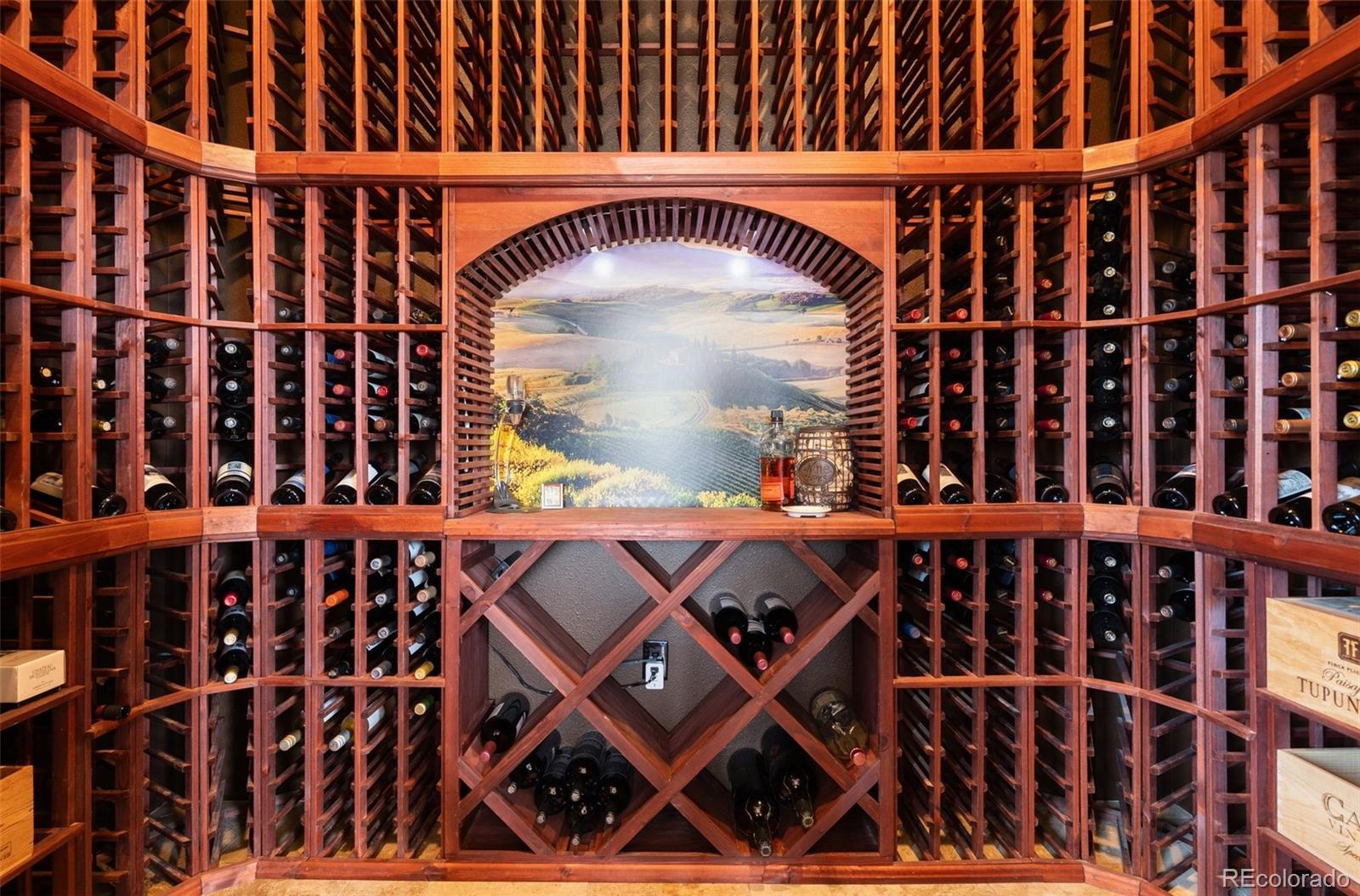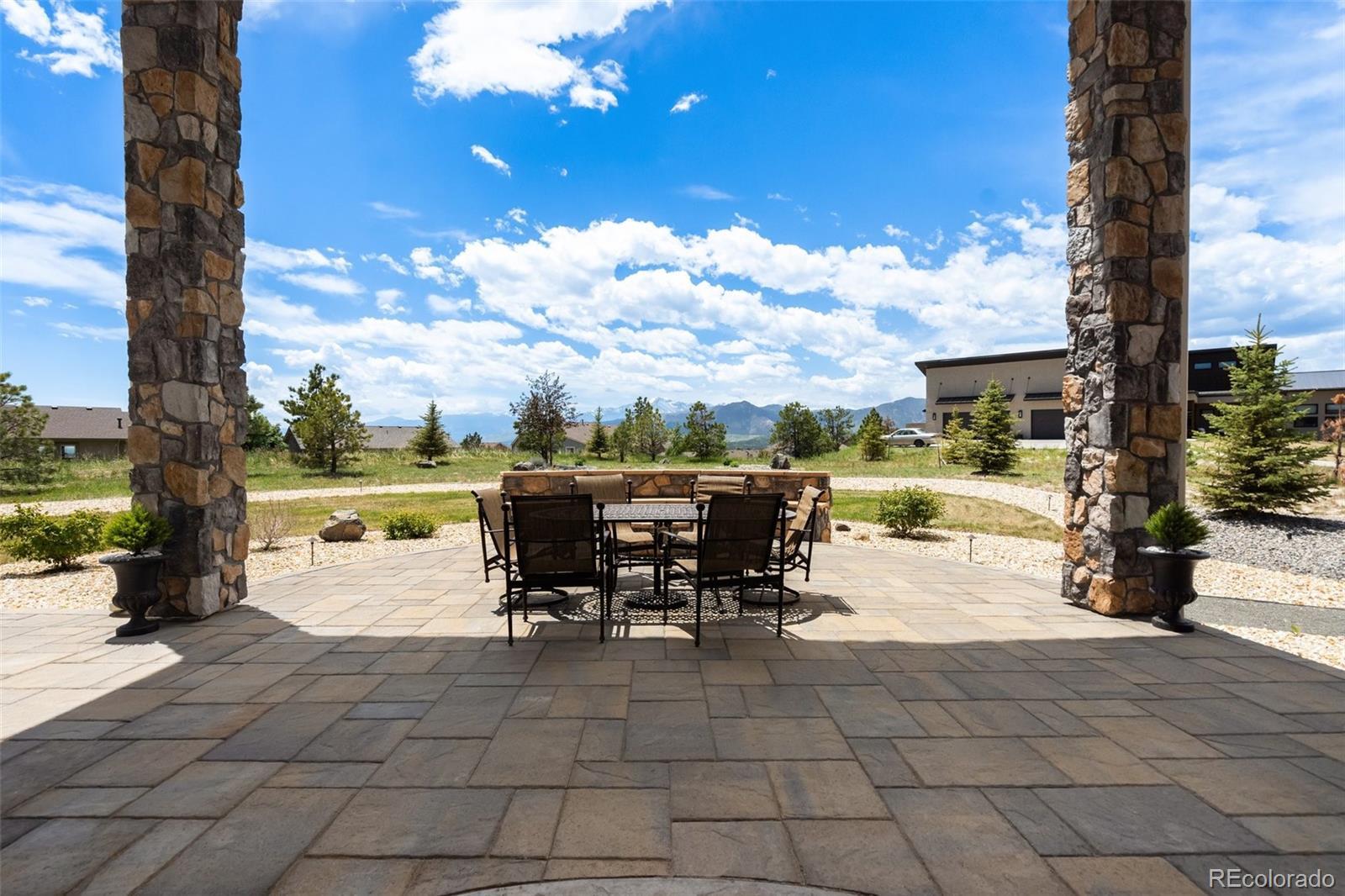 Welcome to the pinnacle of luxury living in the gated Village of Toscano, an exclusive retreat within Flying Horse. This custom Tuscany inspired home offers 7 bedrooms, 5 baths, and approximately 6500 square feet of living space on 1.45 acres of professionally landscaped grounds. The moment you arrive, the stone exterior, circular driveway, and stone gas fire pit create a captivating first impression. The outdoor areas are inviting with a pond less water feature and an additional stone gas firepit, perfect for Colorado evenings with unforgettable views. Inside, the home reveals extraordinary craftsmanship with handcrafted wood details and rich architectural elements. A 23 foot vaulted beam ceiling frames a direct view of Pikes Peak, creating a dramatic focal point as you step inside. Nearly every space offers sweeping views of Pikes Peak, the Front Range, the USAF Academy, and the Tom Weiskopf designed course at Flying Horse. The independently temperature controlled wine room is a showcase with space for 1000+ bottles. Storage throughout the home is impressive, and the oversized four car garage provides generous room for vehicles. Both the main and lower levels feature ten foot ceilings and eight foot doors, giving the residence an open and elegant feel. The home is designed for a future private elevator, now appointed as expansive storage areas. The primary suite is a private retreat with a fireplace, integrated entertainment, and unobstructed mountain views. The five piece bath features a freestanding tub, two vanities, a zero entry spa shower, and a spacious walk in closet with custom built dressers over ten feet long. This residence offers a blend of privacy and convenience, located minutes from I25, Powers Blvd, dining, shopping, parks, award winning D20 schools, the Ford amphitheater, and the Flying Horse Clubhouse and Steakhouse. Experience timeless craftsmanship, stunning views, and luxury living in one of Colorado Springs most sought after communities.