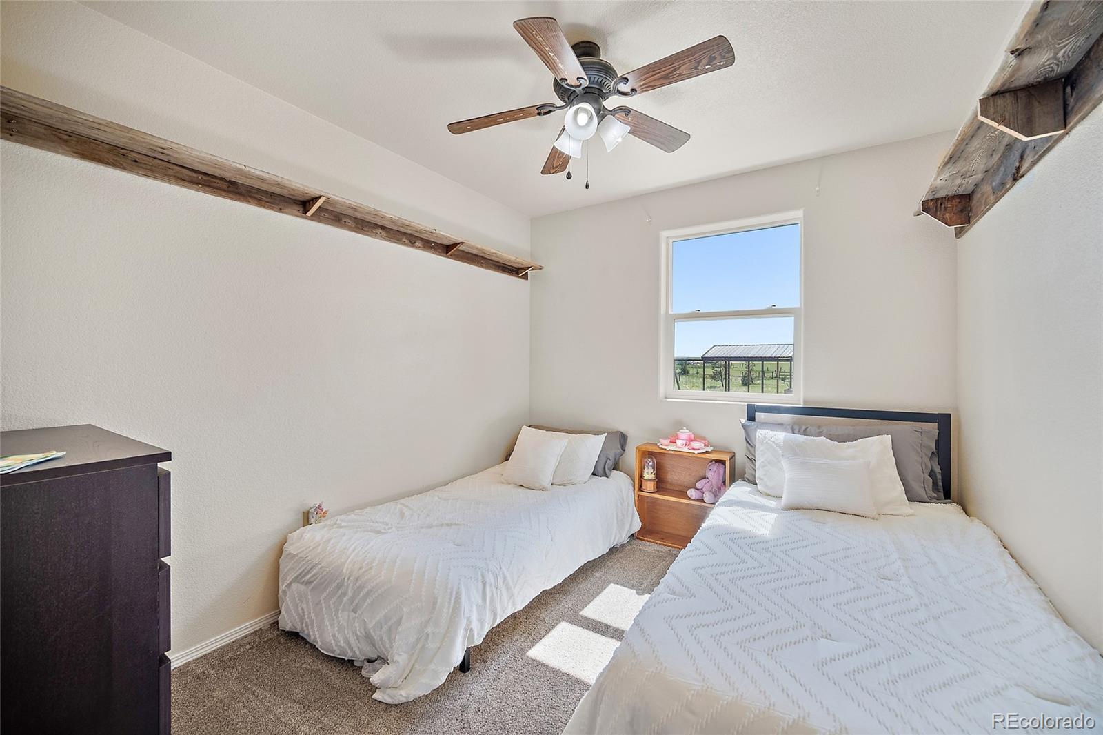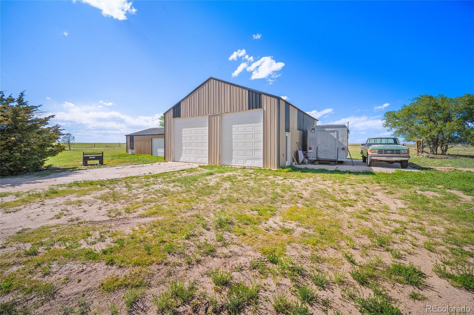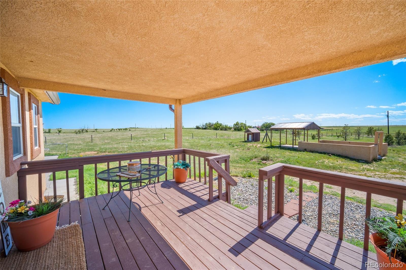 Located just outside the small town of Rush,this 35-acre property offers a peaceful and private retreat with wide-open spaces and breathtaking views of the surrounding countryside. The ranch home is stucco with a full basement attached two car garage and features five bedrooms, three bathrooms, and a spacious, functional floor plan that includes a dedicated room perfect for a home office—as well as a bonus room ideal for crafts or hobbies. Natural light fills the living areas, and the kitchen is outfitted with tile granite countertops, a stainless steel appliances, combining modern convenience with classic country charm. The master bedroom offers new engineered wood flooring and fresh paint. There are so many awesome features to this beautiful home it is a custom one of a kind. The land is Ideal for equestrian or agricultural there are endless ways to utilize this gorgeous property. This property includes four outbuildings, all equipped with electricity, offering versatile options for storage, workshops, a business or hobby projects. The large barn is heated, includes 220v power, and features high garage doors with ample space. The property also includes two separate septic systems, This property is fenced except one side. The bunk house offers so many possibilities for use. The other three out buildings are large. There is one large building that can easily be converted as a horse barn as it has dirt floors. There is a new concrete slab, in addition a new deck off the kitchen. This home has been well cared for and nicely maintained. This home is nestled in Rush with easy access to the Springs. There is also a chicken coop. This property will not disappoint. Whether you're enjoying the open skies or working the land, there's plenty of room to make this space your own. Conveniently located near Highway 94 and just a short drive to Colorado Springs, it offers the best of country living with easy access to city amenities. Lower level walk-out. Come take a tour!