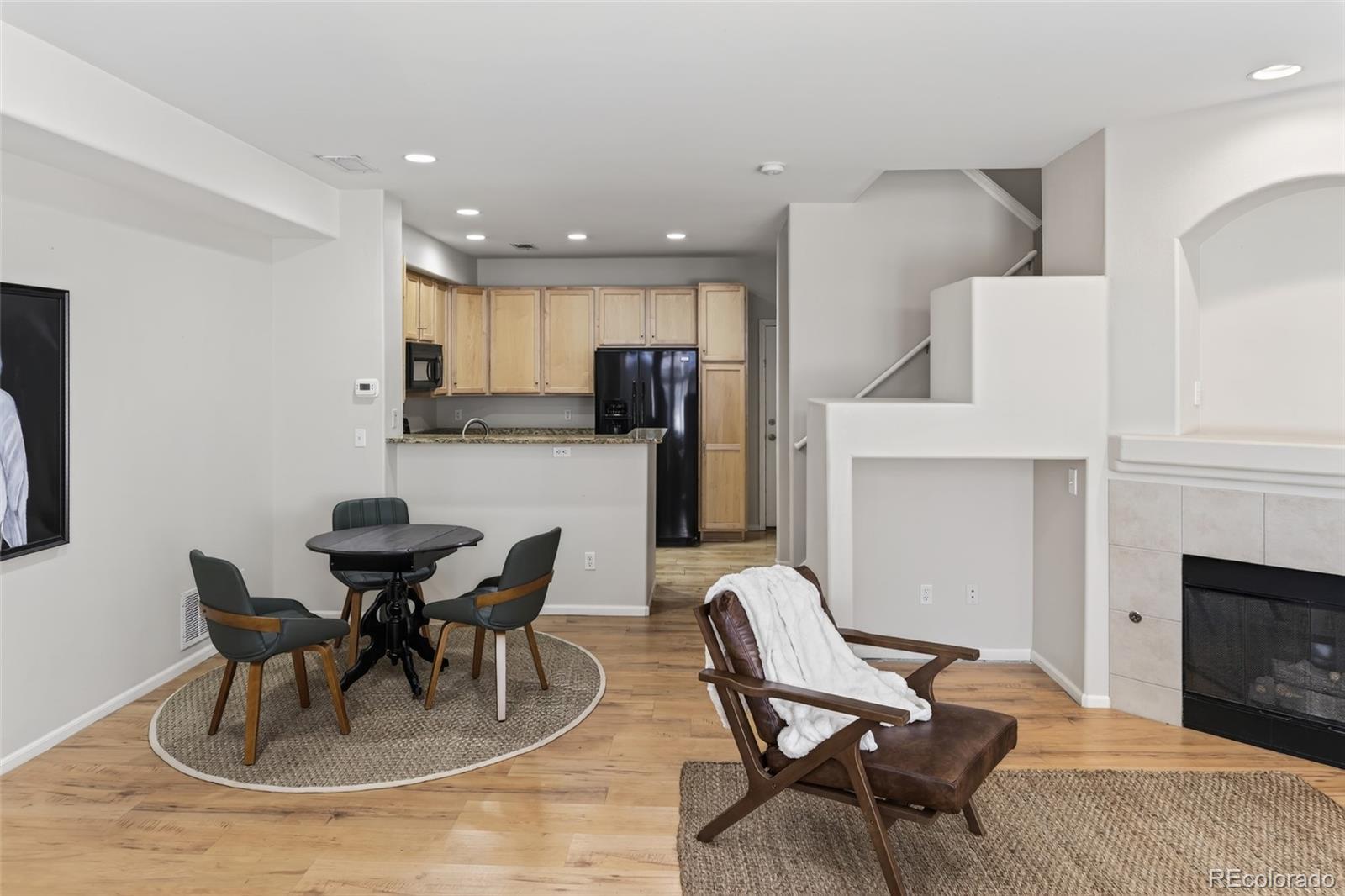Step inside and enjoy the open concept great room with high ceilings and extra light! Large living room windows look out onto the covered front patio and are already complete with Plantation Shutters for privacy. The thoughtful two-story layout features all three bedrooms upstairs on the same level for maximum convenience. The heart of the home features an excellent kitchen with granite countertops that provide extra prep space. Cozy up by the fireplace in the living room during those chilly Colorado evenings, or retreat to the giant primary suite complete with a walk-in closet and full bath. The attached two-car garage means you'll never have to scrape ice off your windshield again, and all kitchen appliances are included as well as the washer and dryer. The beautiful main level furnishings are negotiable as well. The location is absolutely unbeatable. Within 2 Miles from light rail for easy downtown access, premier shopping, beautiful parks, and miles of recreation paths perfect for weekend adventures. Plus, this community includes access to all the incredible Highlands Ranch Recreation Centers with their pools and fitness facilities. The home combines modern luxury with thoughtful functionality in one of Colorado's most desirable communities. NEW Air Conditioner installed in 2025! Perfectly positioned in prime Highlands Ranch! This low maintenance home offers space and comfort with exterior maintenance, gardening, trash, and recycling covered by the HOA.