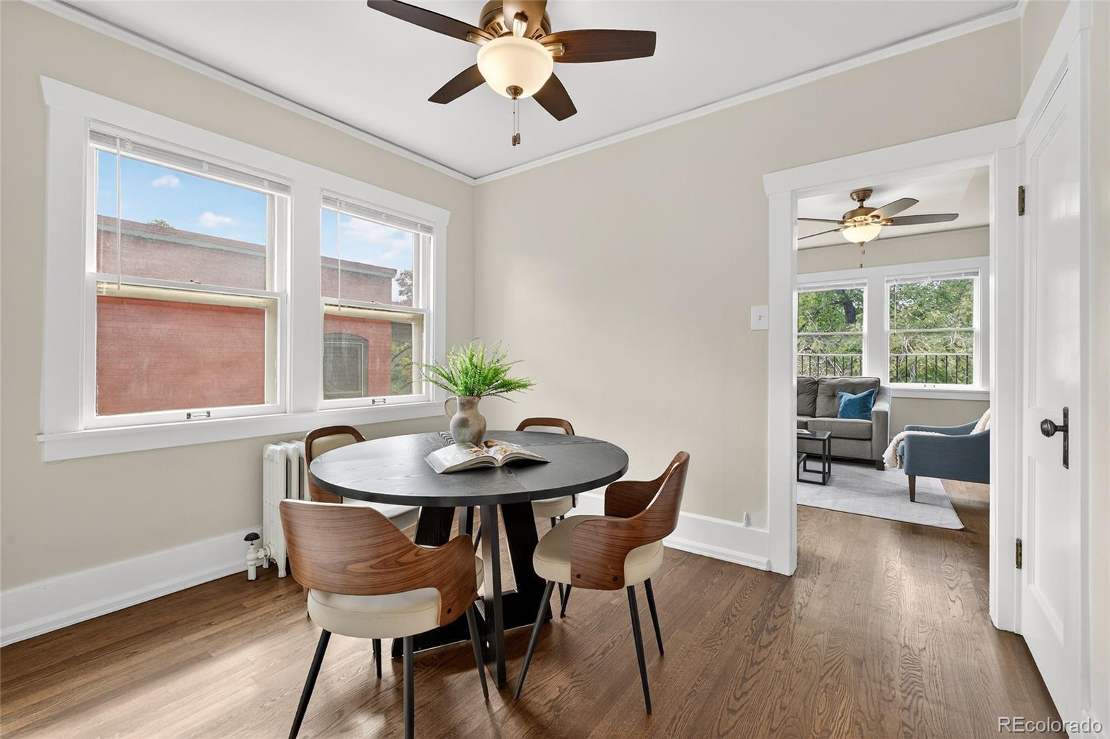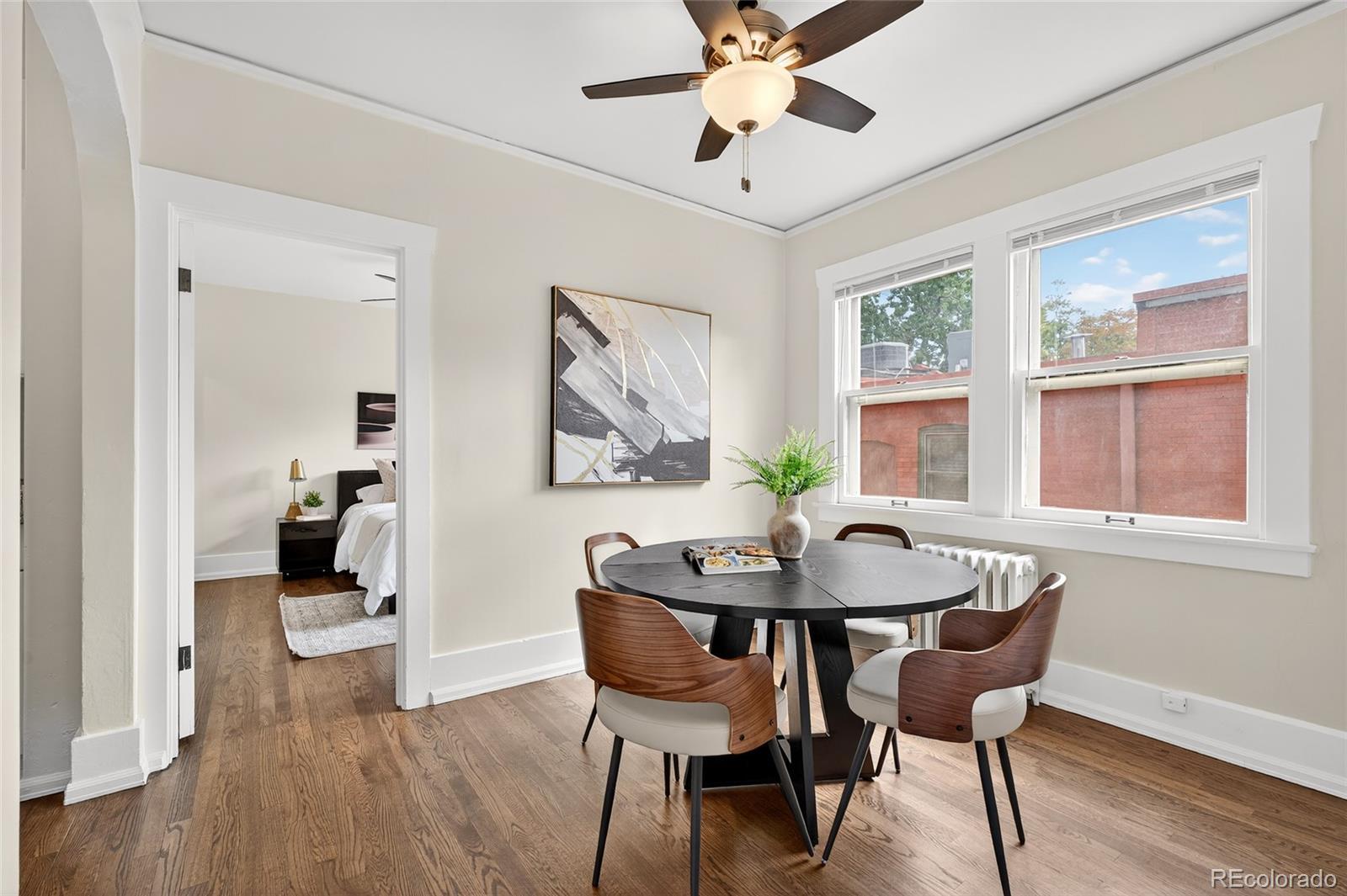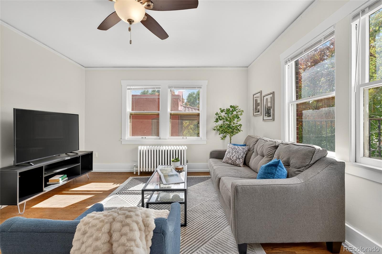 Experience the perfect balance of historic character and modern comfort in this stunning corner condo in Denver’s beloved Cheesman Park neighborhood. This home is filled with natural light and a warm, welcoming ambiance throughout. Step into the spacious living room and continue into the generous dining room, large enough to host gatherings with friends or family. The dining space flows seamlessly into the kitchen complete with granite countertops, making both everyday cooking and entertaining a breeze. The inviting bedroom provides a peaceful retreat with an en-suite 3/4 bath and a walk-in closet, offering both comfort and practicality. Additional conveniences include building laundry, a 1-car detached garage, and a dedicated storage unit (#5) for all your extra belongings. This home’s location is as impressive as its features. Nestled on a quiet, tree-lined street that still provides easy access to main roads, you’ll enjoy the unique blend of tranquility and connectivity. Just steps away, you’ll find Cheesman Park, Denver Botanic Gardens, Cherry Creek, and Colfax Avenue with its lively entertainment and diverse dining scene. Nearby 6th and 8th Avenues offer boutique shops, local restaurants, and quick access to major highways like I-25 and I-70 for commuting or weekend getaways to the Rocky Mountains. Everyday essentials—grocery stores, coffee shops, gas stations, and more—are conveniently close by. Offering light, space, history, and unbeatable access to Denver’s best amenities, this condo isn’t just a place to live—it’s a lifestyle. Don’t miss your chance to call this incredible Cheesman Park residence your own!